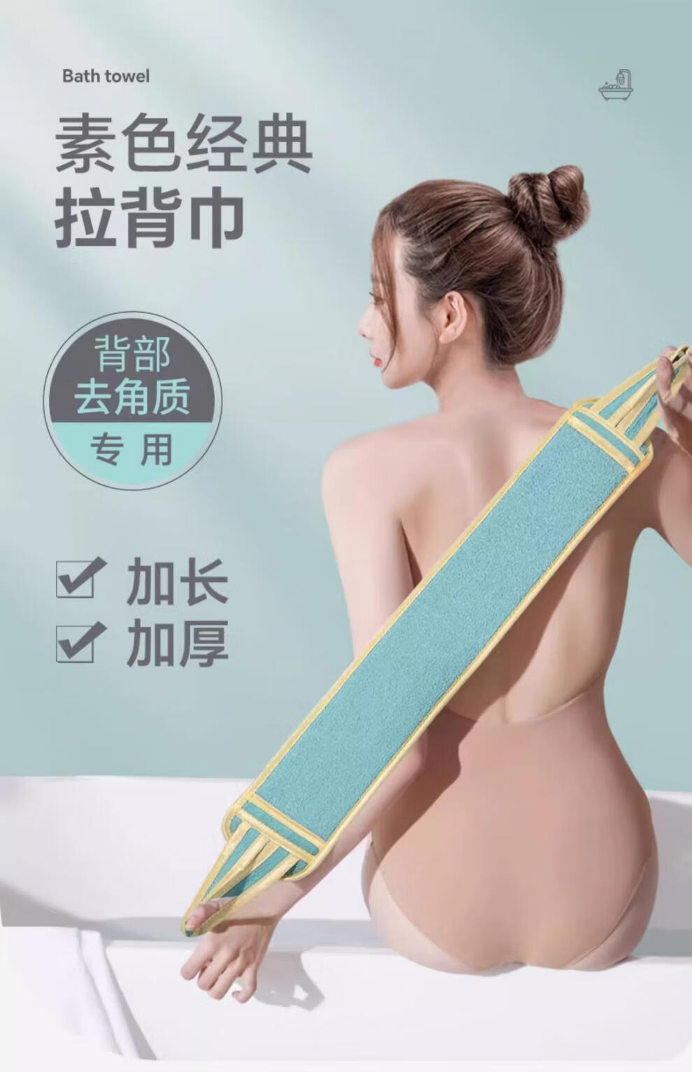 Fat Donglai's same style bath towel pull back strip double-sided powerful back rub towel for men and women back wiping, decontamination and mud rubbing artifact long strips value three-piece set sky blue bath towel + back pull +