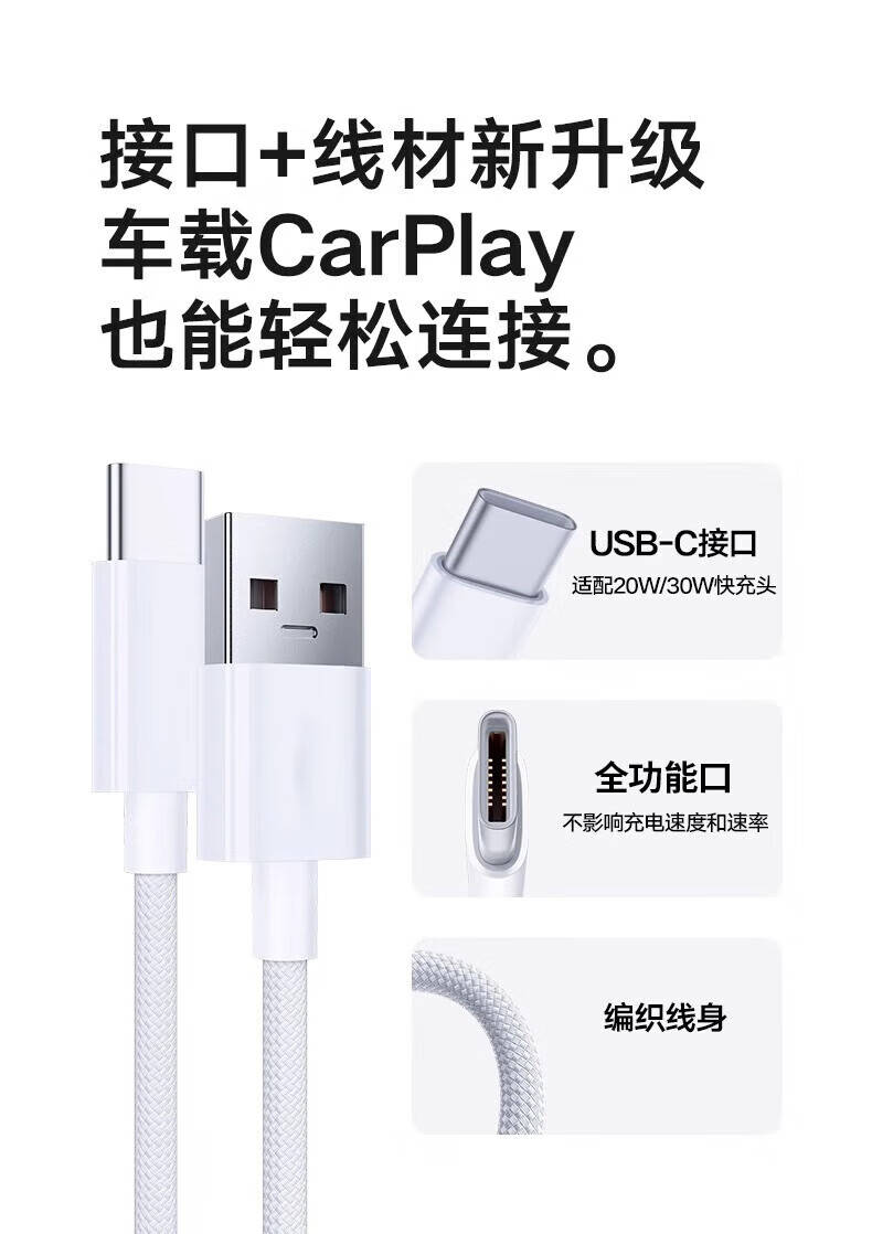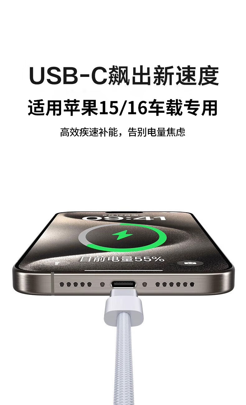 Suitable for Apple 15/16 charging cable car carplay screen data cable usb to type c fast charging braided cable suitable for iphone15promax mobile phone ipad car braided charging cable 1 meter one pack