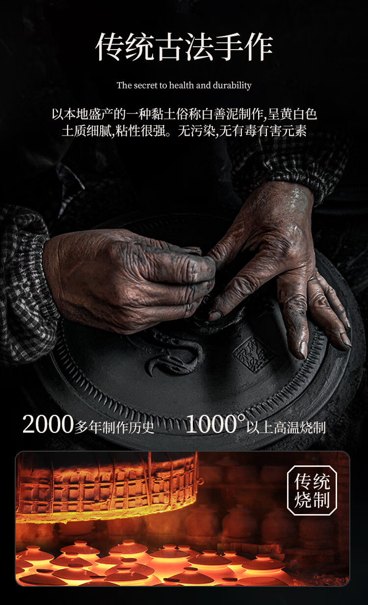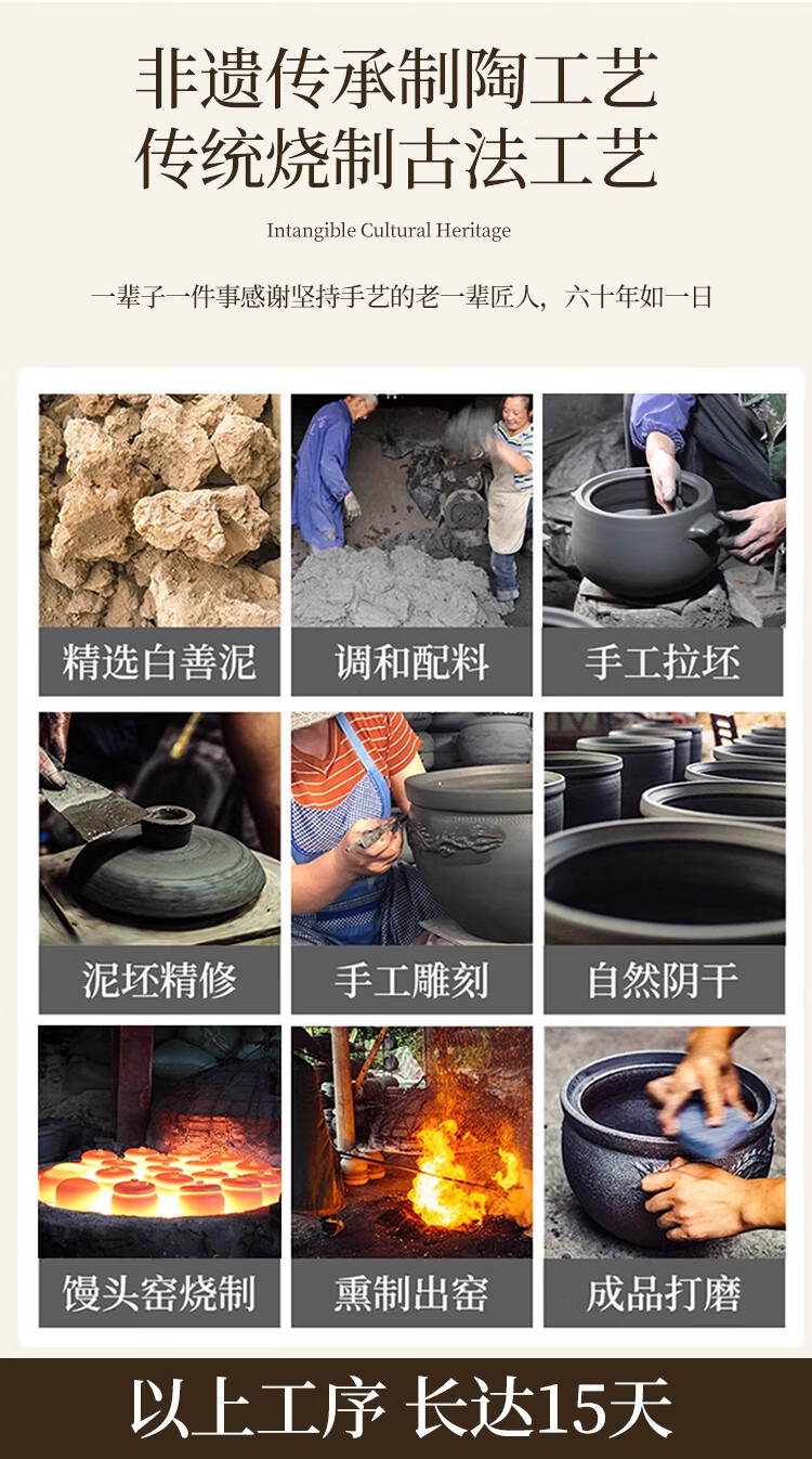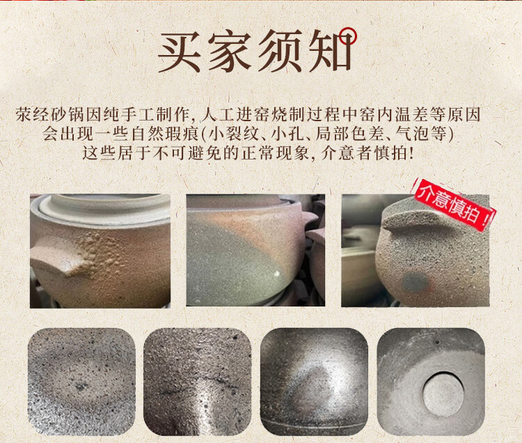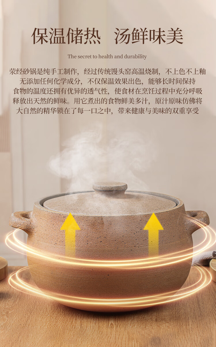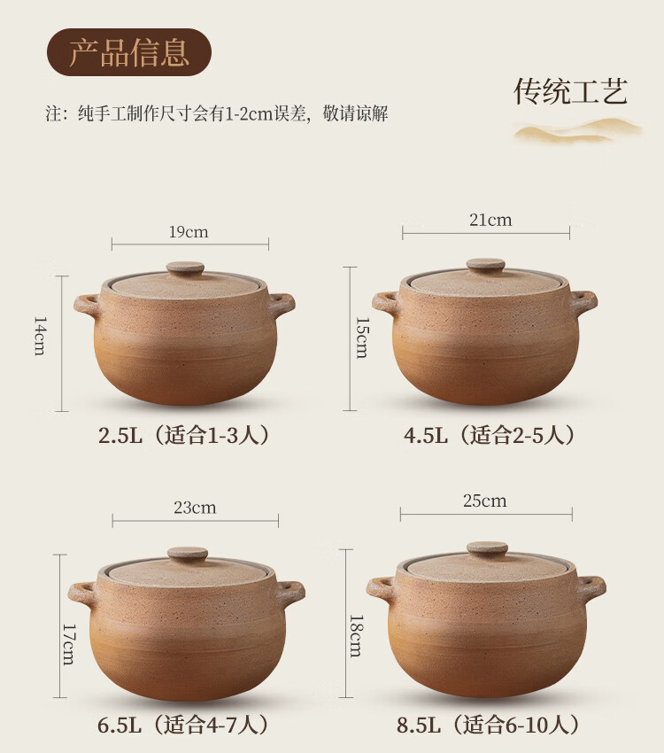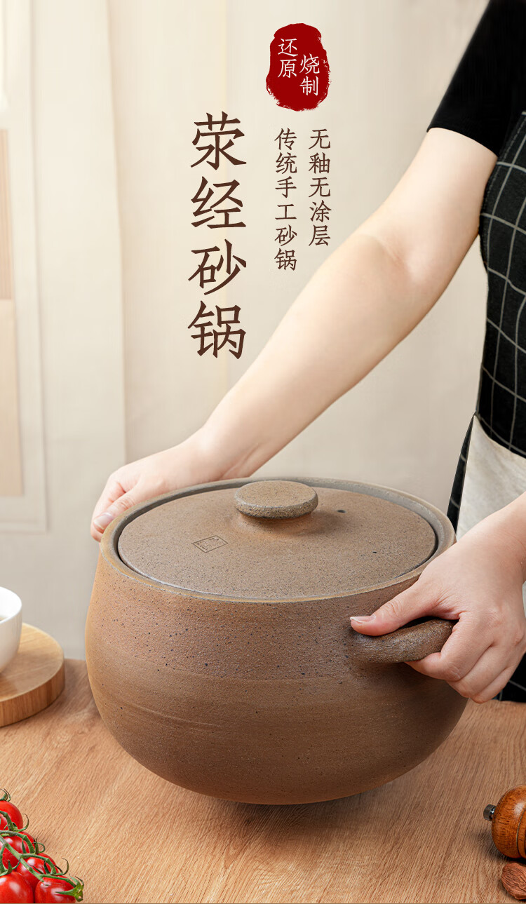 Yingjing Craftsman Yingjing Casserole for Soup and Stew Household Casserole Unglazed Casserole Soup Pot for Stewing Meat and Porridge Old-fashioned Traditional Earthen Casserole Ancient Method Fine Cooking (2-5 People) 4.5L