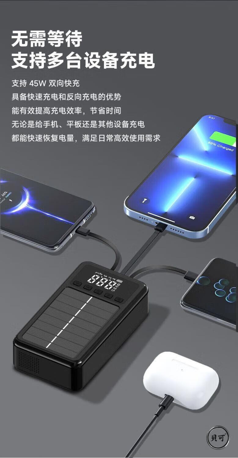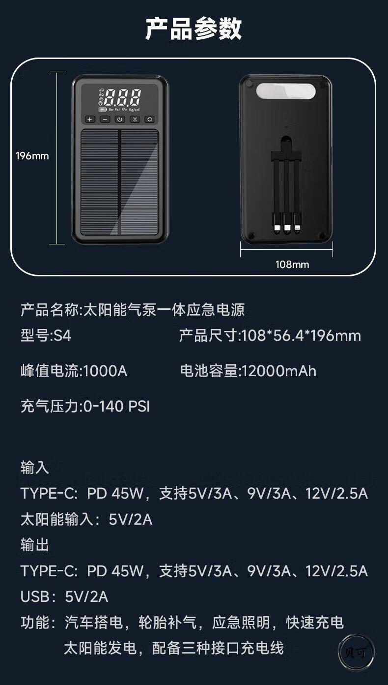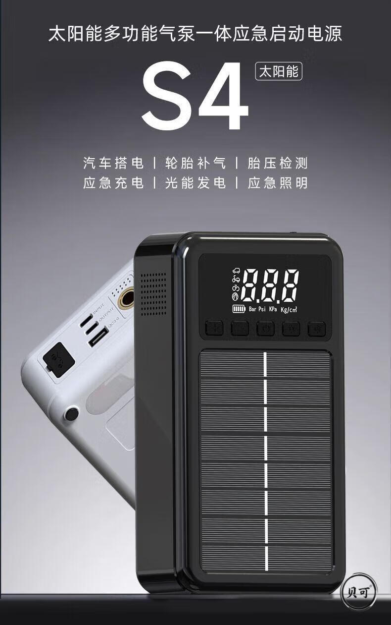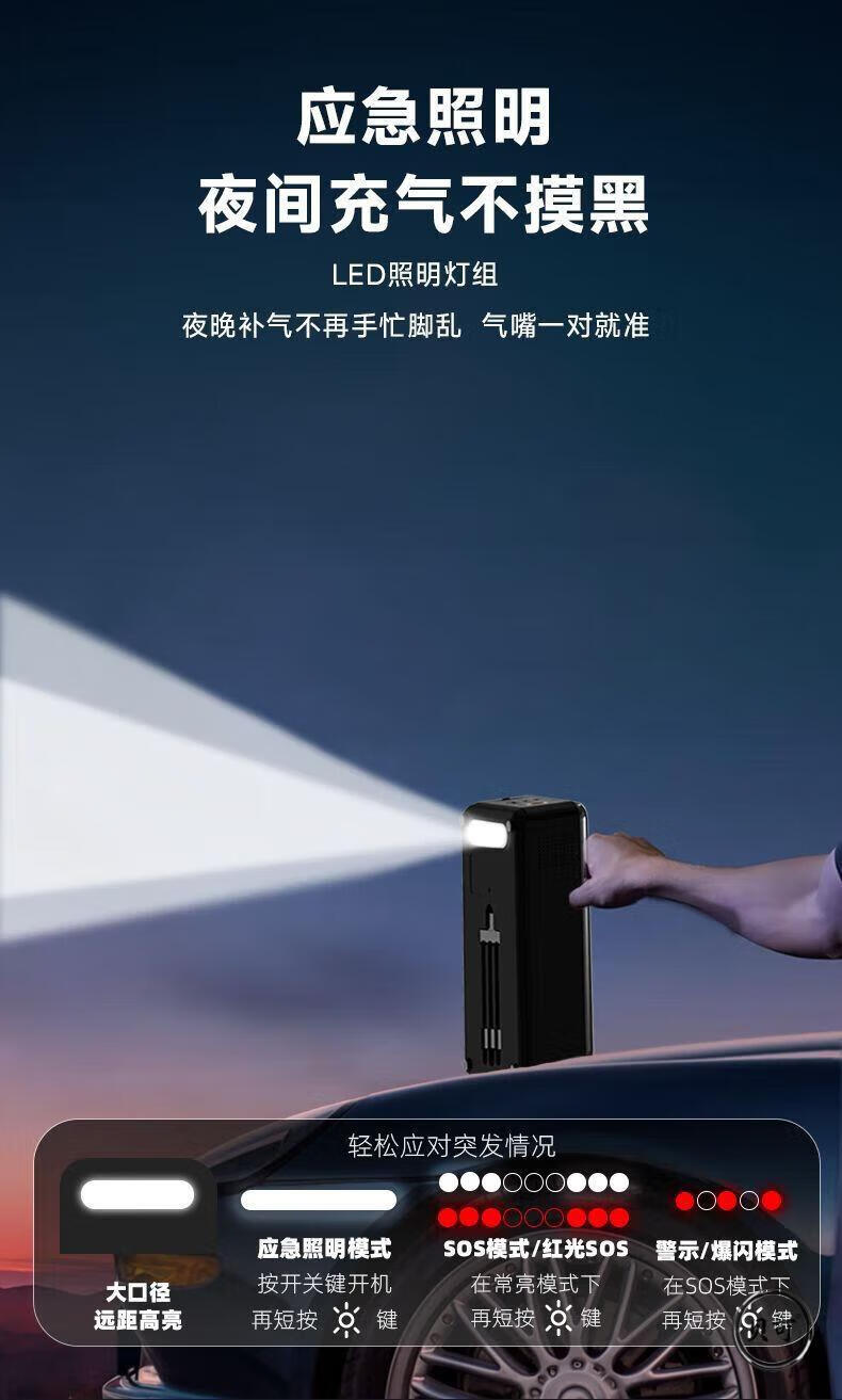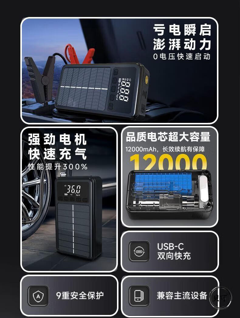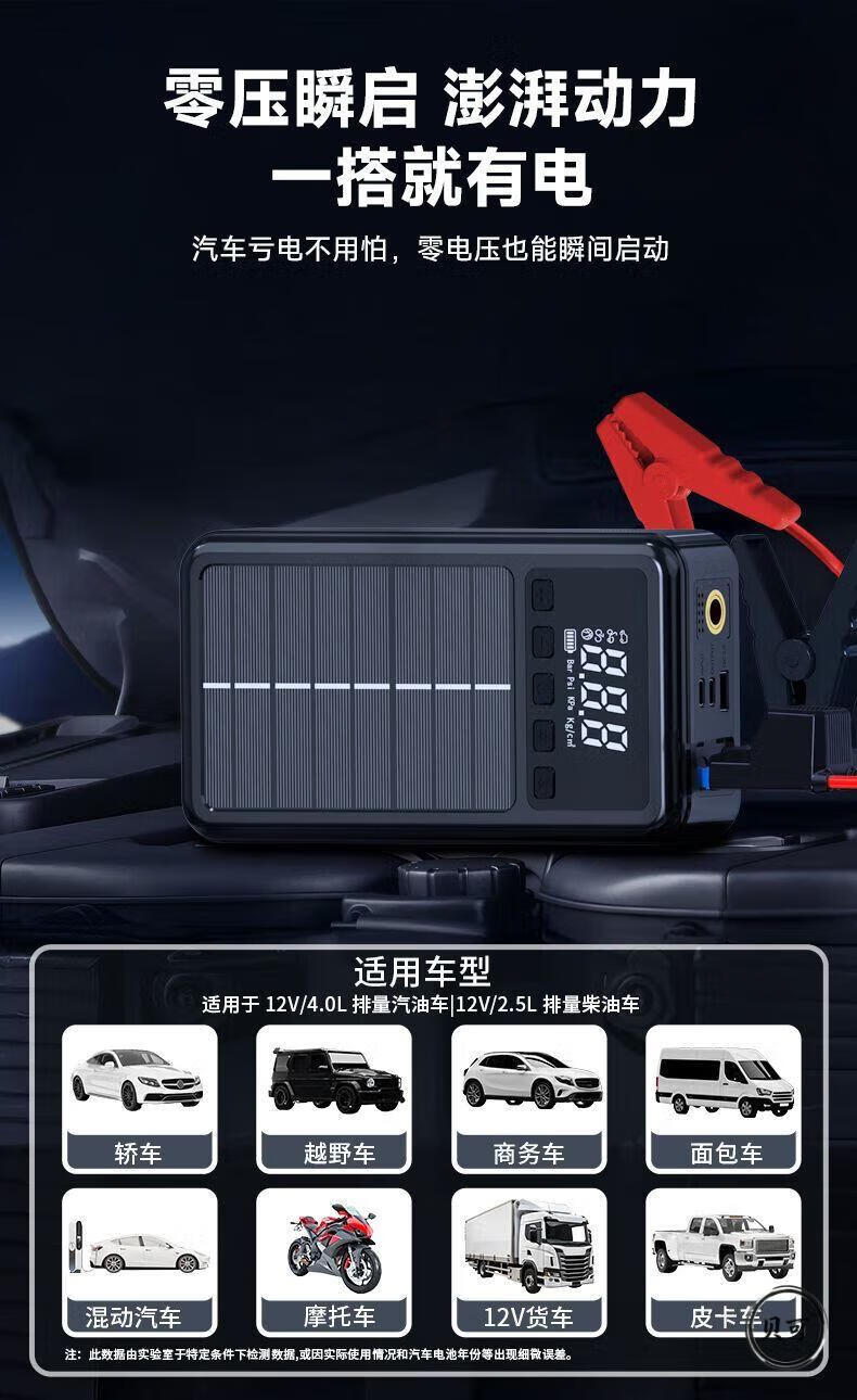 He Jiagong Square Canopy Car Emergency Start Power Supply Air Pump Vacuum Cleaner Car Emergency Rescue Solar Power Highly Recommended Road Rescue + Not Afraid of Low Temperature Environments