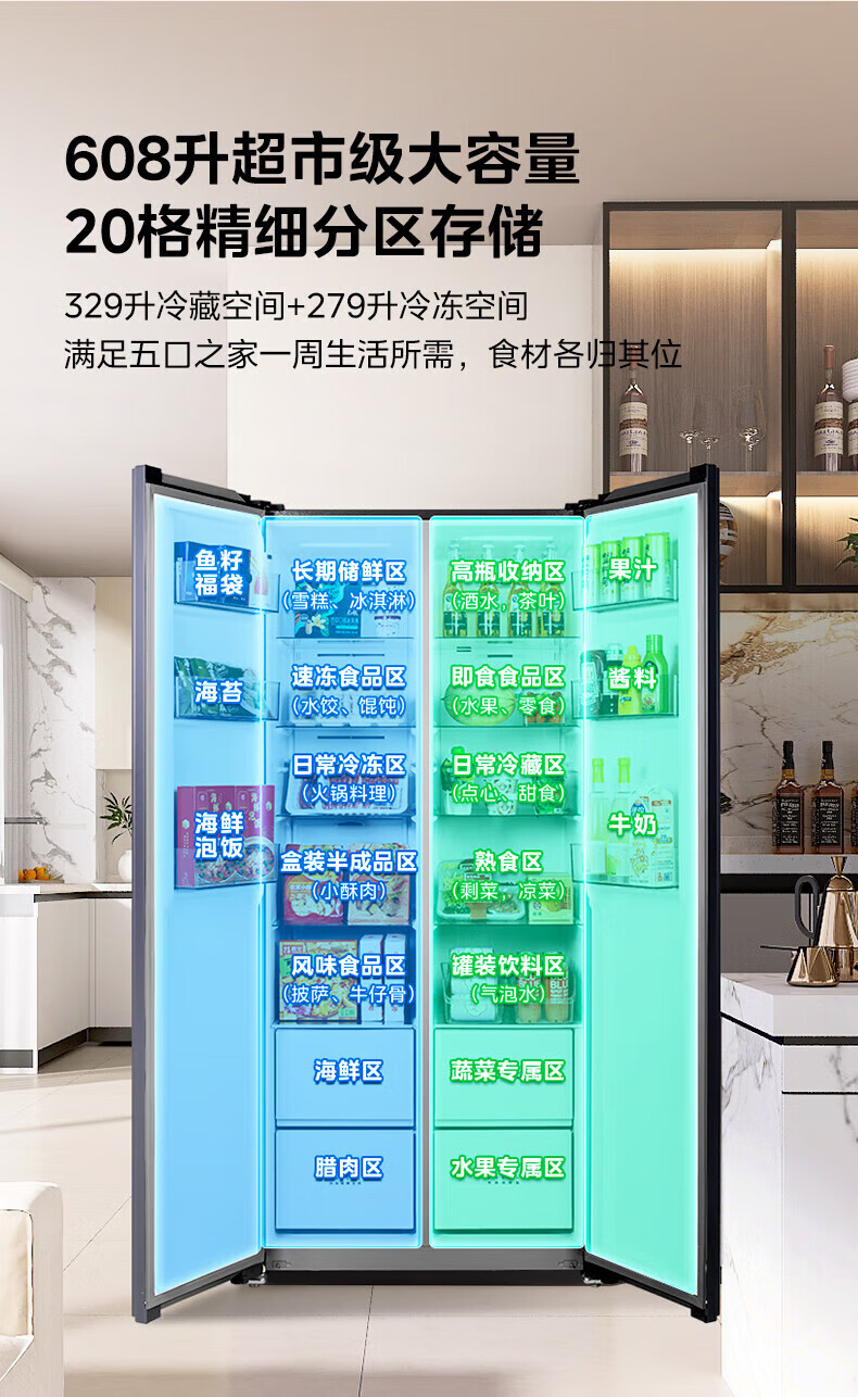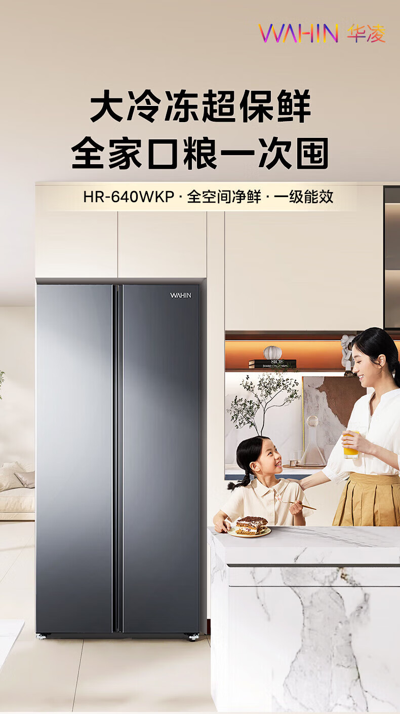 Midea produces Hualing refrigerator double-door double-door 640 large capacity first-class energy efficiency dual frequency conversion circulation system PT clean taste ultra-thin air-cooled frost-free energy-saving household refrigerator new product 608 liters 9.5KG large freezing power dual frequency conversion circulation system PT
