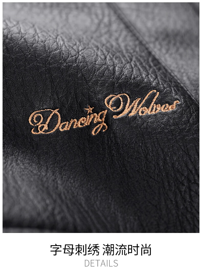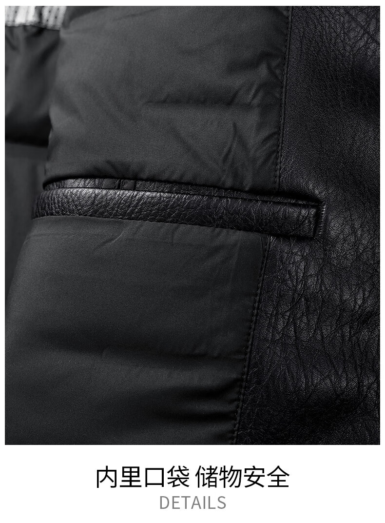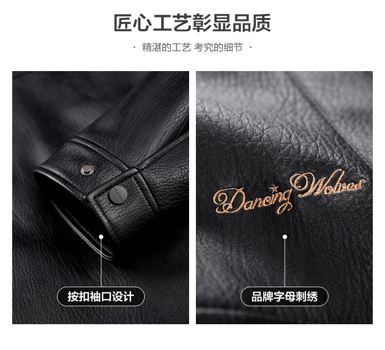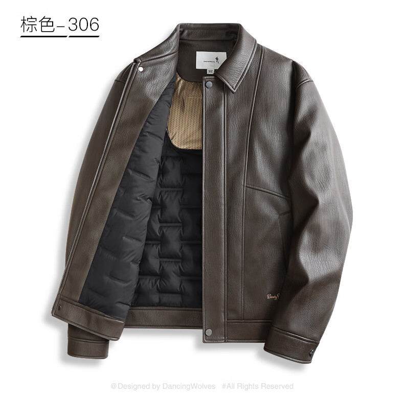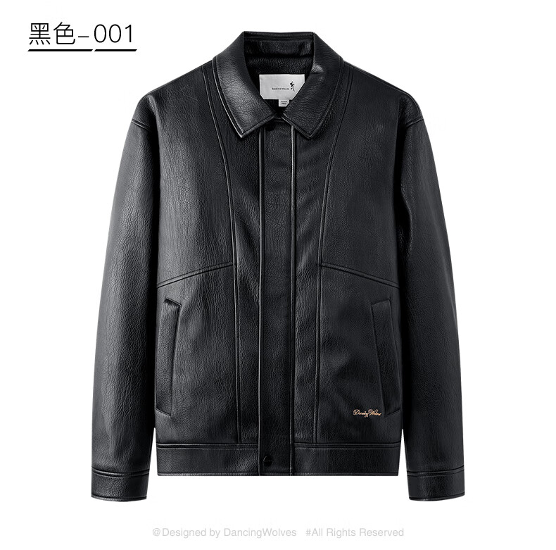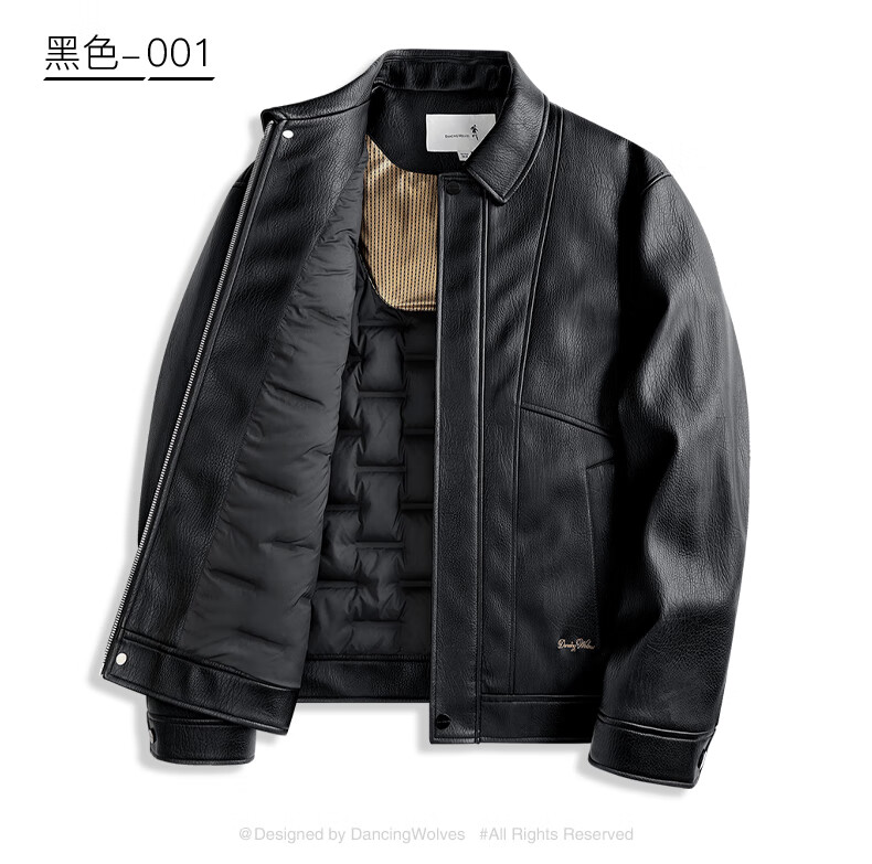 Dances with Wolves Down Liner PU Leather Lapel Jacket Men's 2025 Autumn and Winter New Graphene Warm Men's Jacket 1002 Black 001 XL (180)