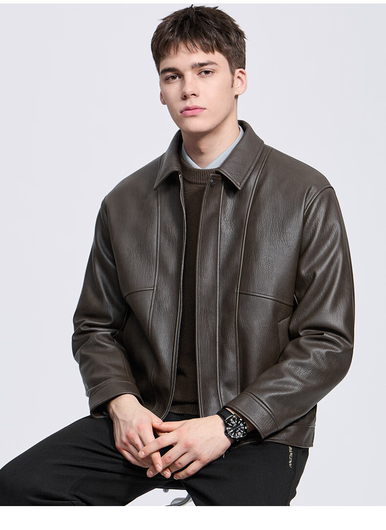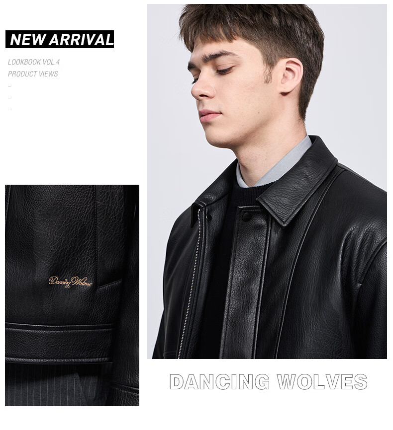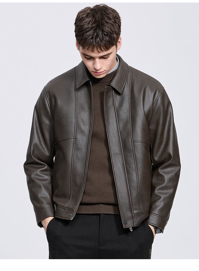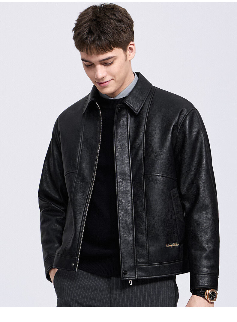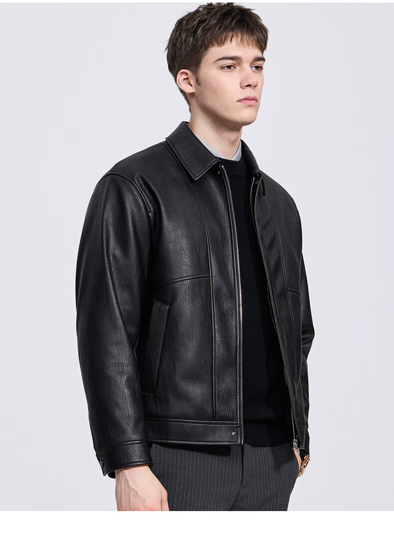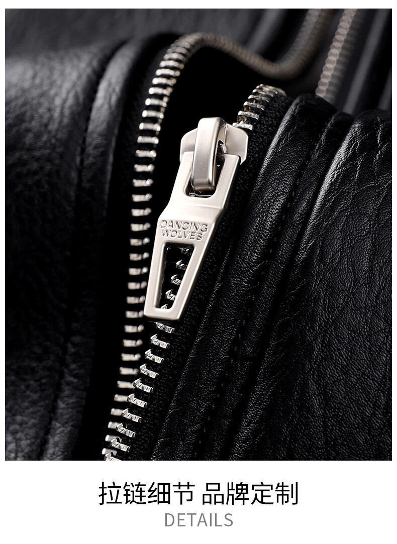 Dances with Wolves Down Liner PU Leather Lapel Jacket Men's 2025 Autumn and Winter New Graphene Warm Men's Jacket 1002 Black 001 XL (180)