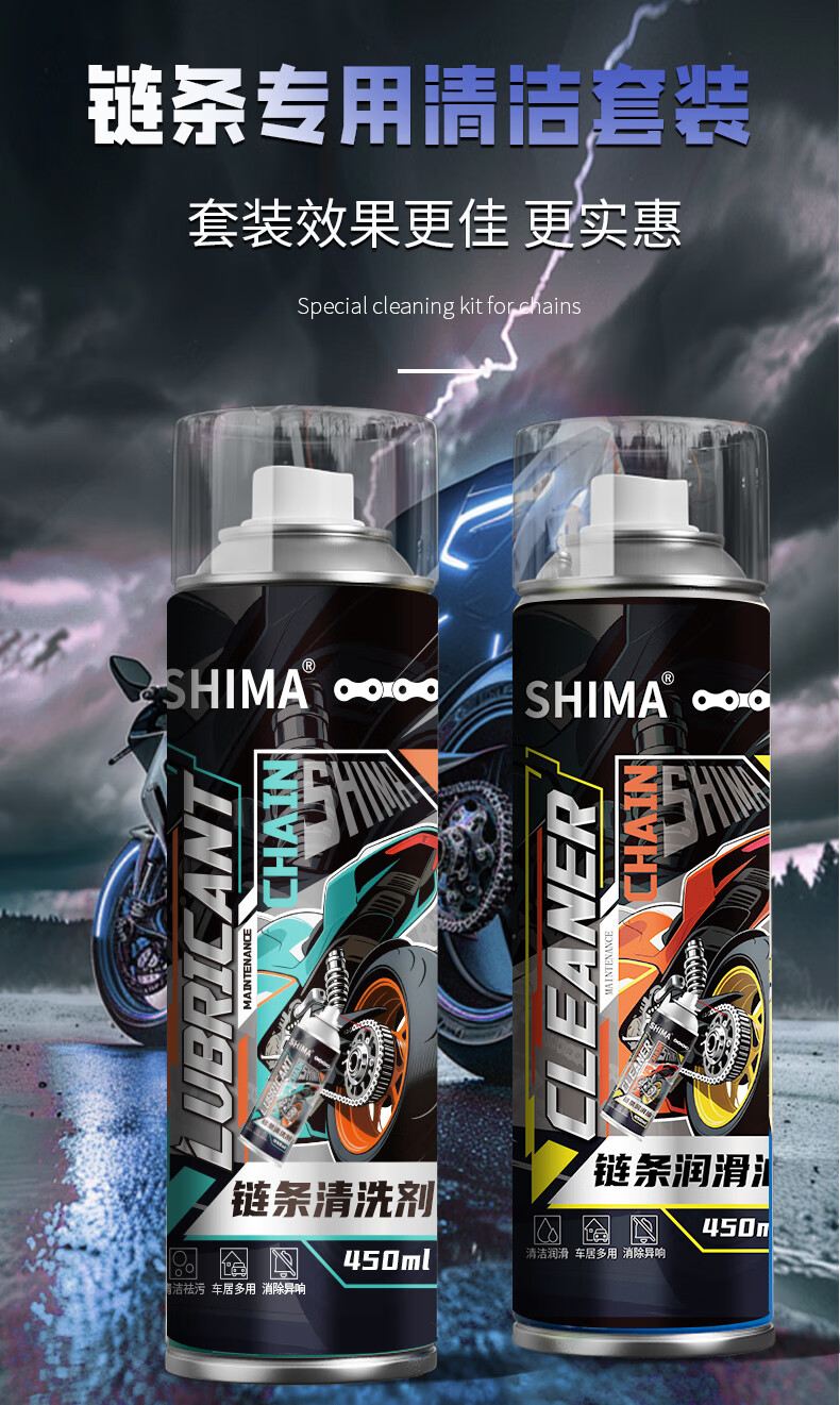 Shima motorcycle chain special lubricant, chain oil, chain cleaner, heavy motorcycle maintenance set, integrated chain wax, chain lubricant + chain cleaner
