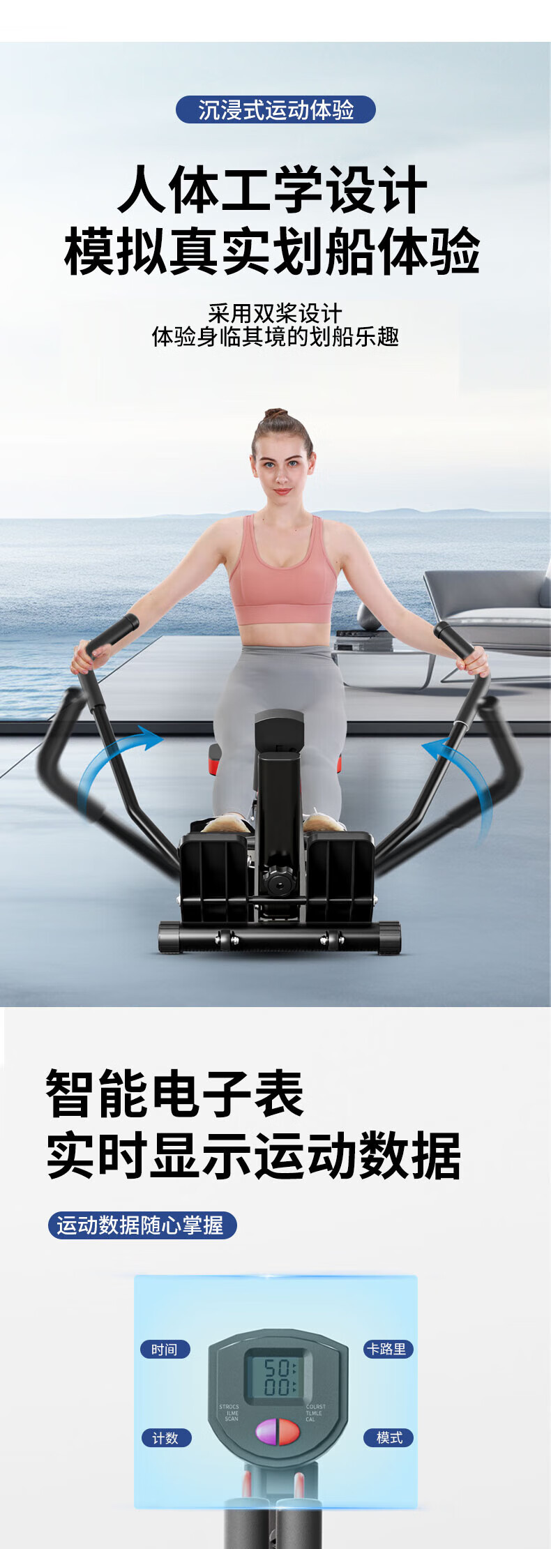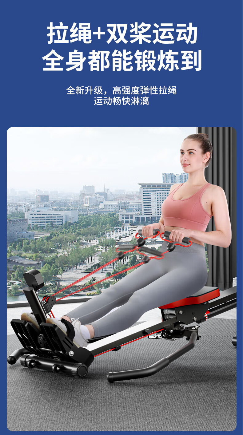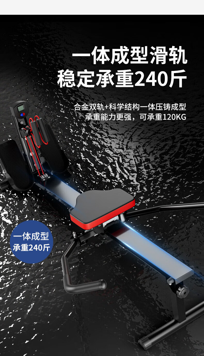 Hanma Rowing Machine Household Liquid Resistance Hydraulic Noise Reduction Water Resistance Wind Resistance Rowing Machine Indoor Bold Rowing Machine Weight Loss Fitness Equipment 10-level Resistance/HD Digital Display/Foam Armrest-Black
