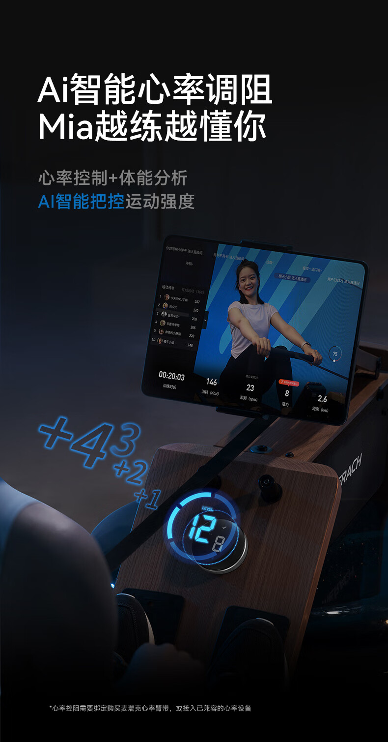 MERACH 950 rowing machine, home foldable hydromagnetic dual-resistance multi-functional smart aerobic fitness equipment, plug-in integrated bionic whale fin propeller blade-strong magnetic resistance-AI M