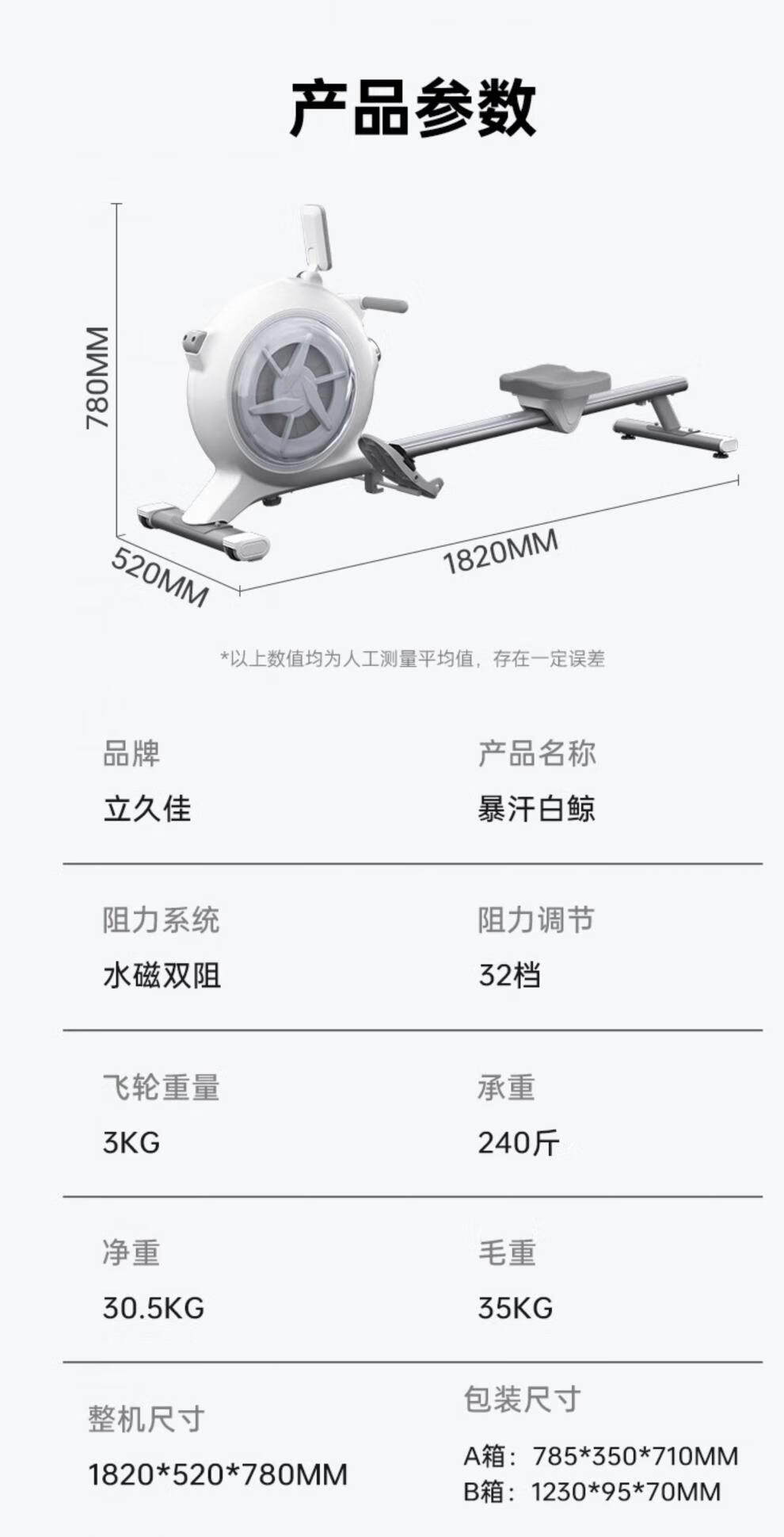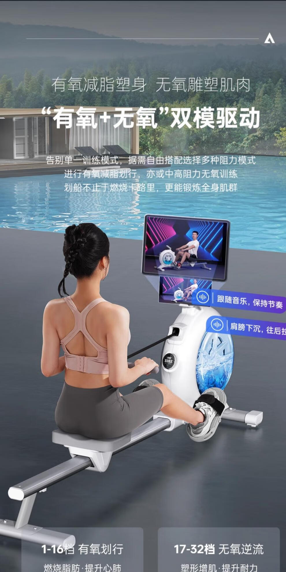 Lijiujia Sweating Beluga fat-burning smart hydromagnetic dual-resistance rowing machine for home indoor sports self-generated/water-sensitive magnetic resistance/intelligent resistance adjustment/32-speed electromagnetic control black