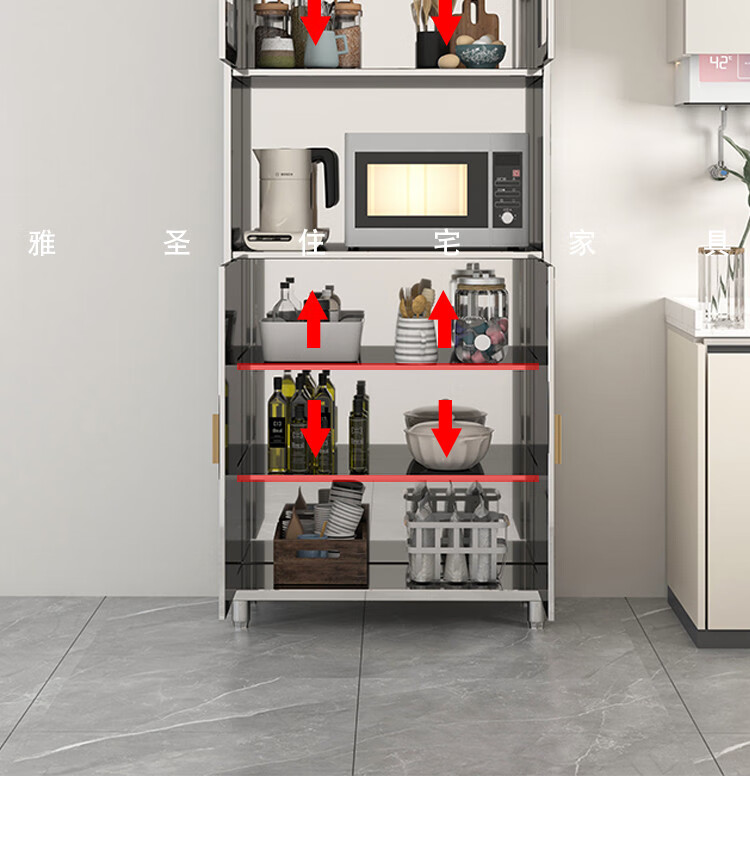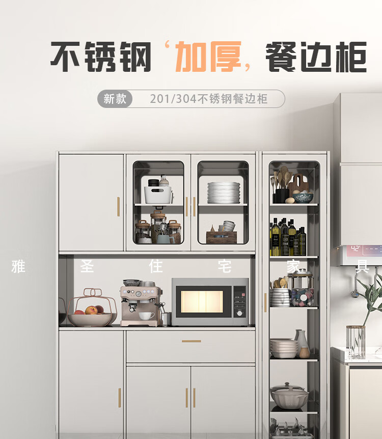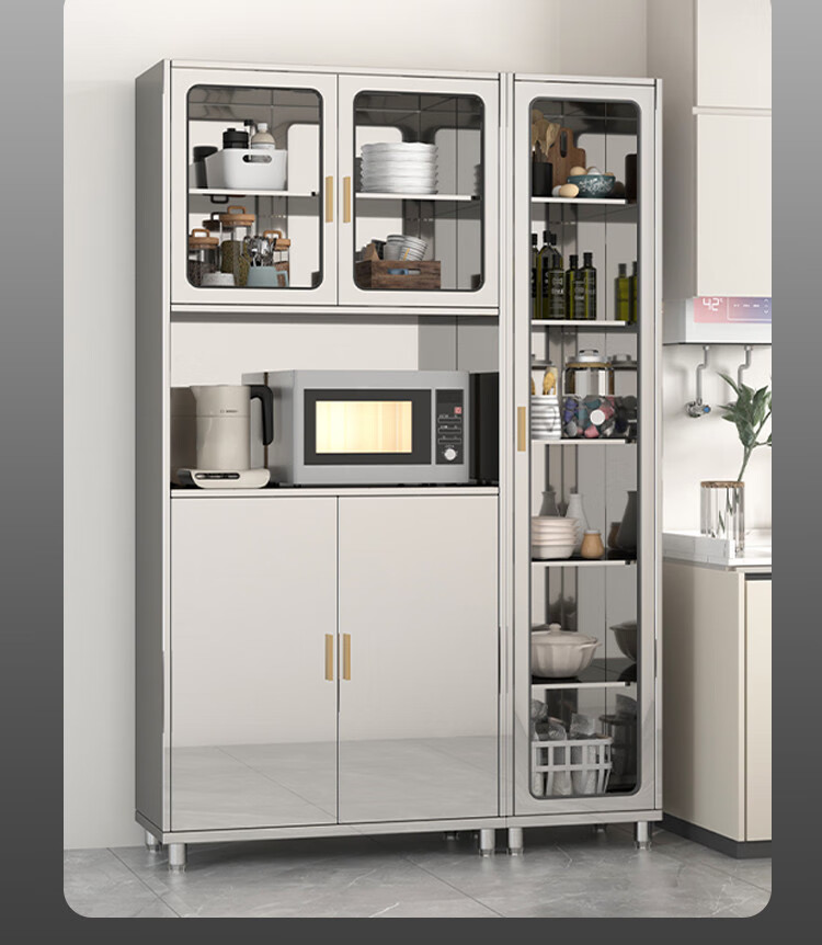 Other home 304 stainless steel dining cabinets household dish cabinets kitchen integrated cabinets dining room multi-functional storage cabinets microwave oven storage 600 split tempered glass 201 2-4 doors