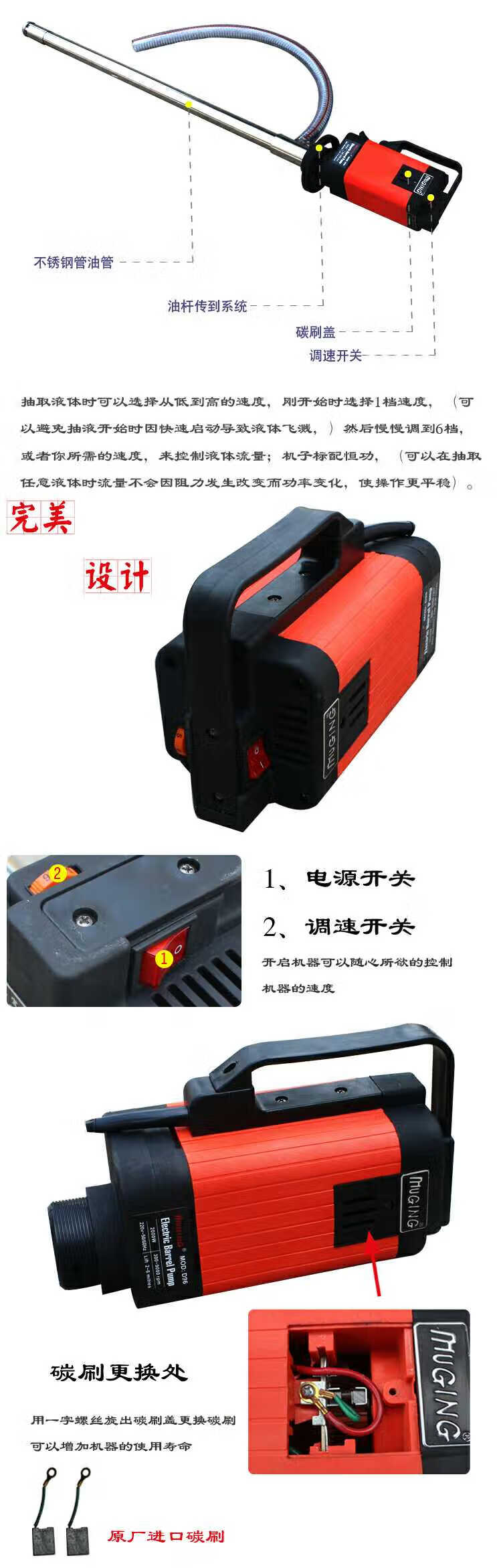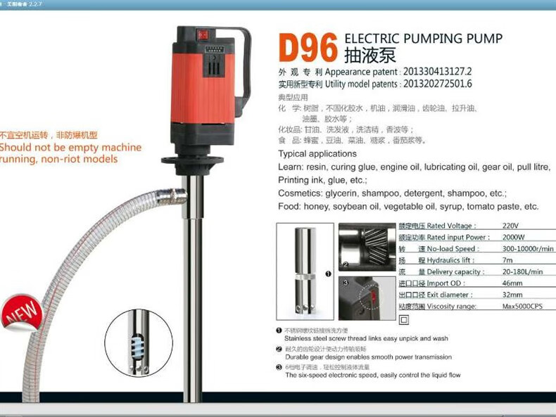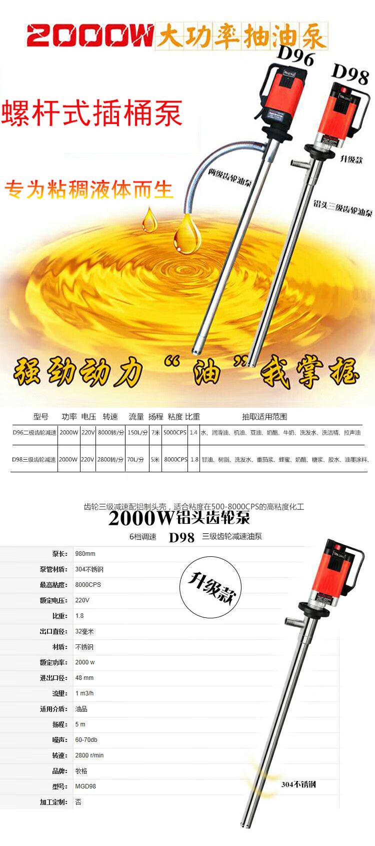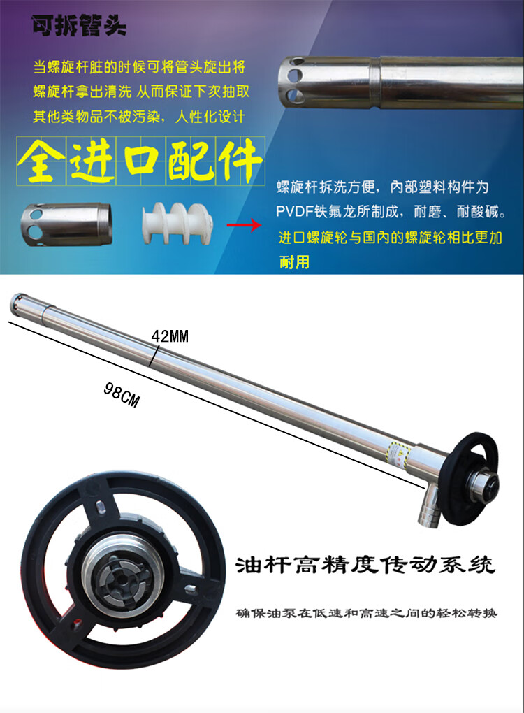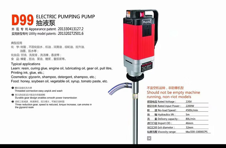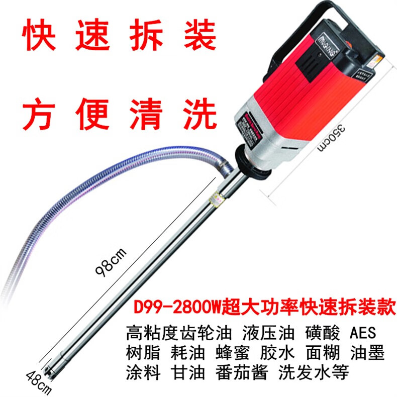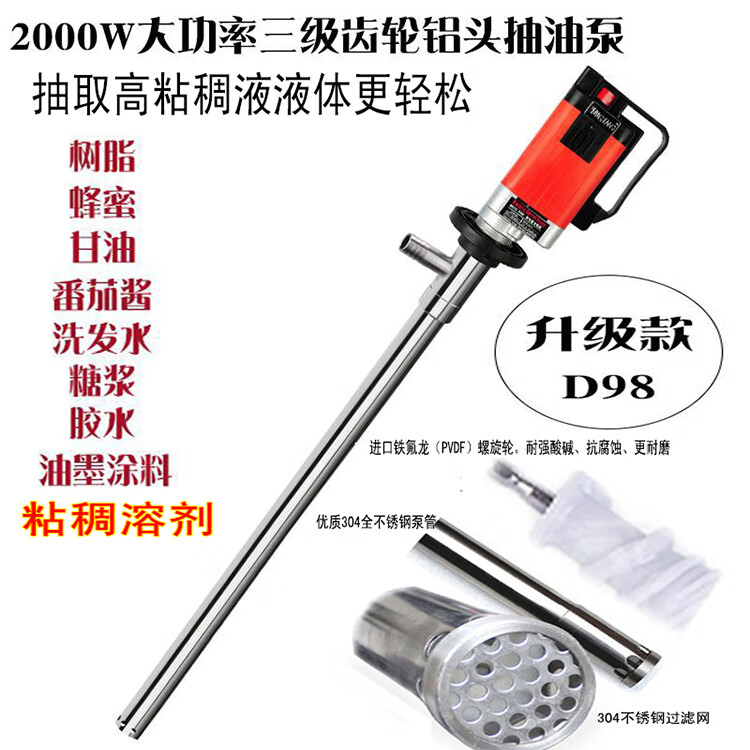 Muge 2000W high-power electric oil pump, high viscosity resin, glycerin, acid and alkali resistance chemical industry, 3500W auger pump with 1.2m extended pipe, ton barrels available for pumping high viscosity