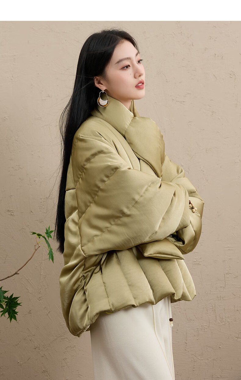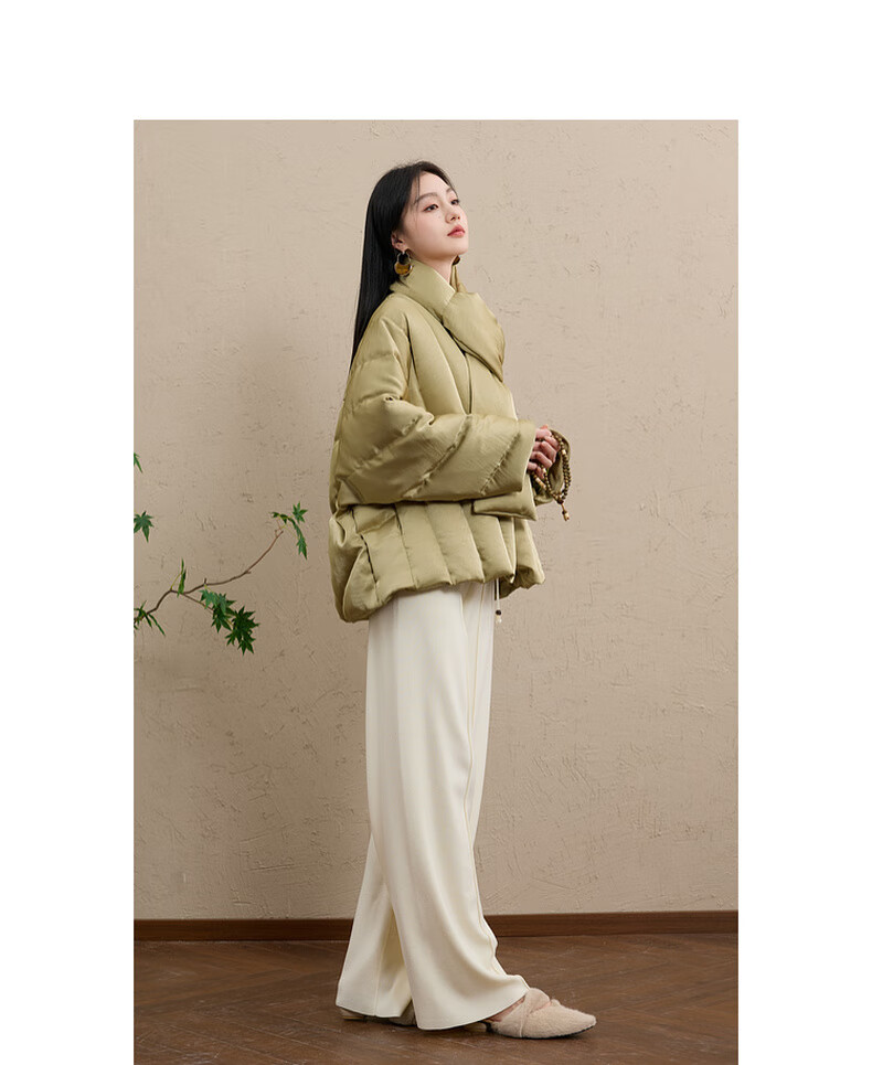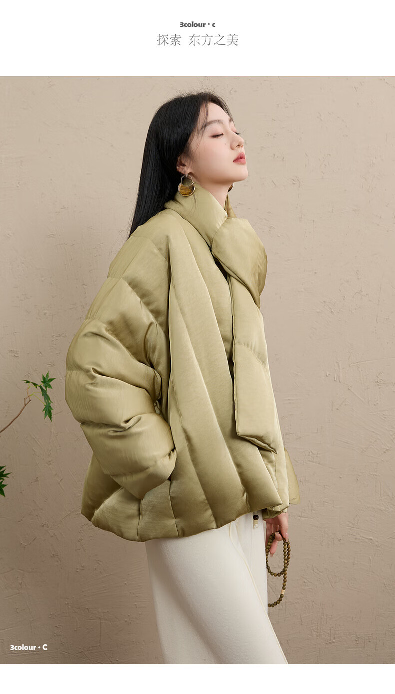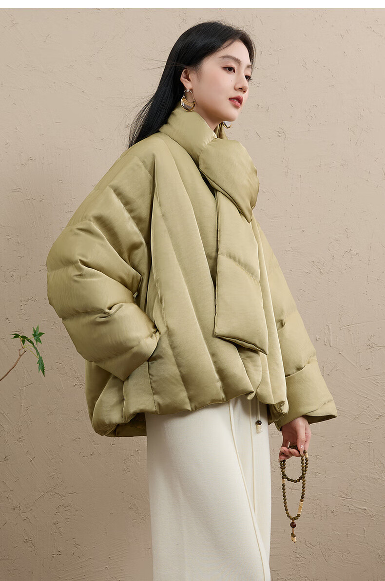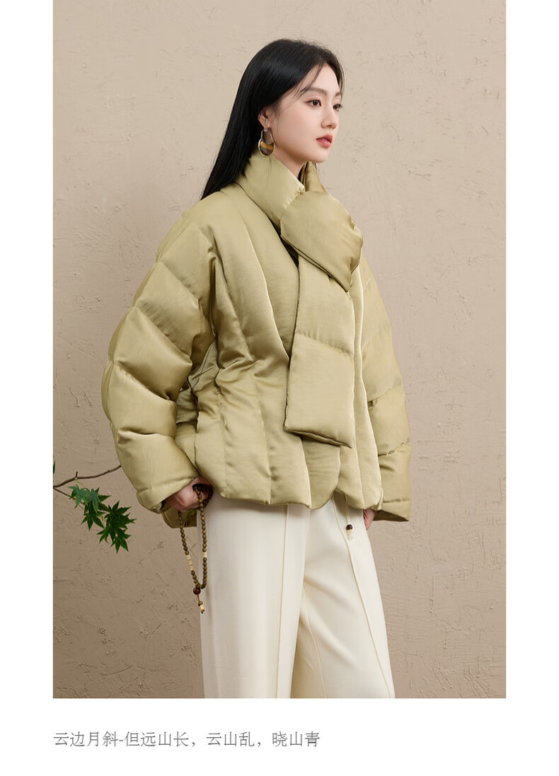 Sancai Cloud Edge Moon Slope 2025 Winter New 90 White Duck Down Jacket Loose Warm Scarf C Mustard Green L 165/88A