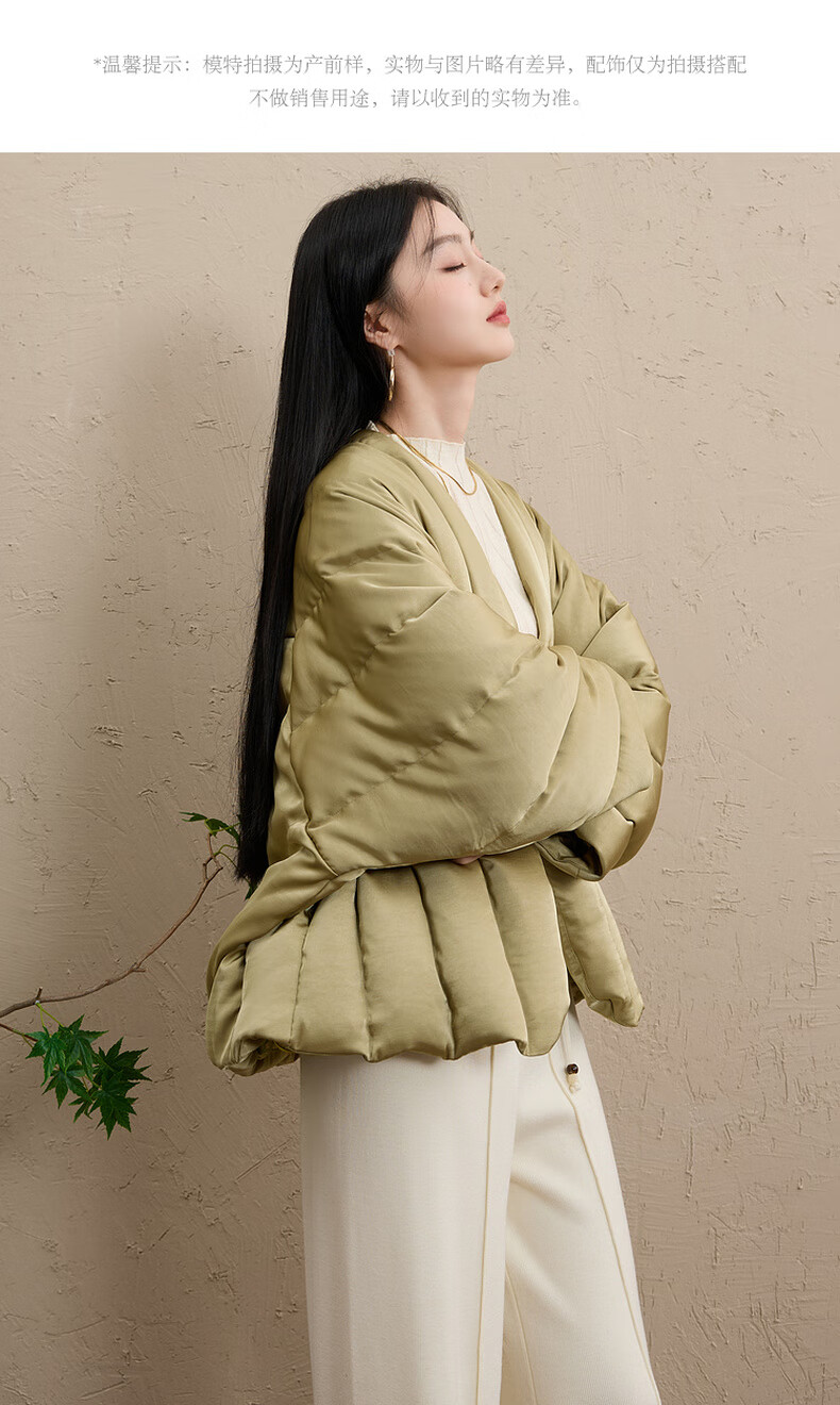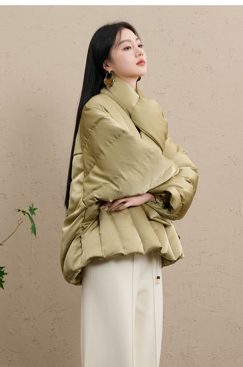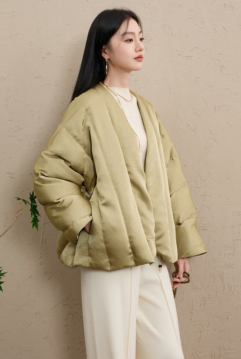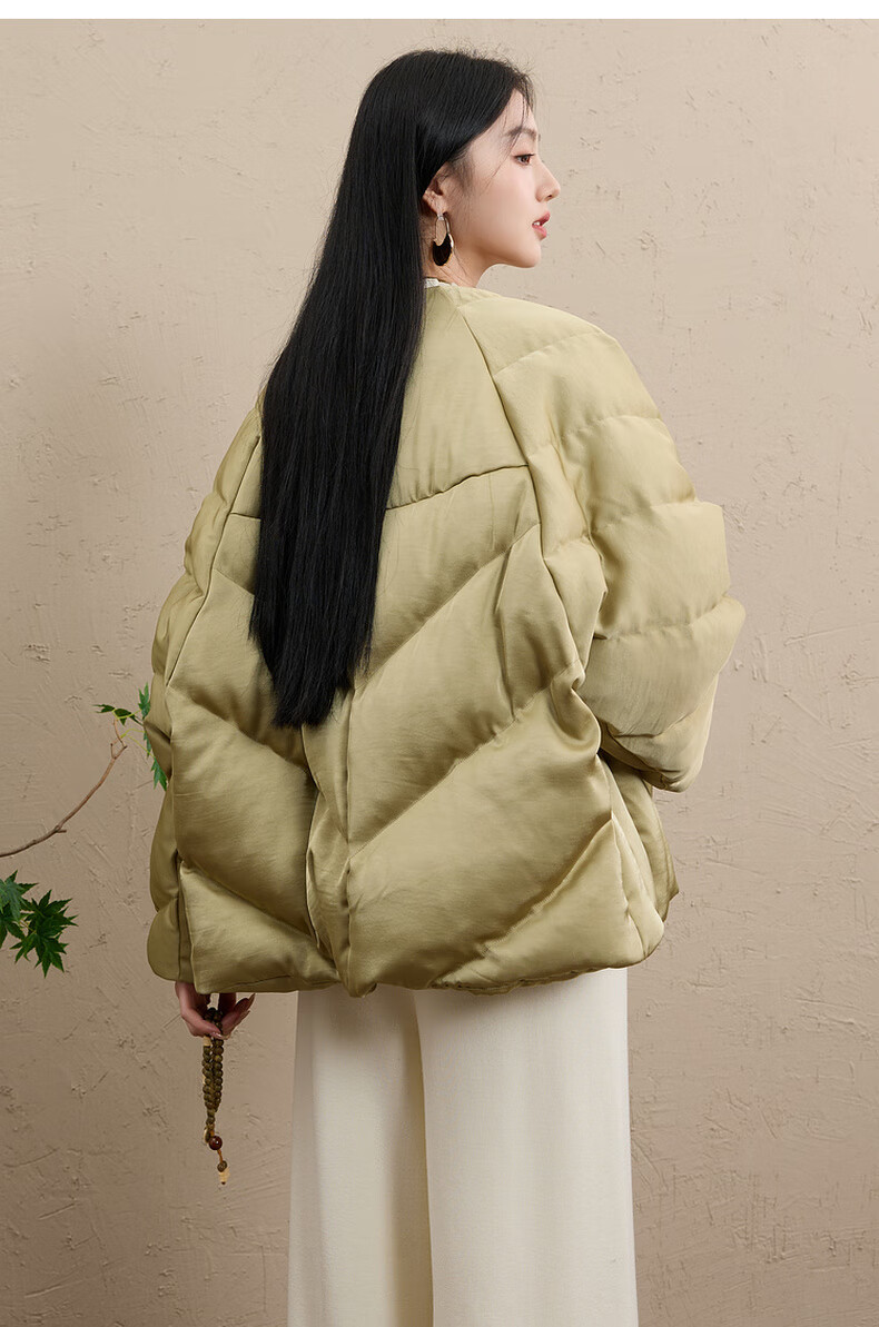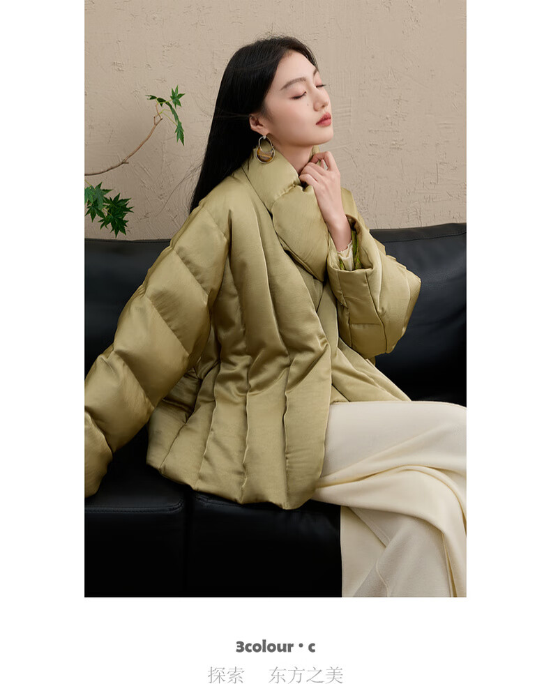 Sancai Cloud Edge Moon Slope 2025 Winter New 90 White Duck Down Jacket Loose Warm Scarf C Mustard Green L 165/88A