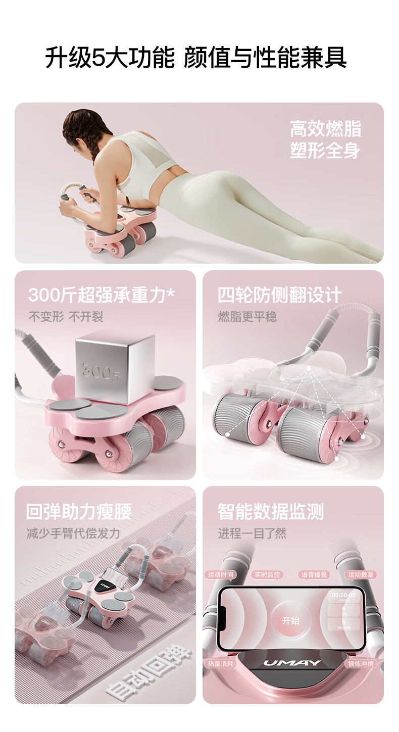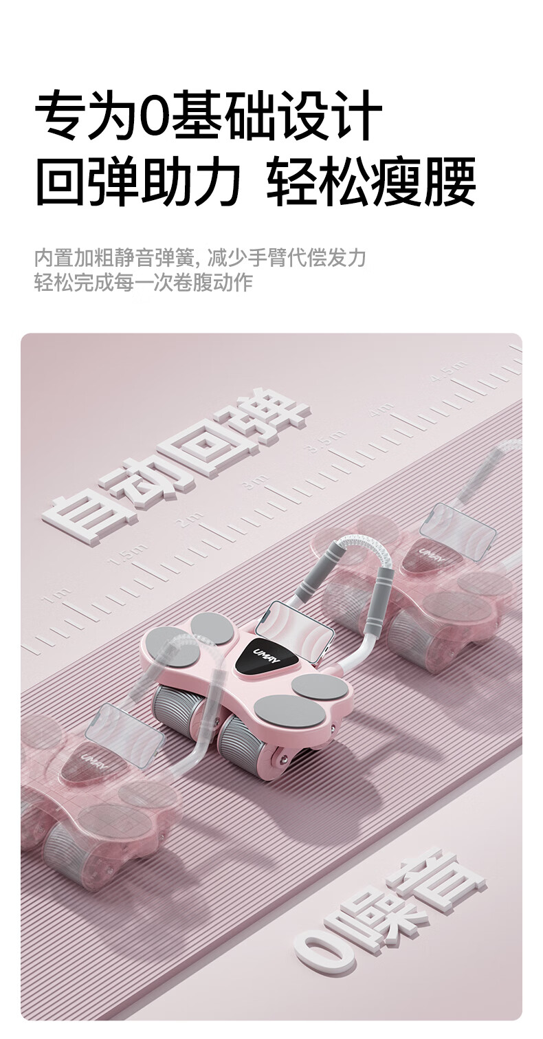 YOU MEI Four-Wheel Abdominal Wheel 2025 New Automatic Rebound Abdominal Muscle Wheel Slim Belly Artifact Home Sports and Fitness Goddess-Four-Wheel Abdominal Wheel AI Zhilian_Double Rebound_Efficient Fat Burning_Free 2