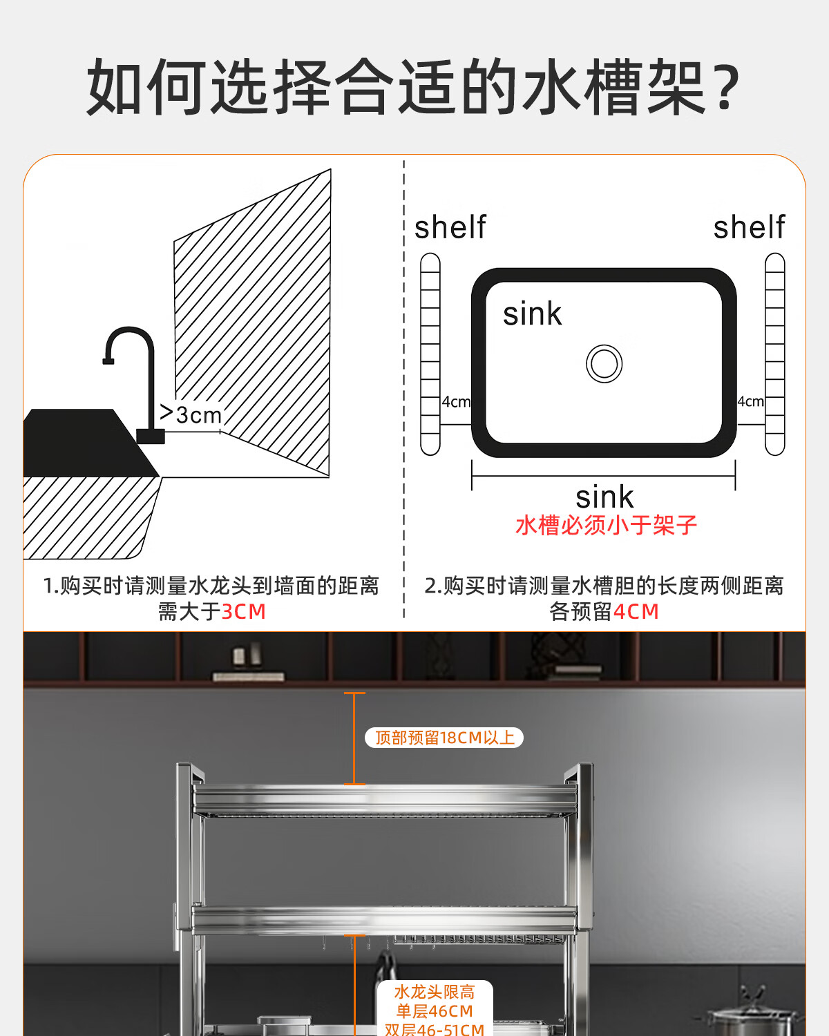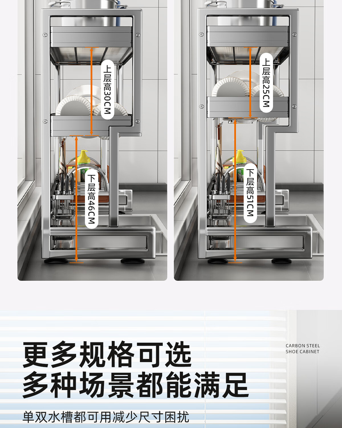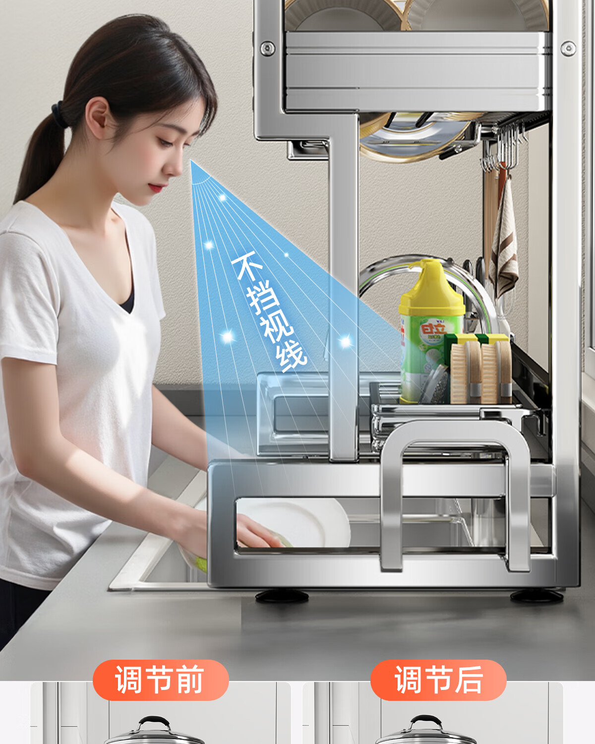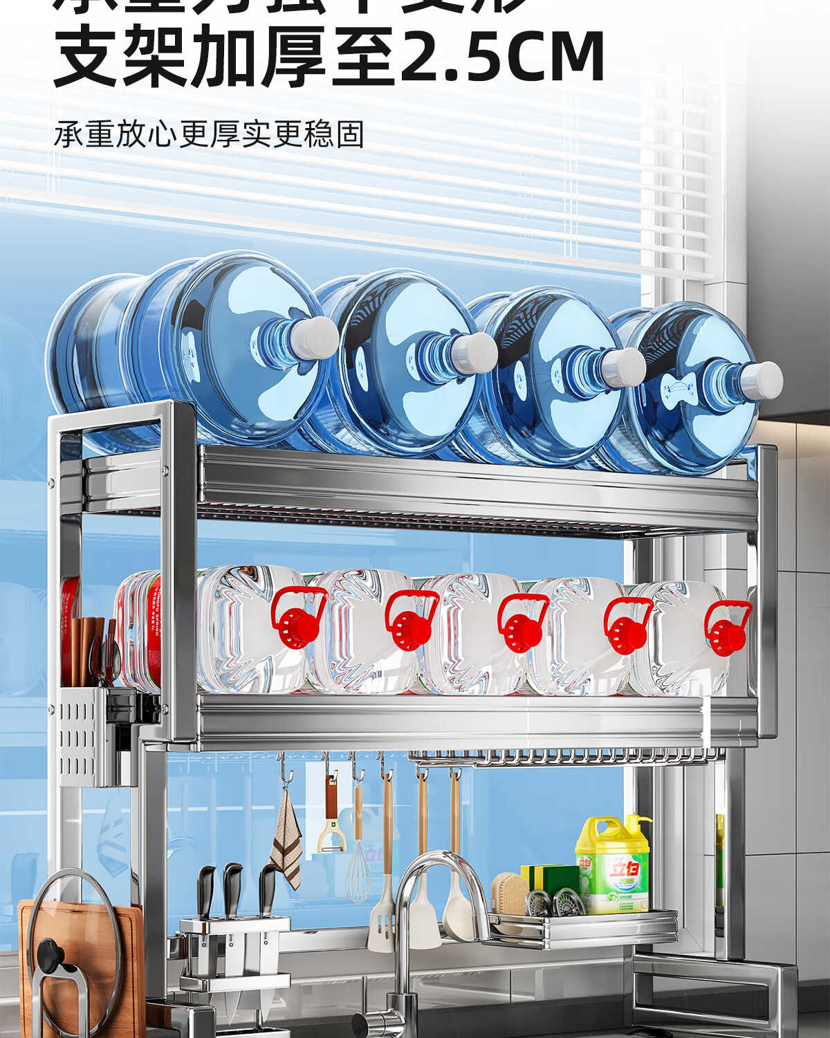 YOUQIN Stainless Steel Kitchen Sink Rack Dish Drain Storage Pool Washing Pool Multifunctional Dish Drain Rack Upgraded Thickened Stainless Steel Single Layer 76CM Main Rack + Hooks*4