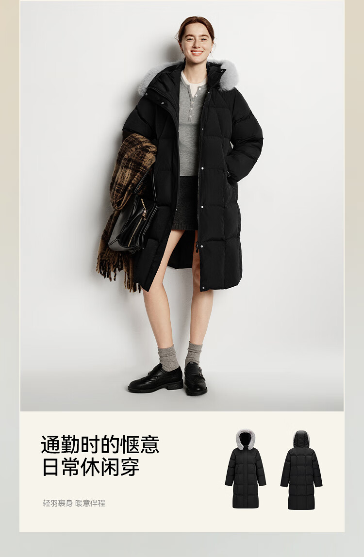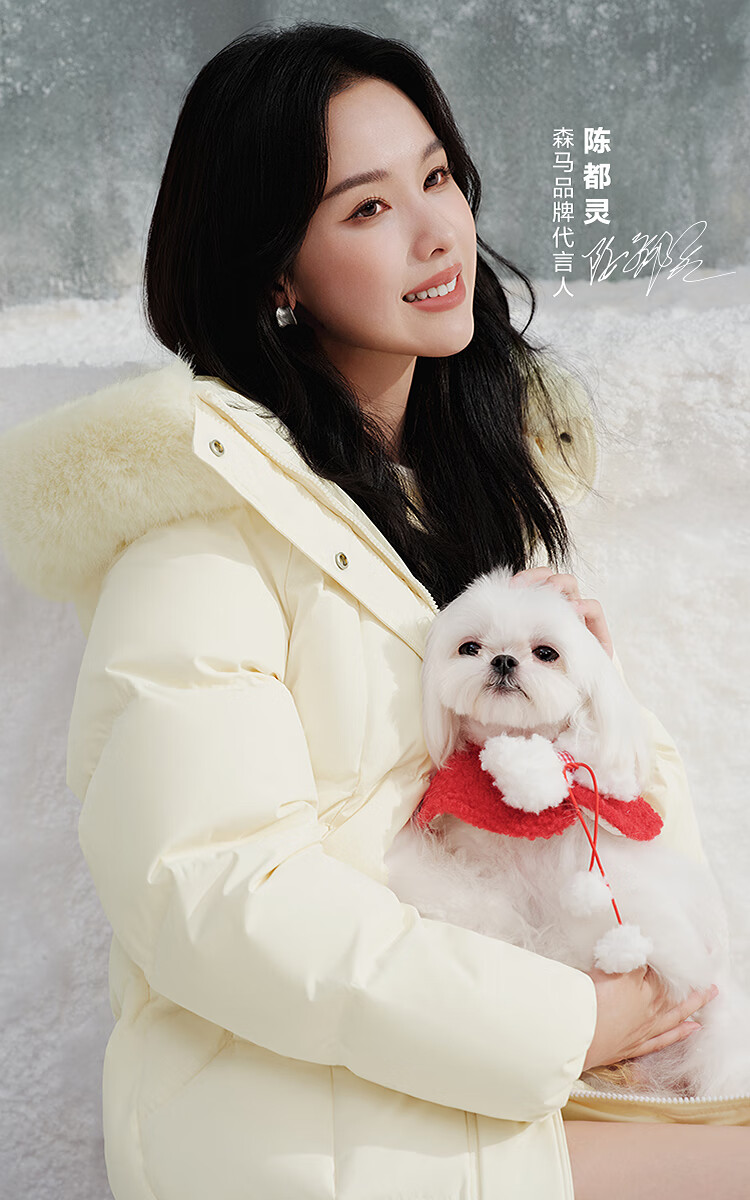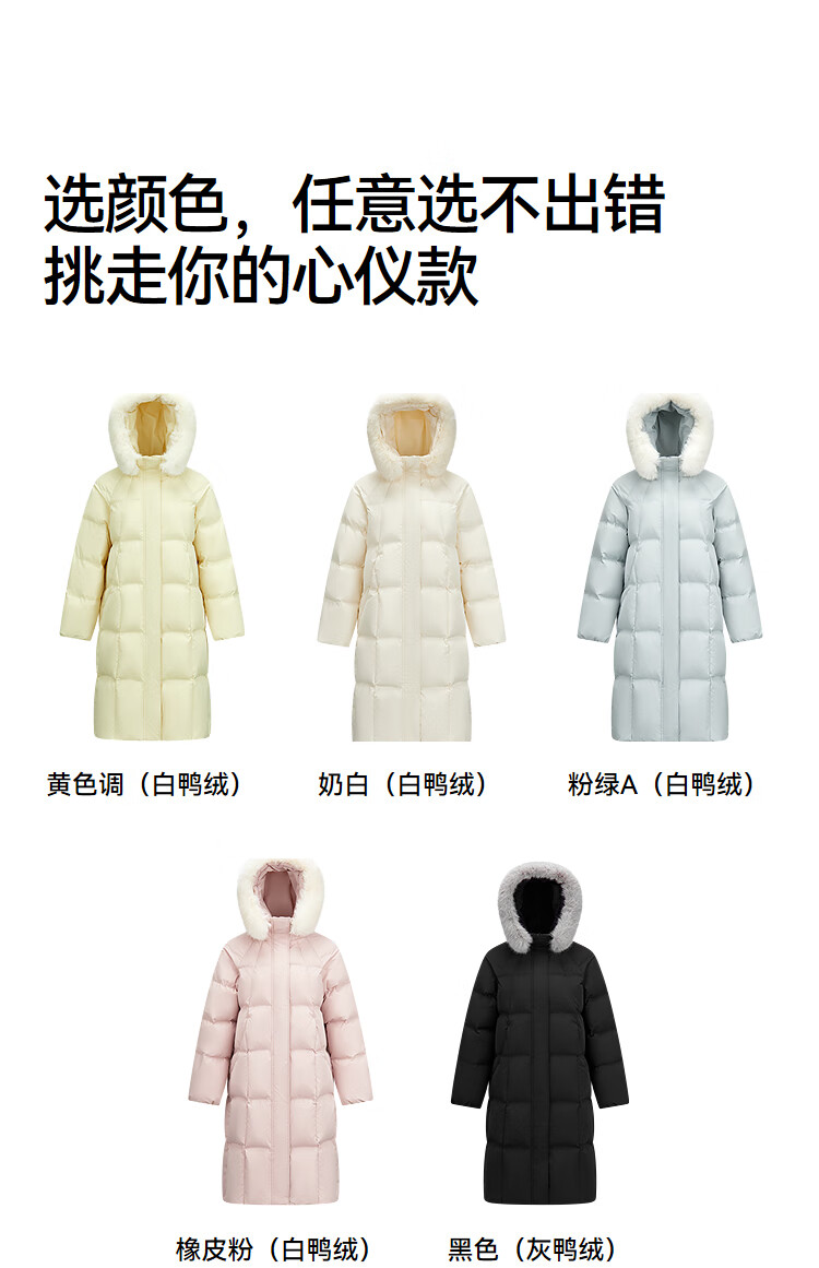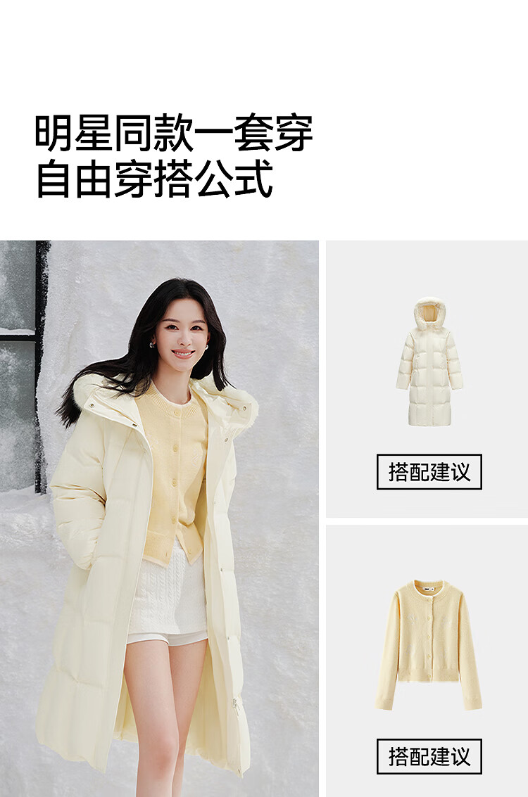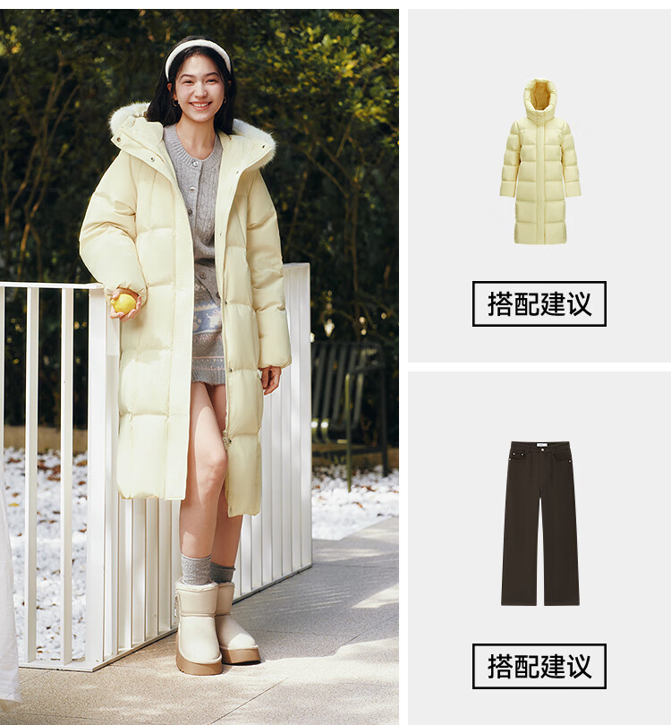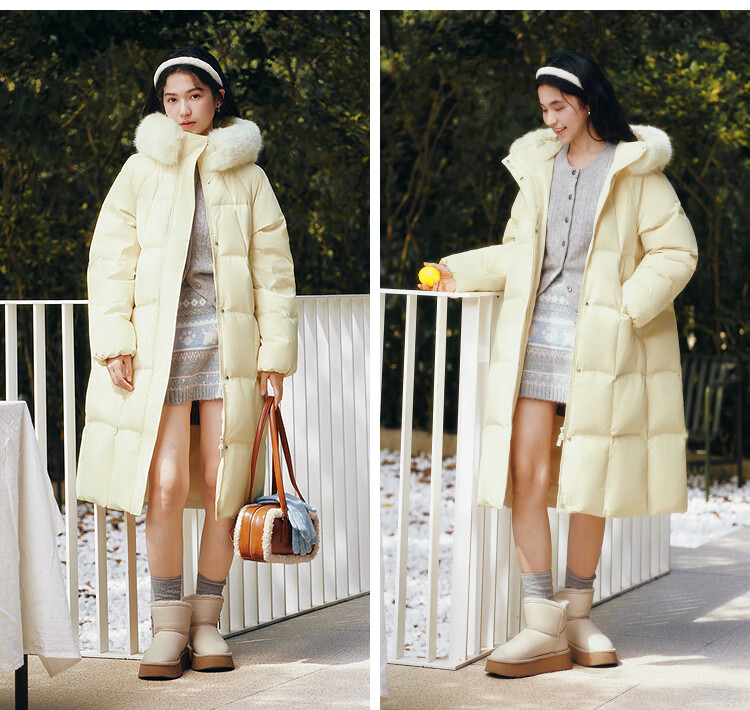 Semir Chen Duling | 90 down long down jacket for women 2025 winter new style detachable large fur collar hooded protective jacket milk white (white duck down) 10501 M