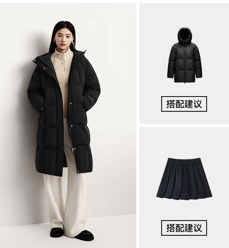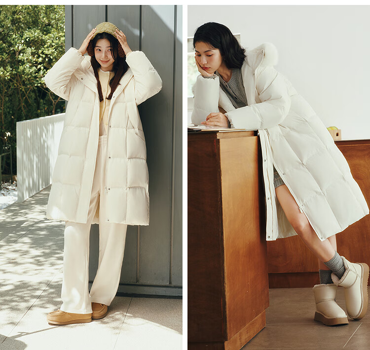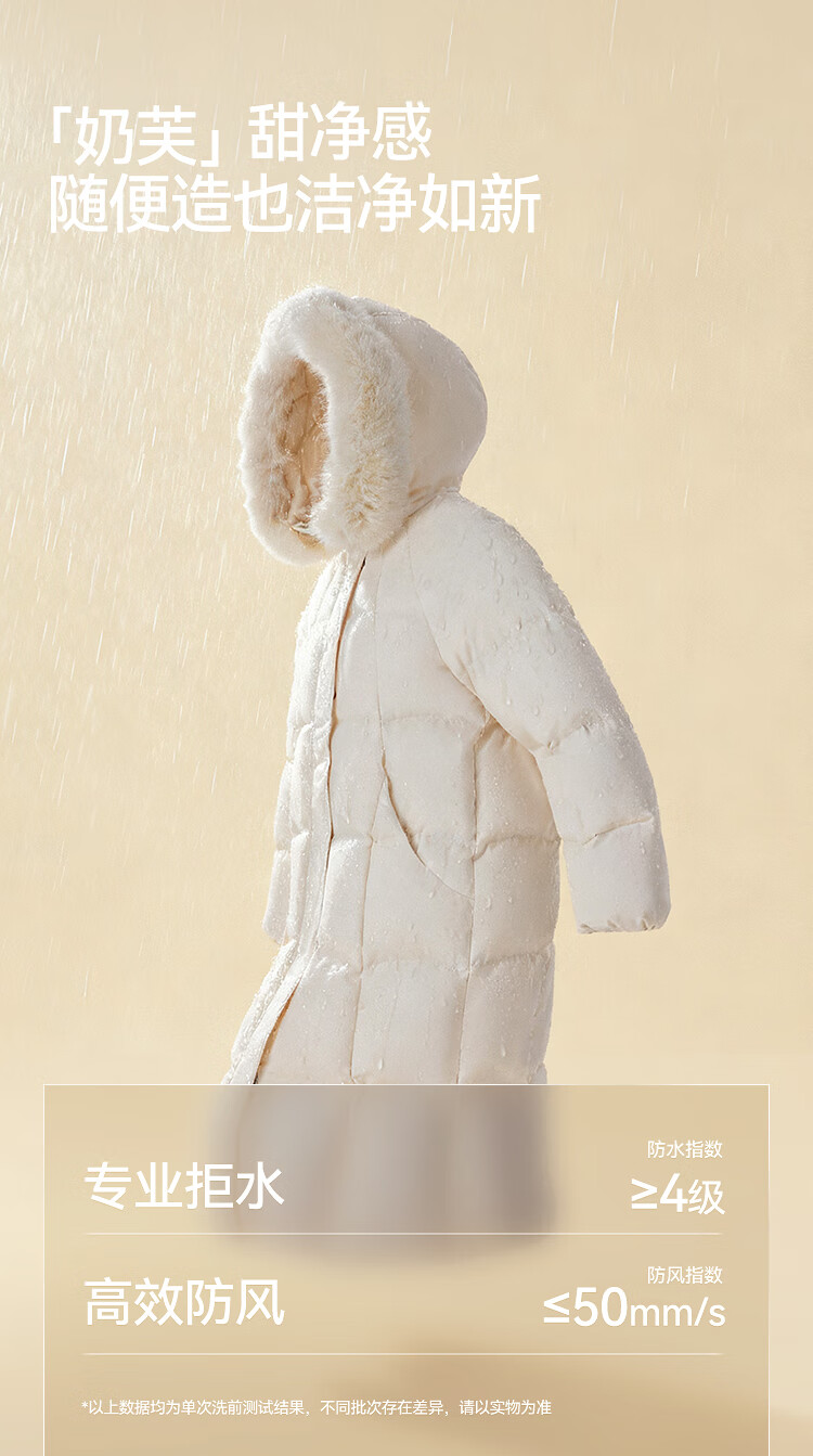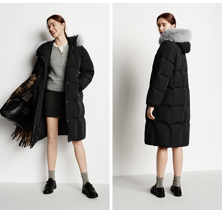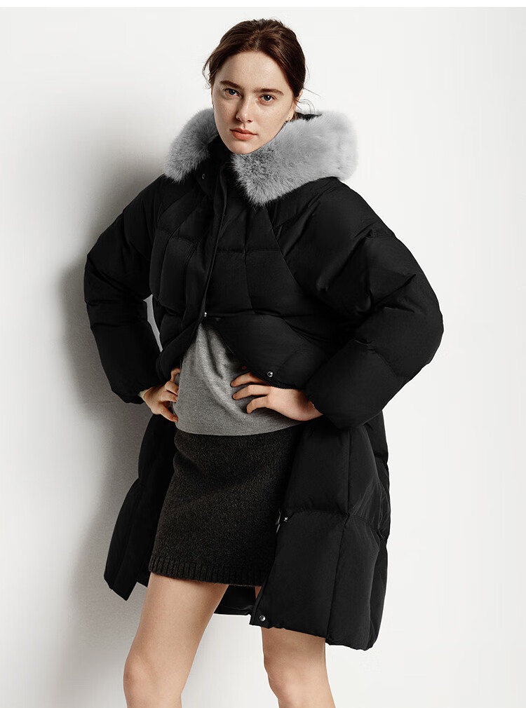 Semir Chen Duling | 90 down long down jacket for women 2025 winter new style detachable large fur collar hooded protective jacket milk white (white duck down) 10501 M