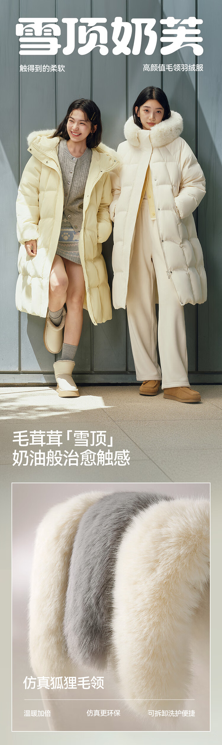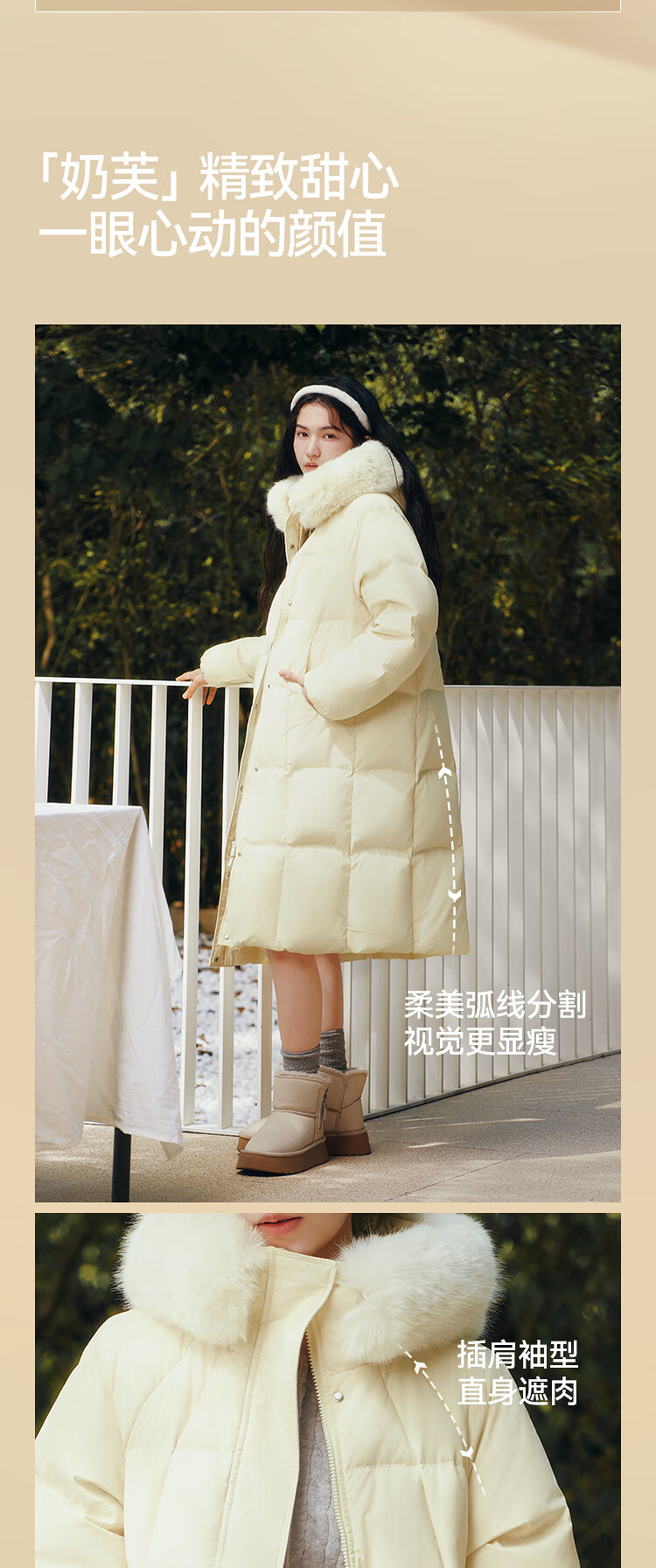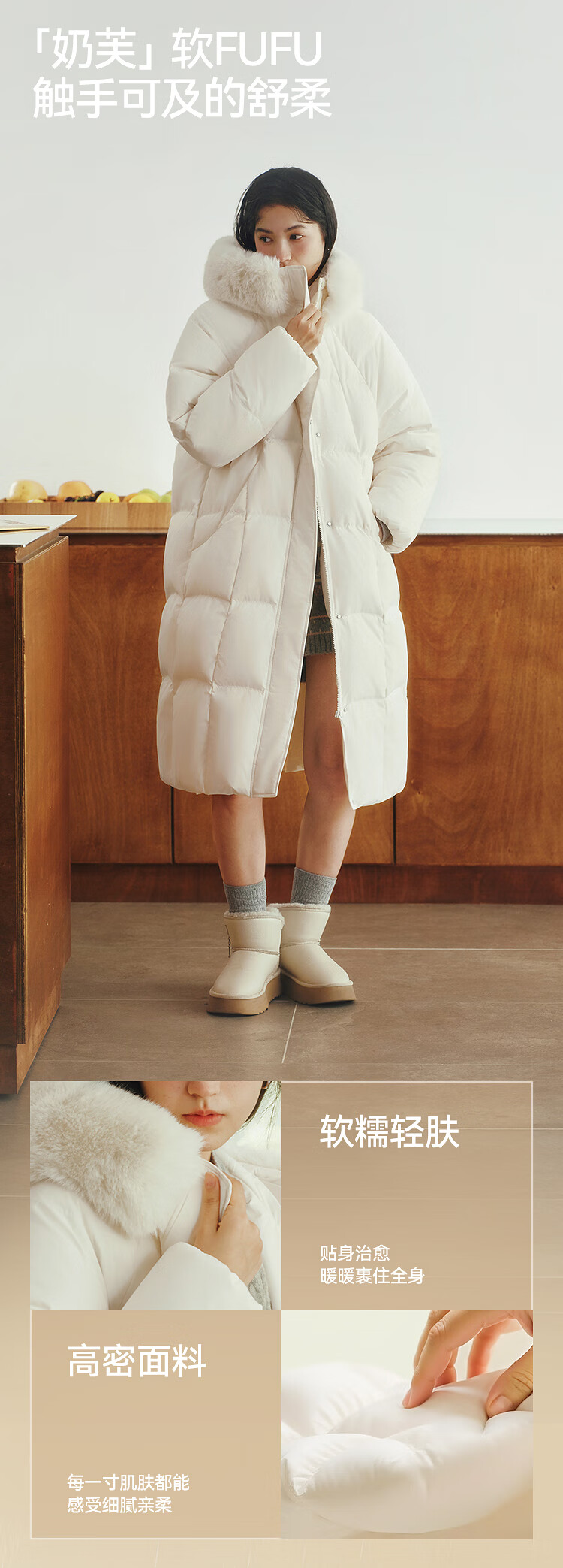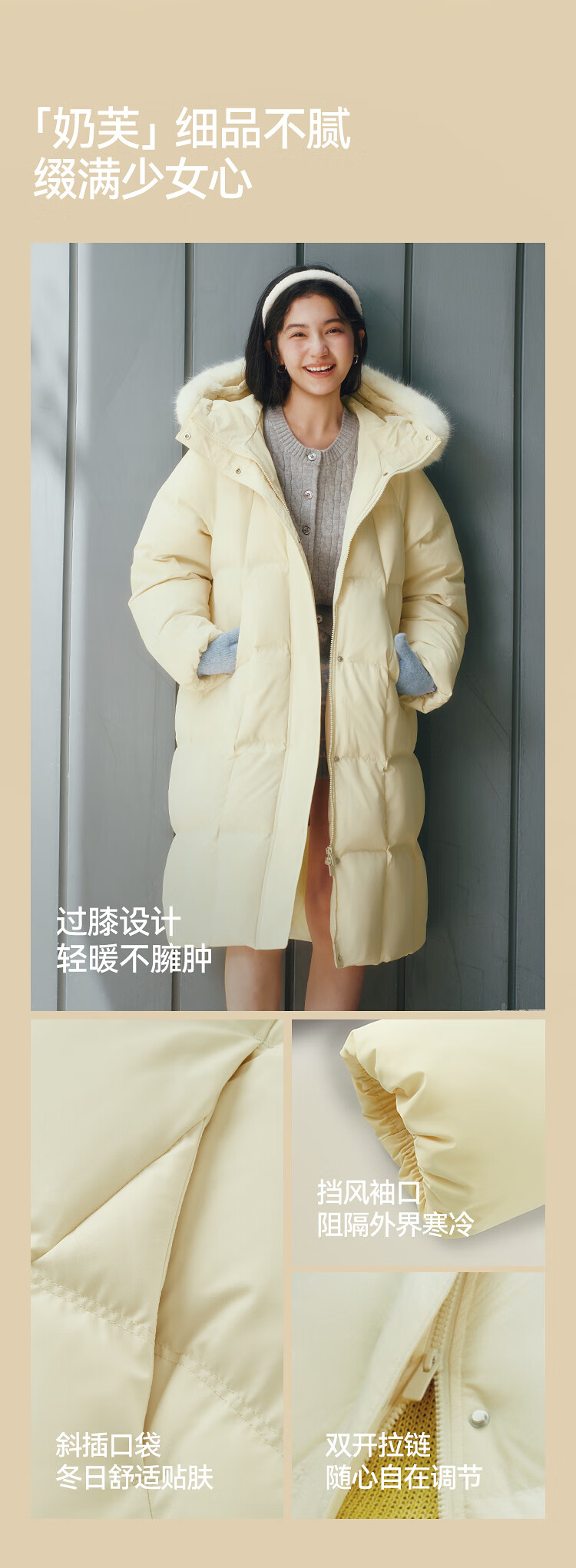 Semir Chen Duling | 90 down long down jacket for women 2025 winter new style detachable large fur collar hooded protective jacket milk white (white duck down) 10501 M