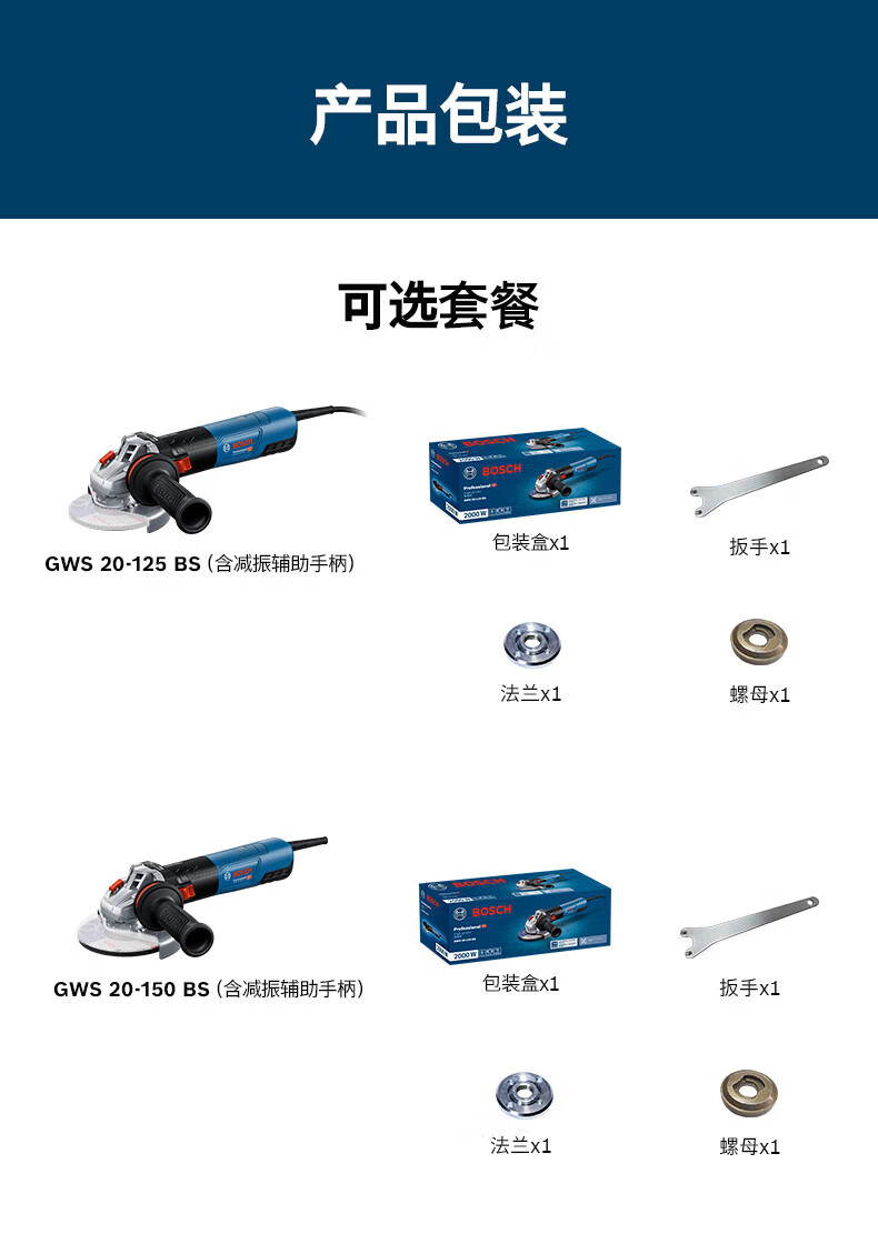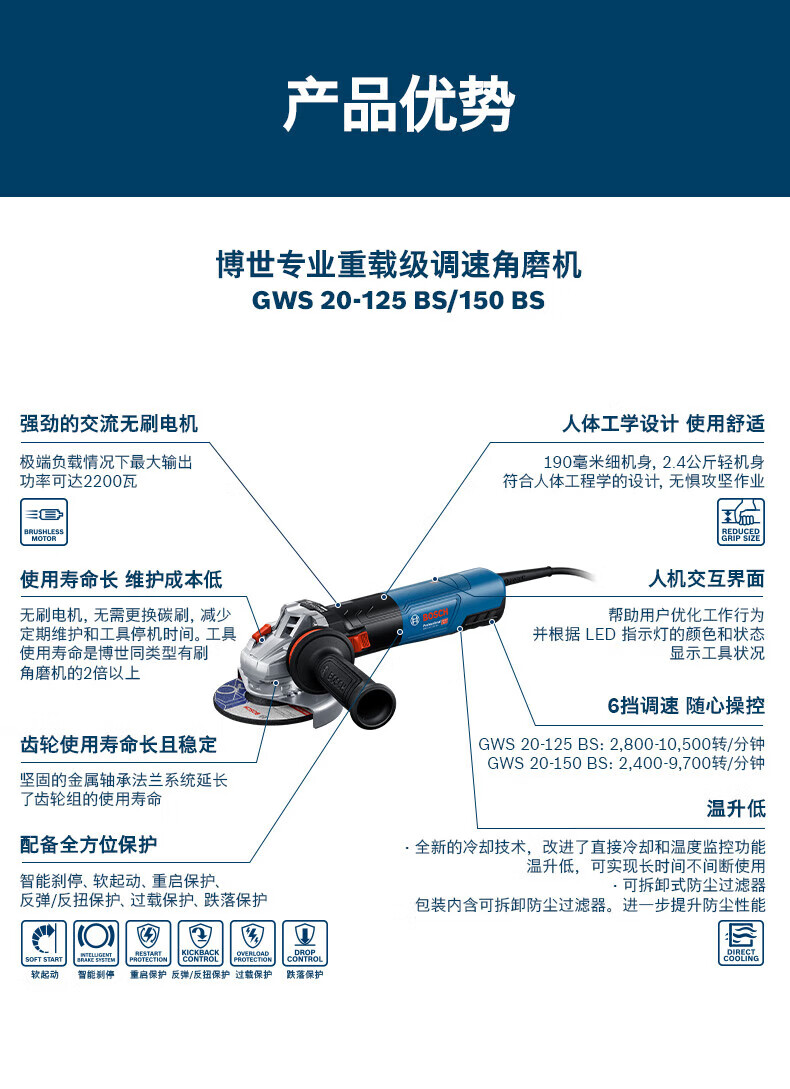 Bosch (BOSCH) angle grinder GWS20-125/150BS AC brushless cutting machine 6-speed adjustment polisher 125MM brushless GWS 20-125BS standard
