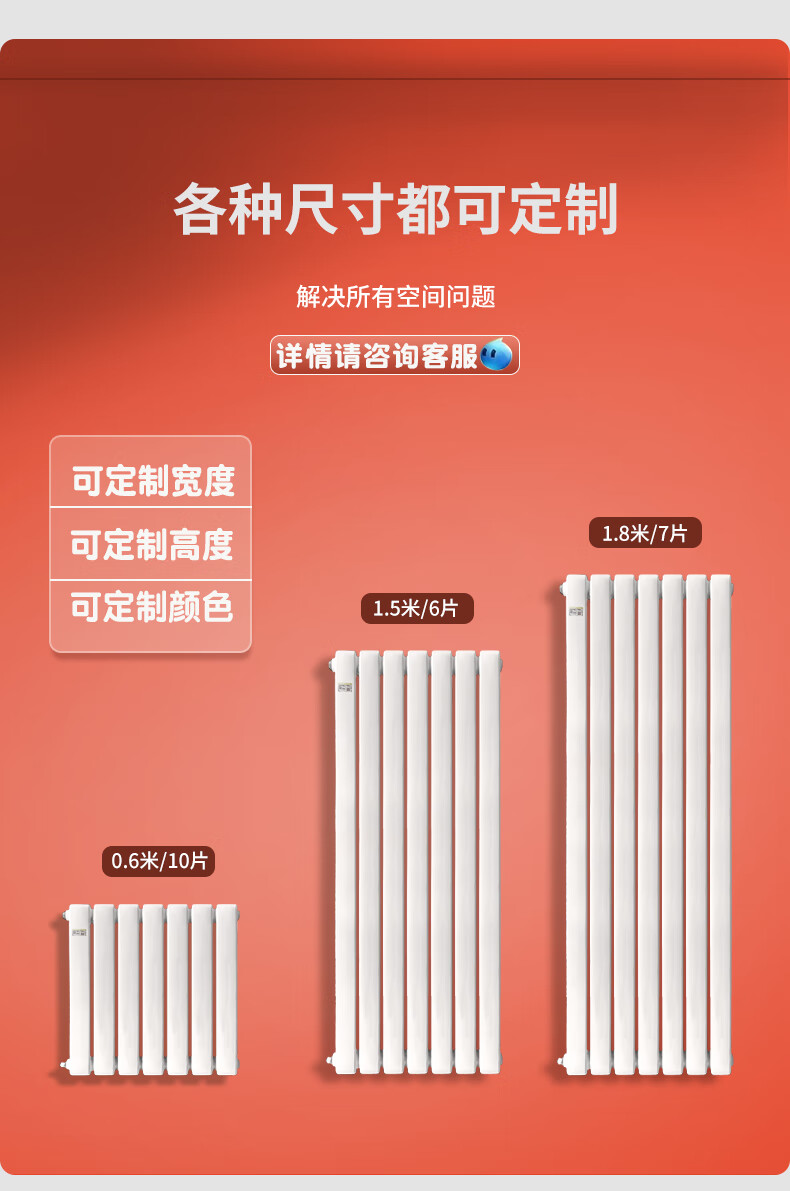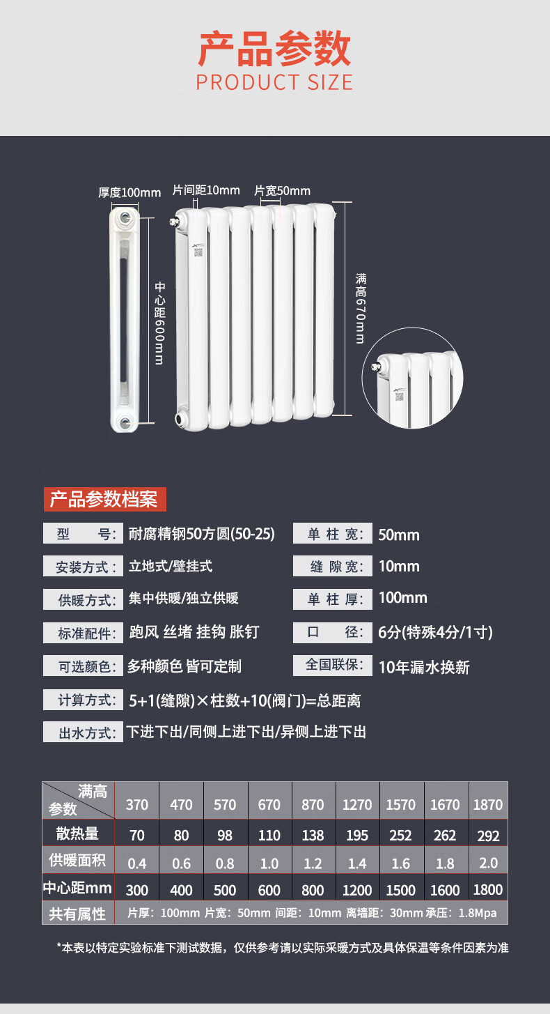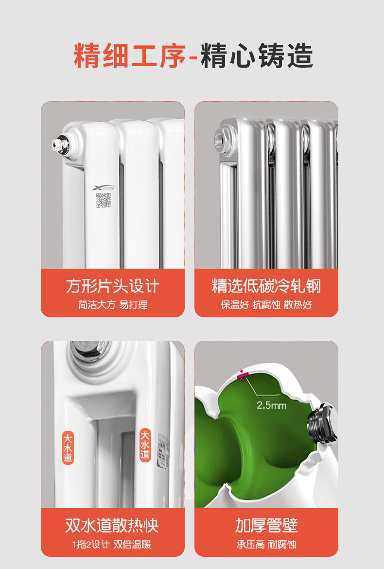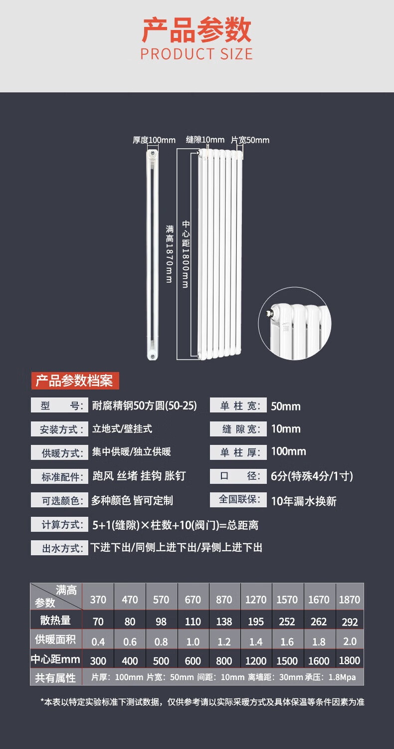 Xinlanshijia stainless steel radiator household central heating radiator self-heating 50*25 square meter stainless steel 50*25 square meter (single column price, minimum order of three columns) 1800mm*1 column 1.8