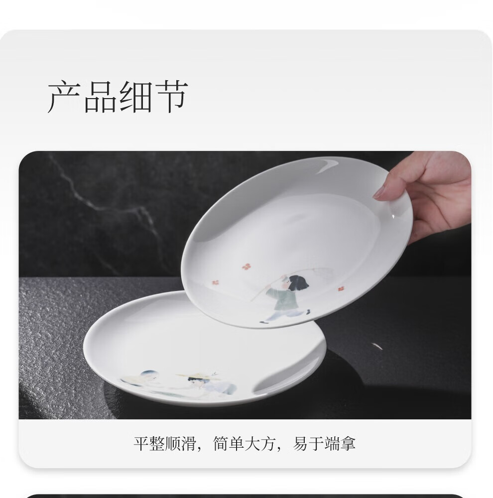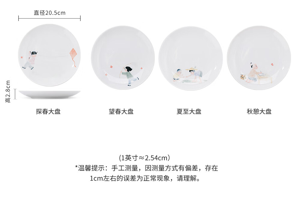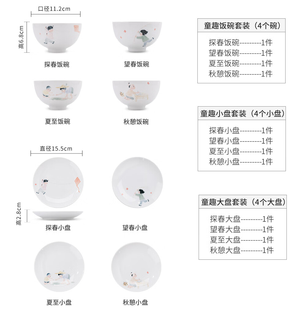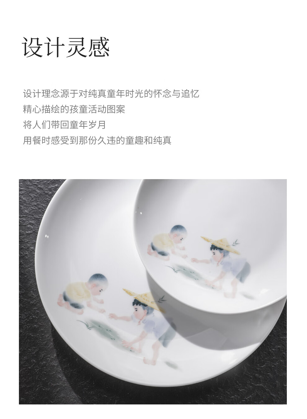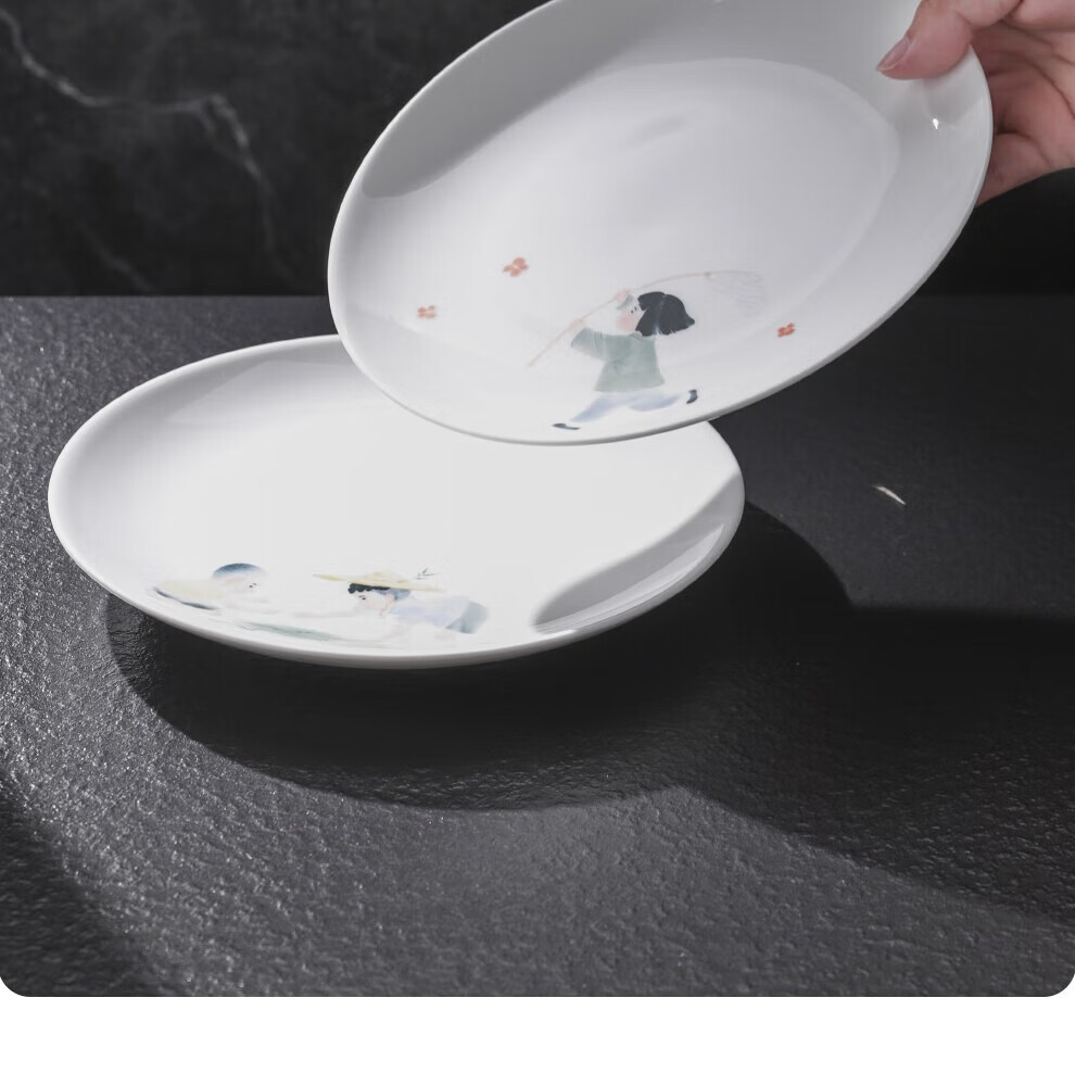 Jingdezhen official childlike ceramic children's tableware set, bowls and dishes, complete set of bowls and dishes, high-end gift box, gift box, childlike tableware-Tanchun large plate-3 plates
