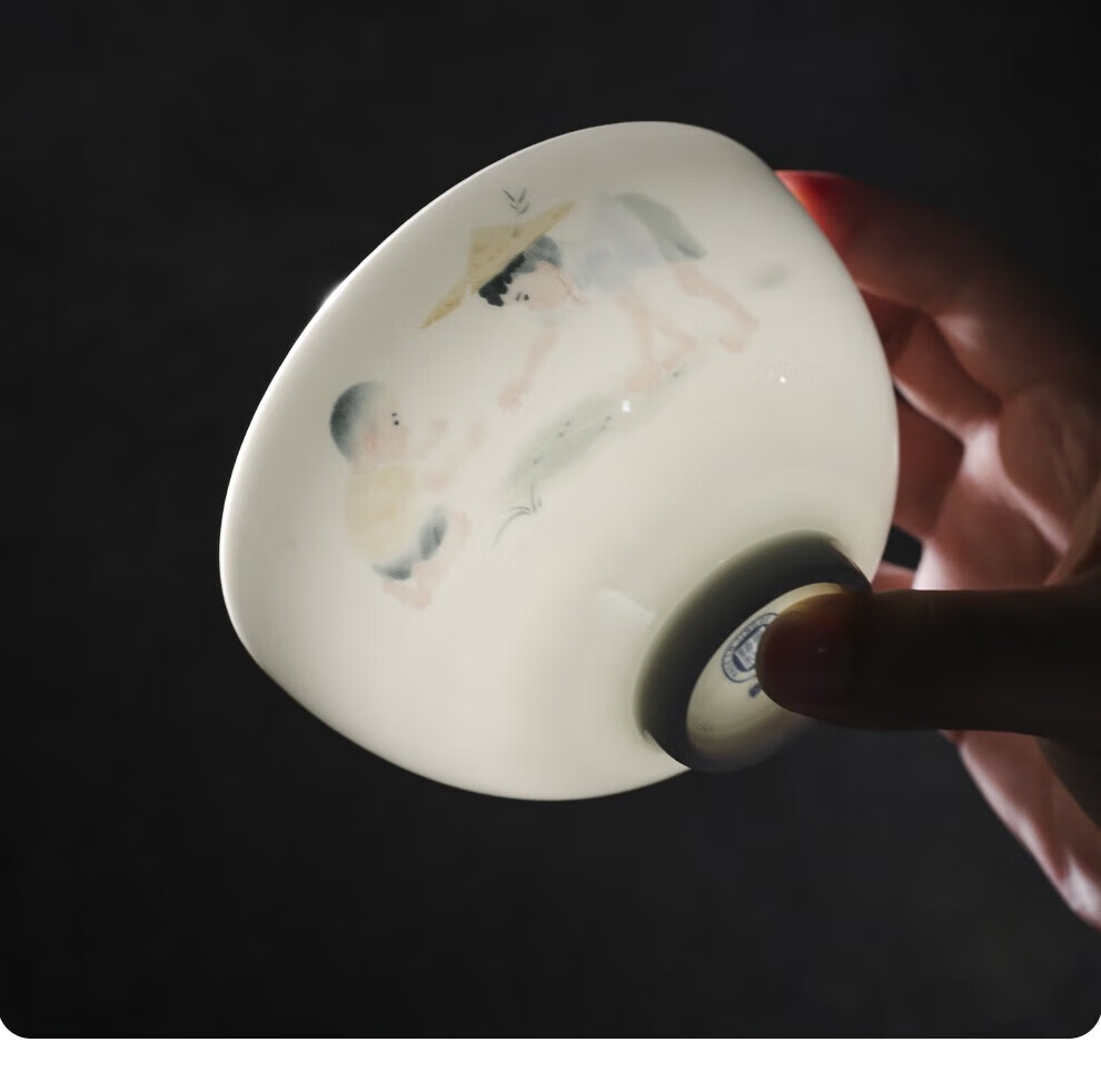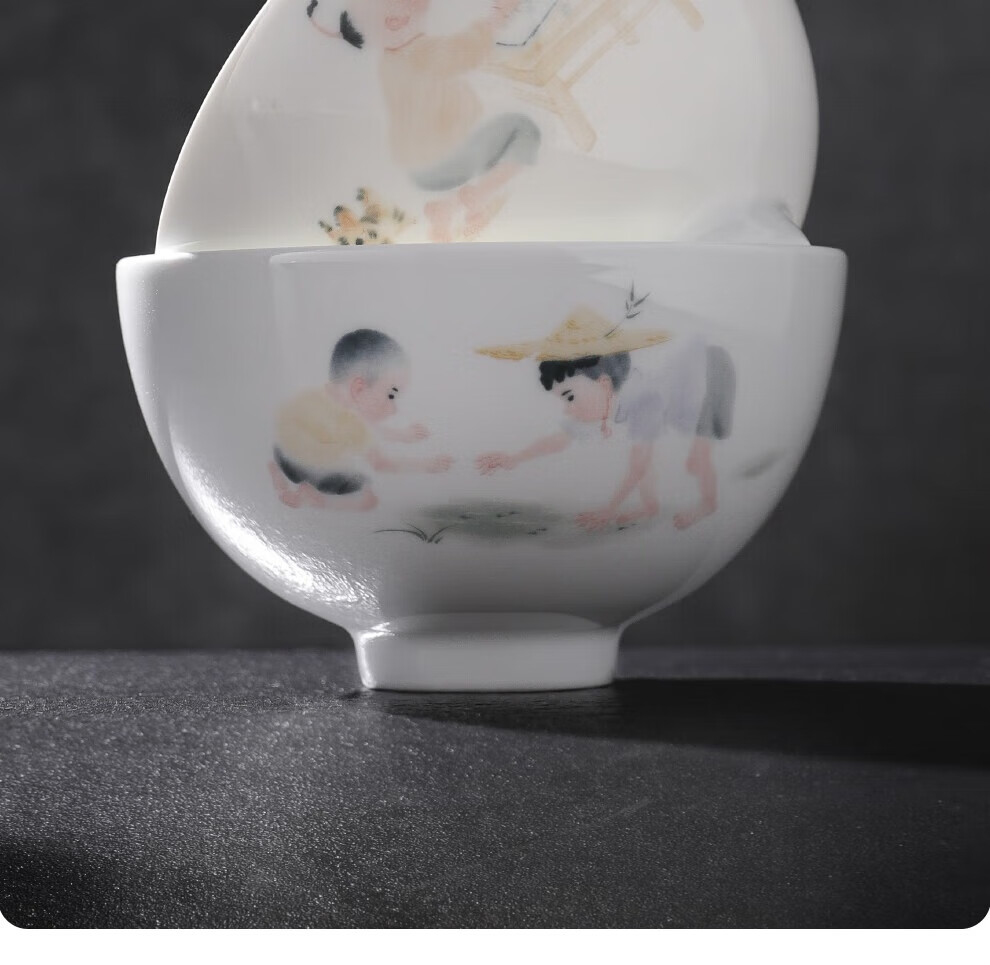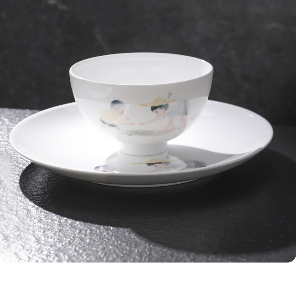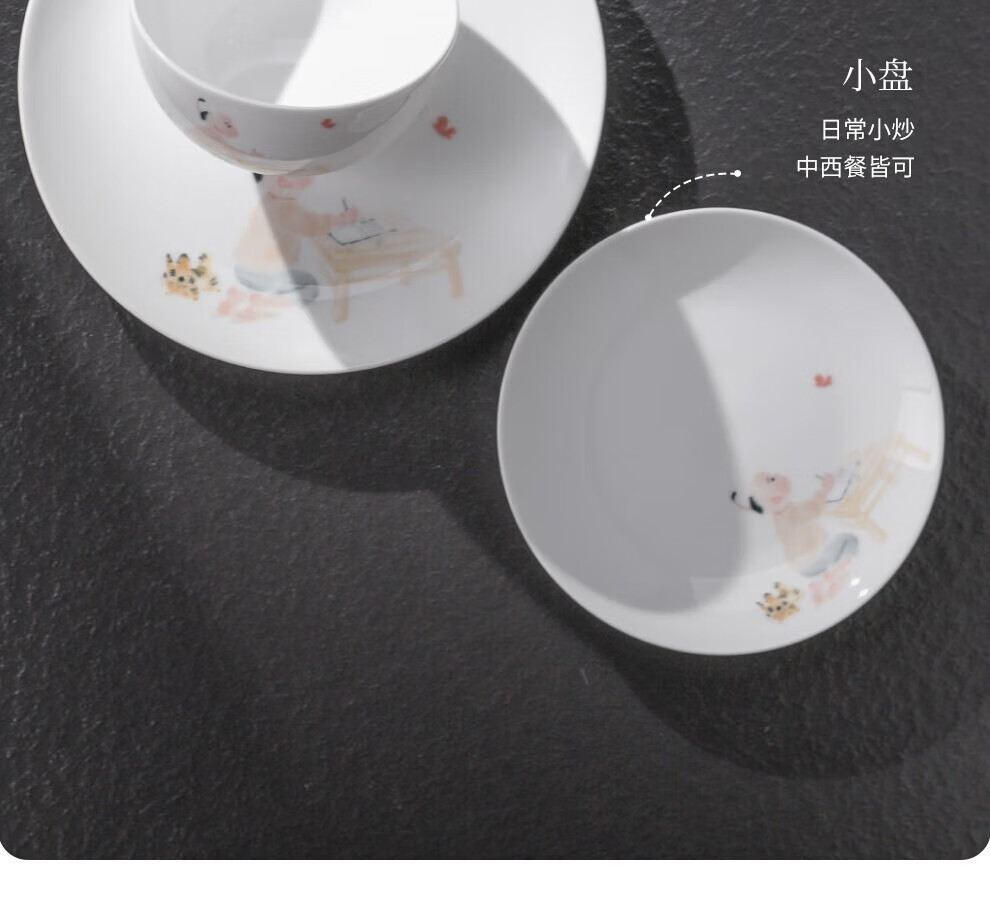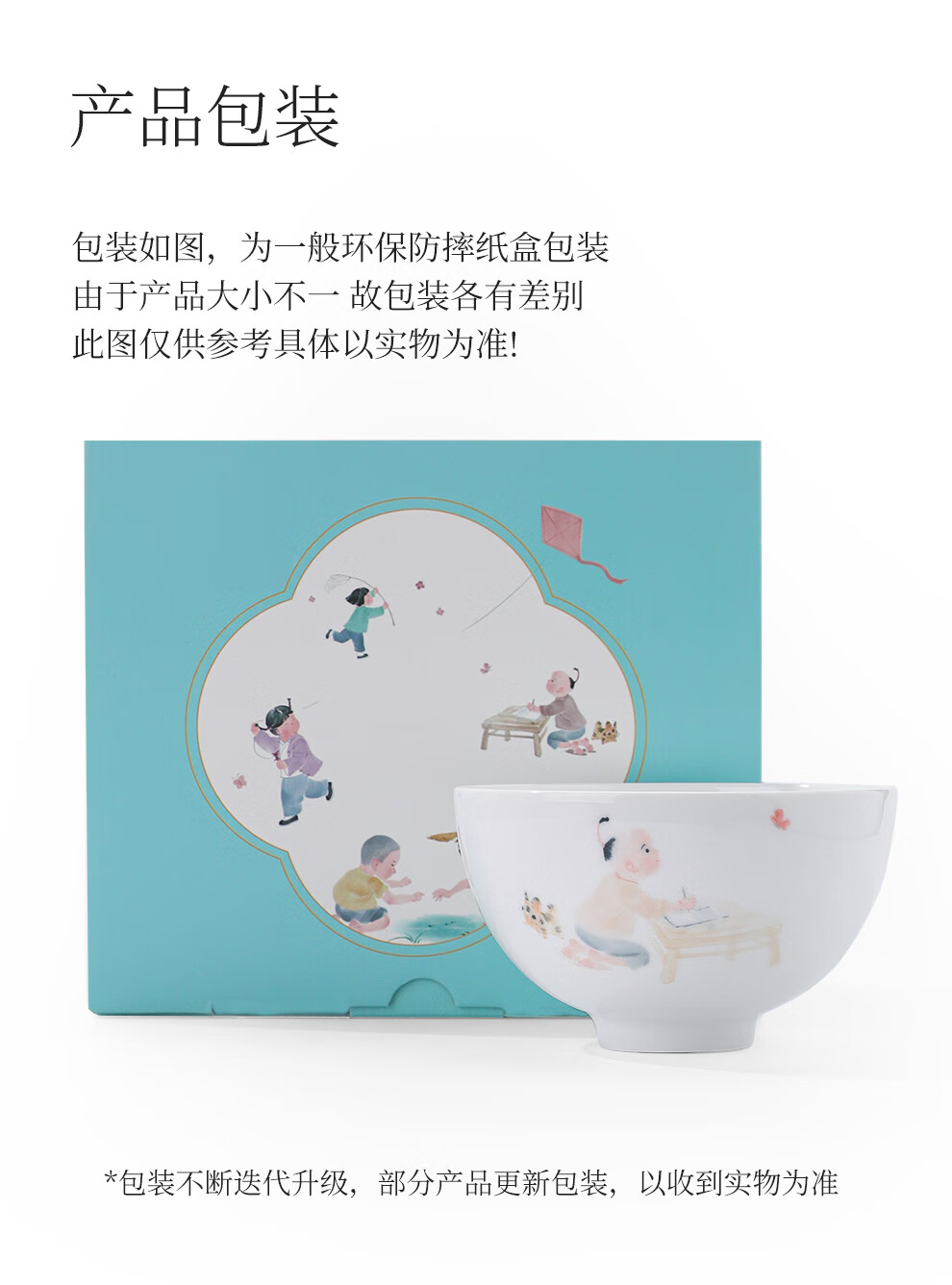 Jingdezhen official childlike ceramic children's tableware set, bowls and dishes, complete set of bowls and dishes, high-end gift box, gift box, childlike tableware-Tanchun large plate-3 plates