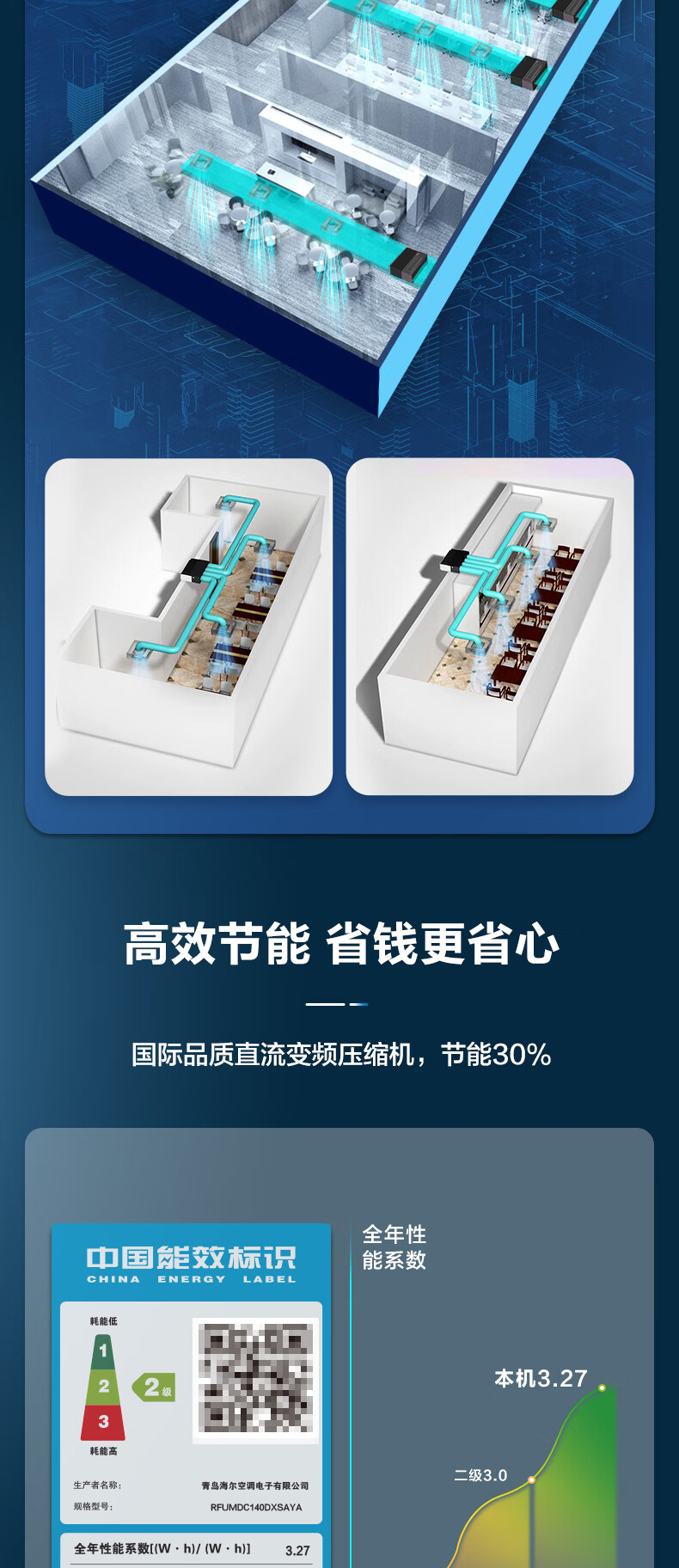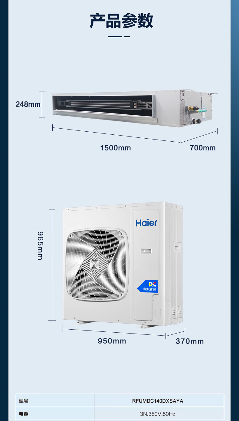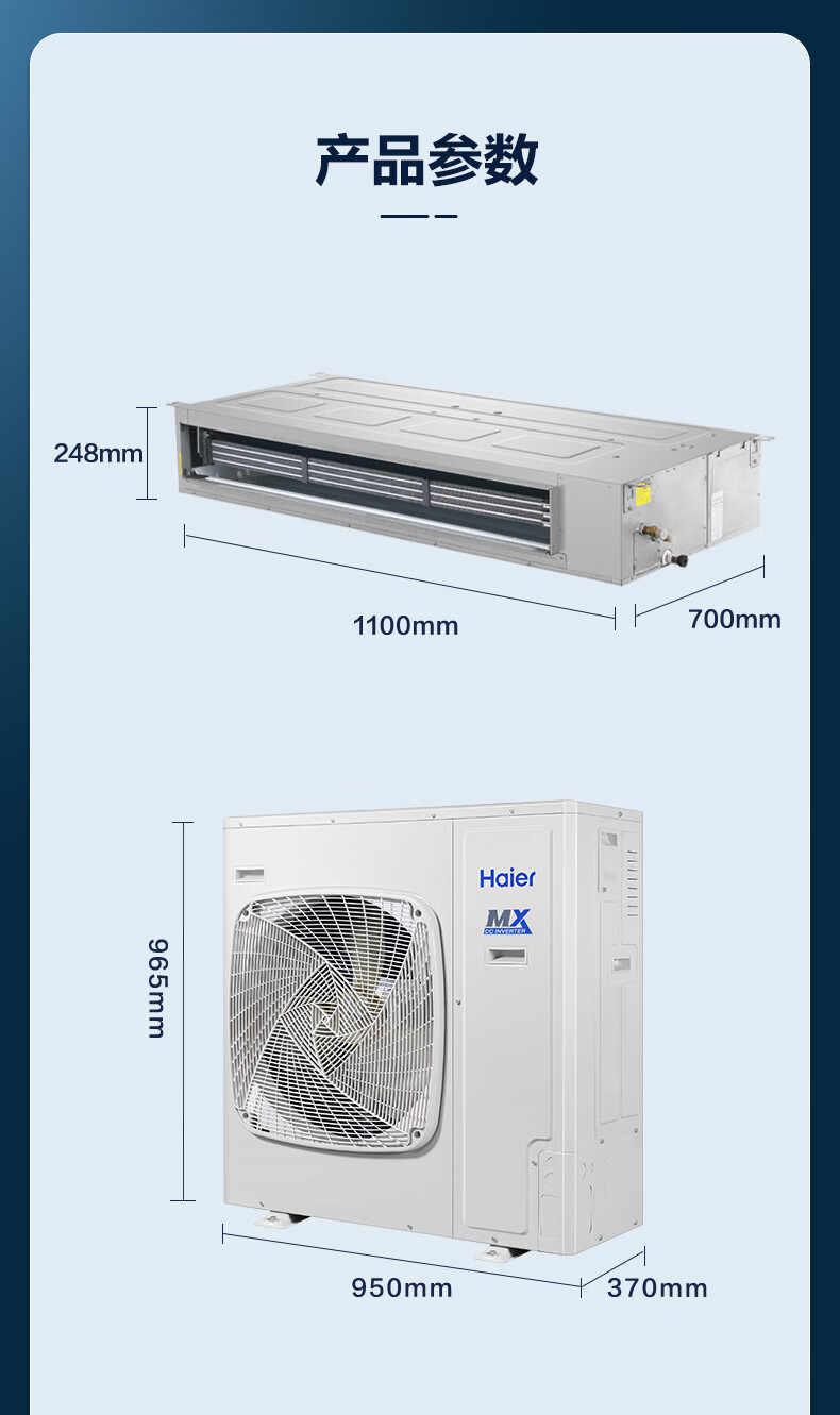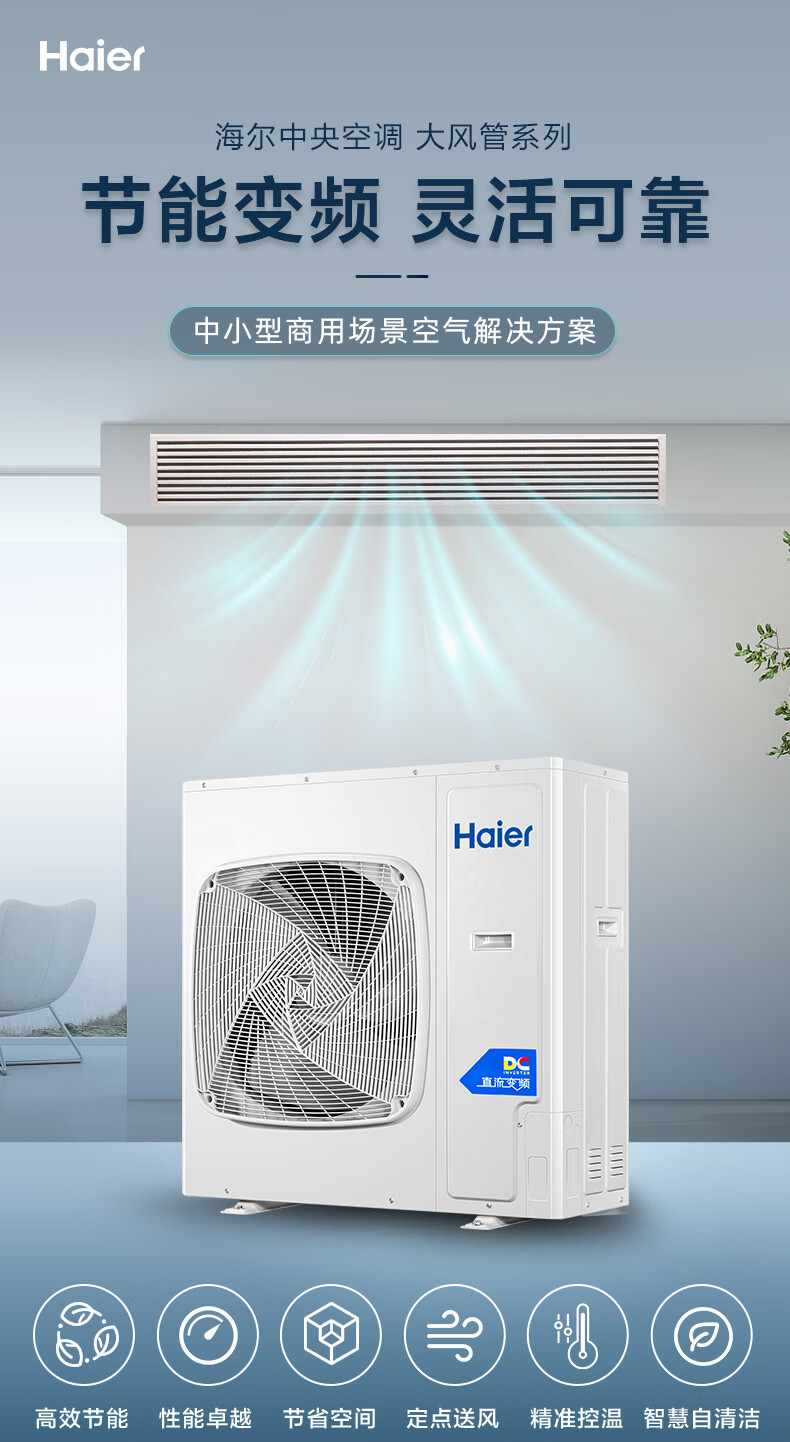 Haier central air conditioner commercial energy-saving hot model household duct machine one-to-one central air conditioner 5 hp office restaurant factory shop commercial energy-saving inverter central air conditioner 6 hp second-level energy efficiency smart self-cleaning without electric auxiliary heat
