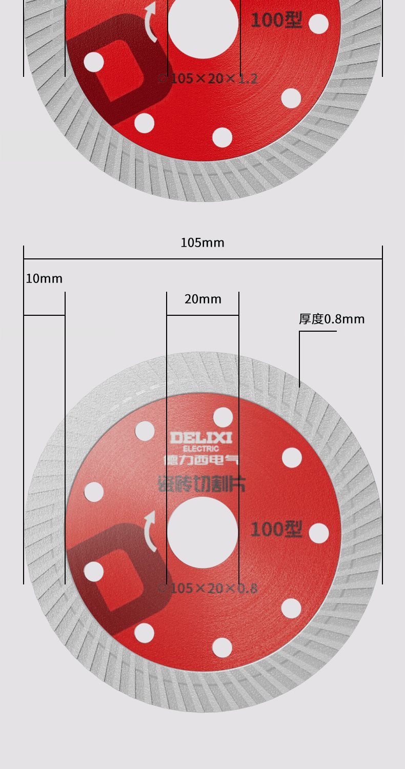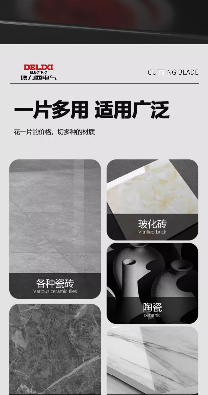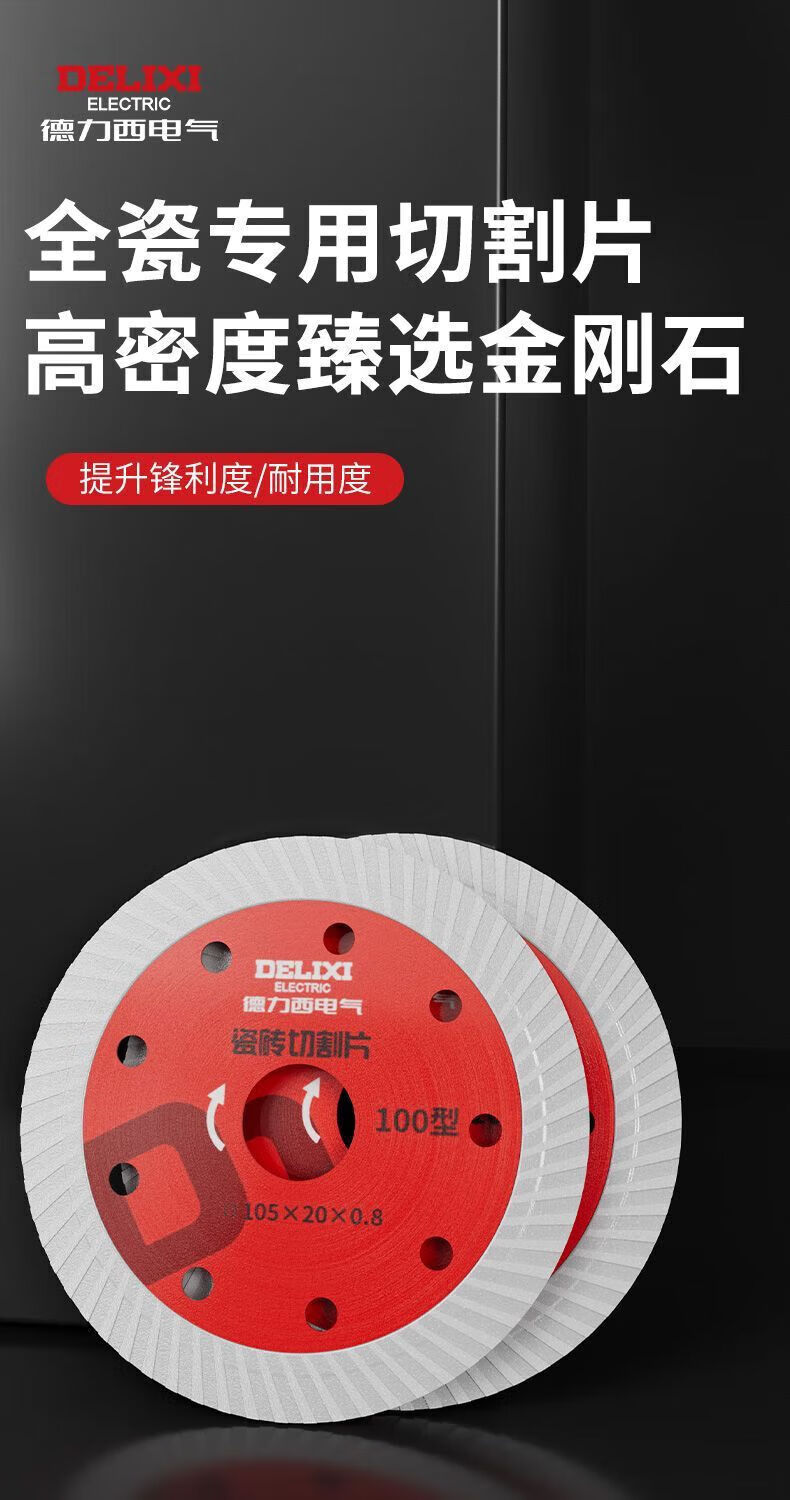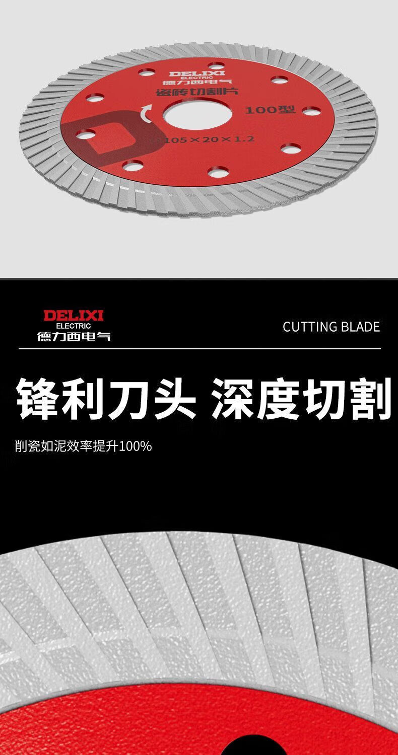 Delixi Electric tile cutting blade ultra-thin diamond saw blade marble sheet marble vitrified tile dry cutting special sharp industrial tile cutting 0.8mm thickness 1 piece