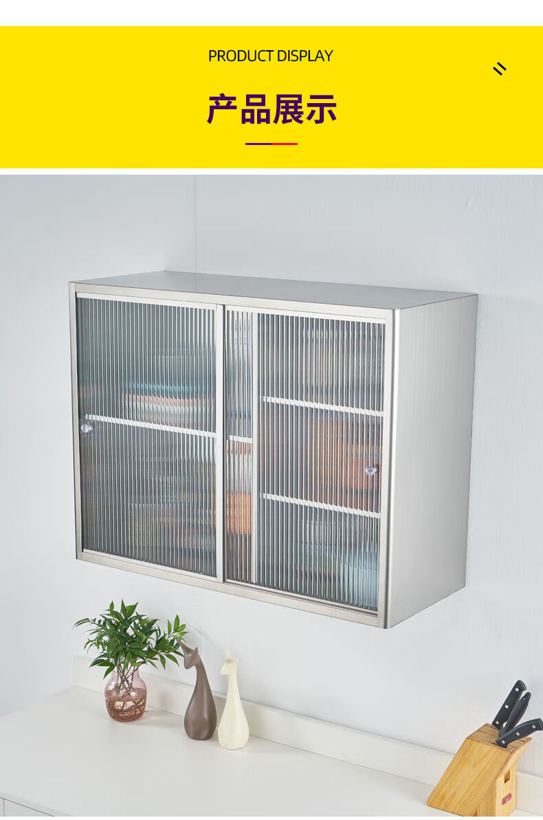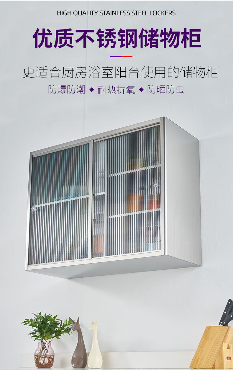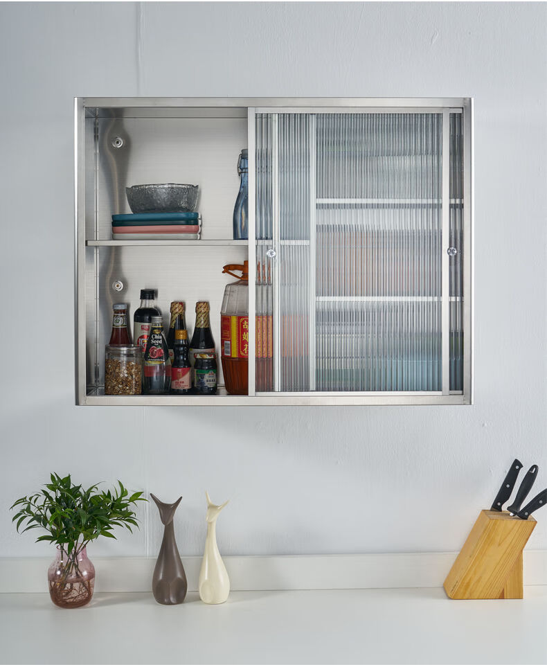 Others Stainless steel sliding wall cabinet Tempered Changhong glass door storage cabinet display cabinet Light luxury bathroom wall-mounted wall cabinet Thickened tempered Changhong glass Length 65*Height 65*Width 25cm Completely installed