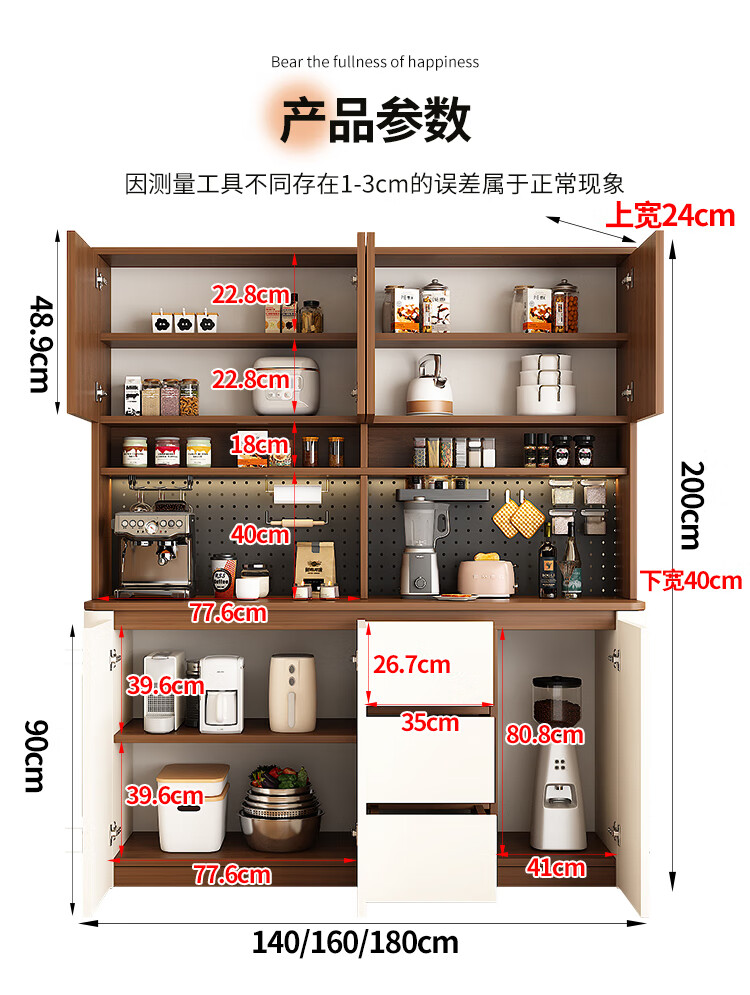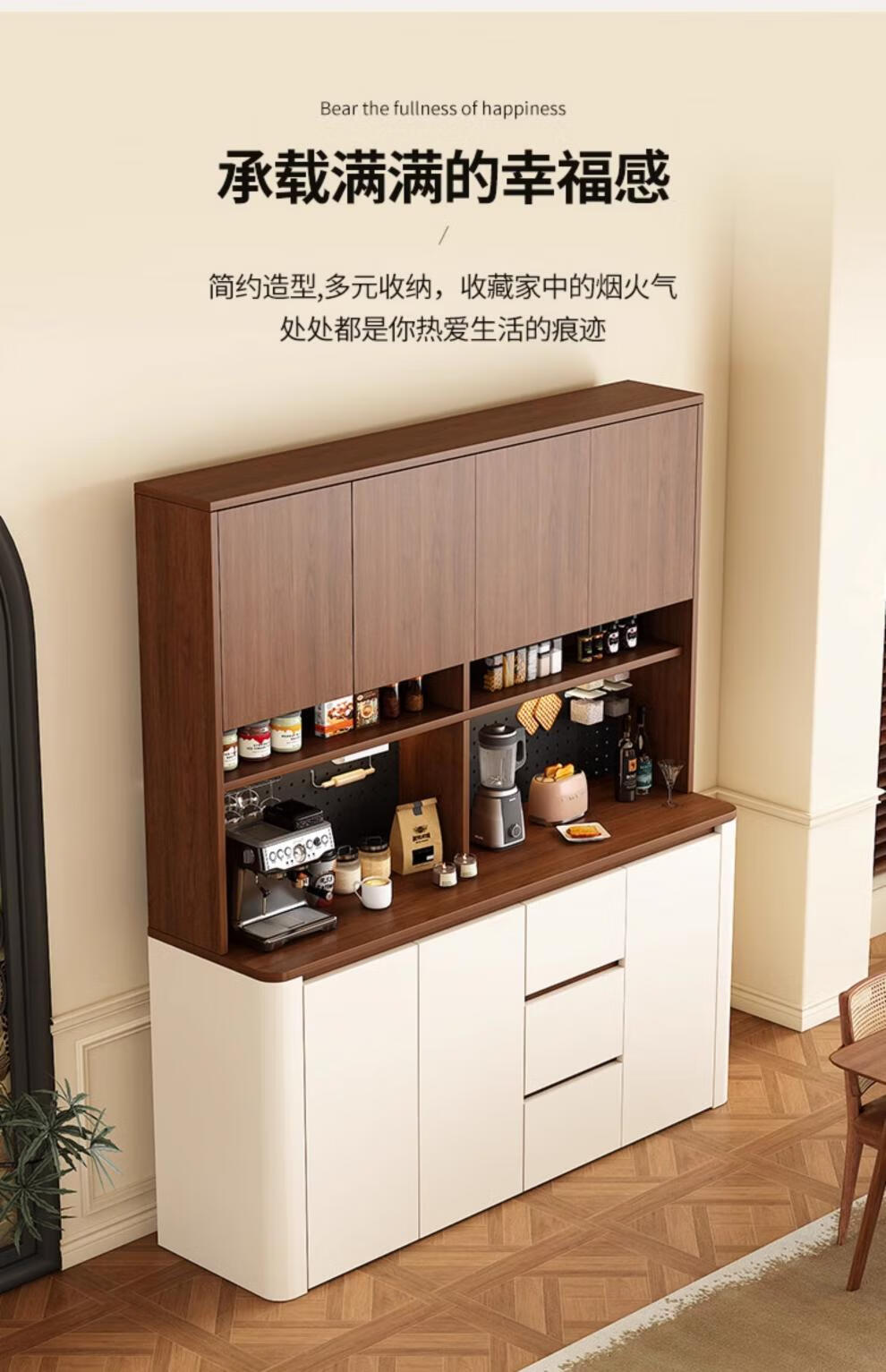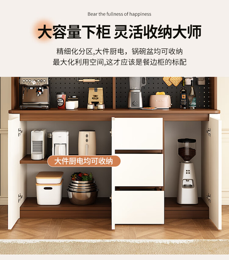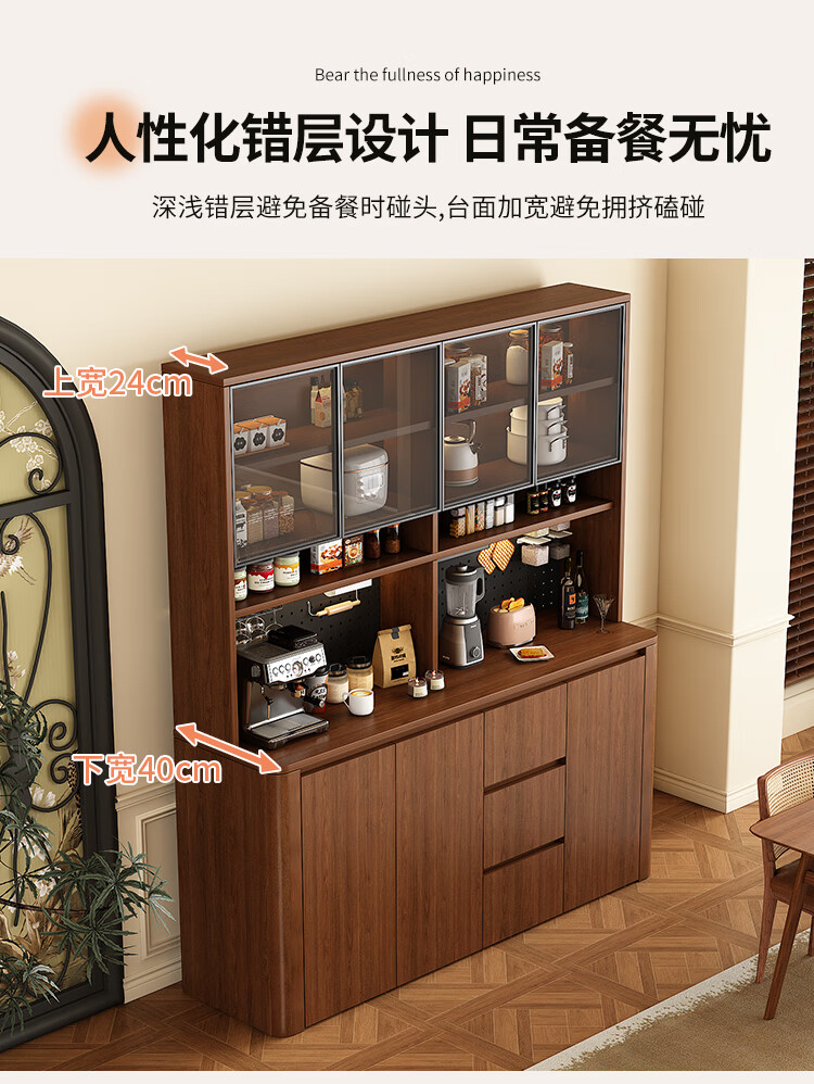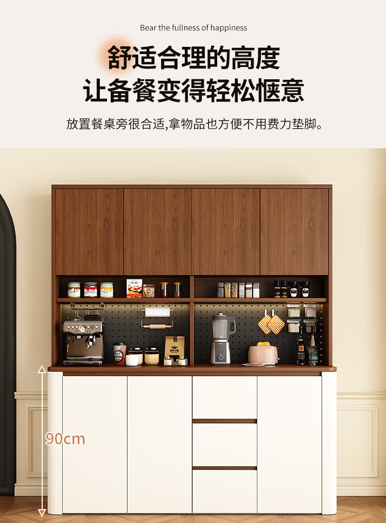 Tulio second-hand dining cabinet and wine cabinet storage rack multi-functional hole board against the wall integrated living room home storage kitchen integrated cabinet 80*40*200 walnut cream color high style