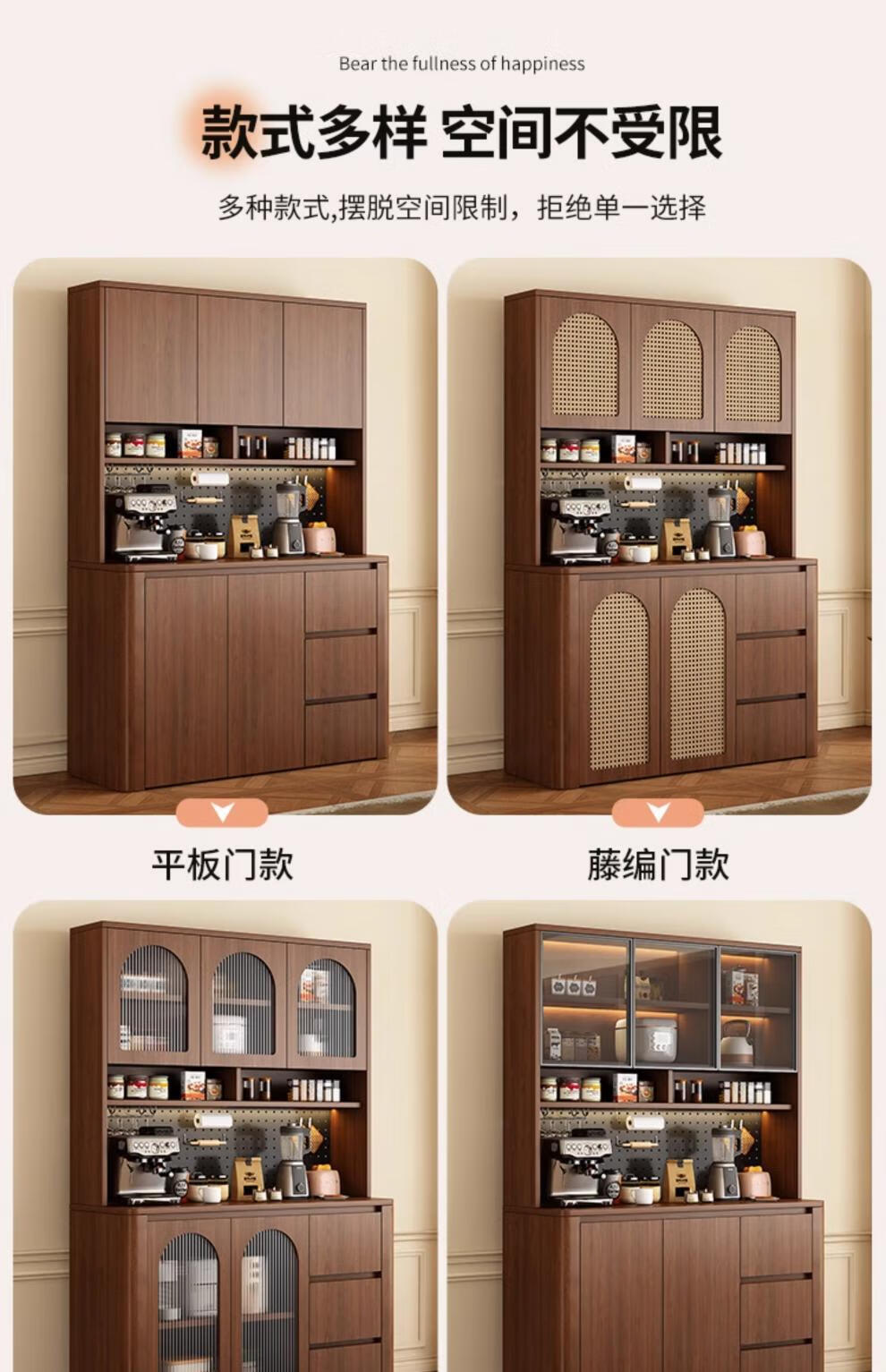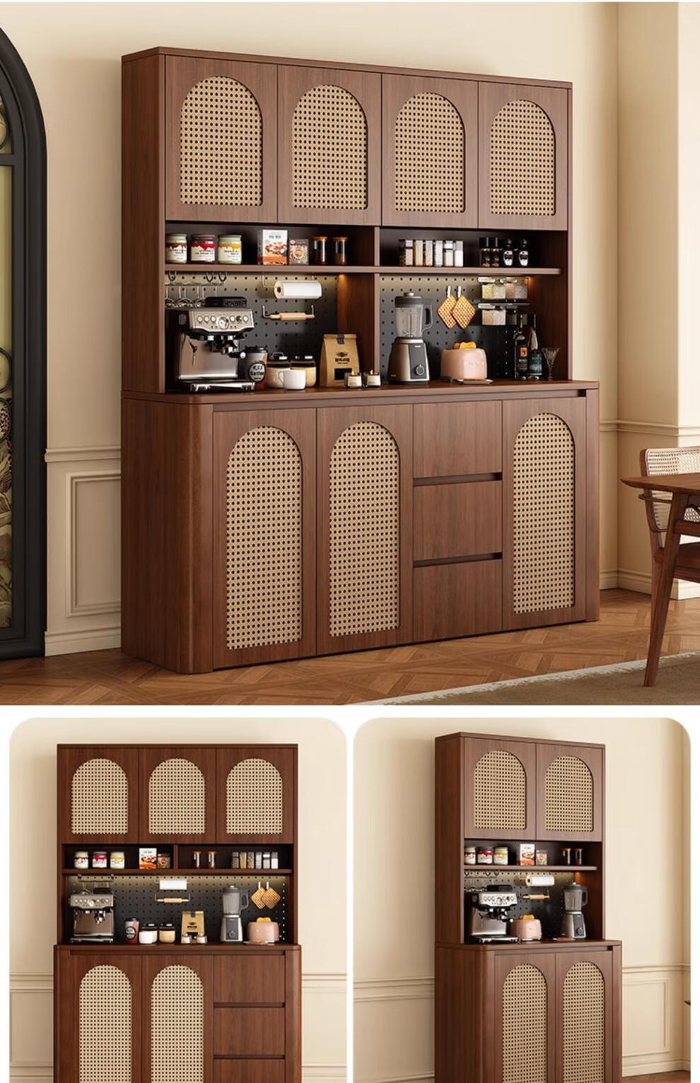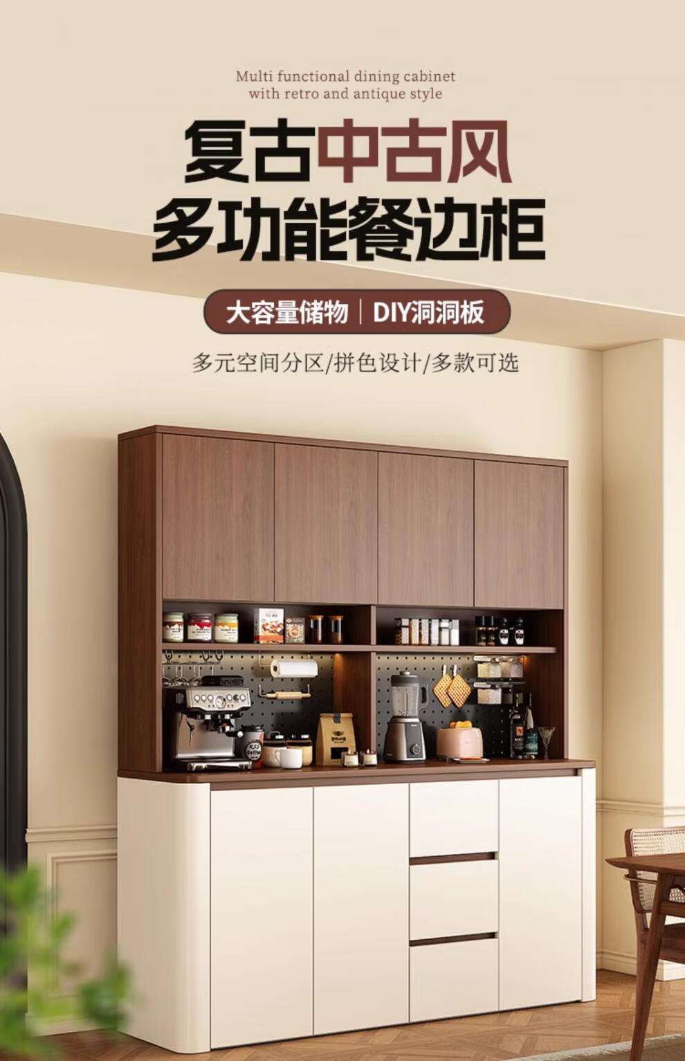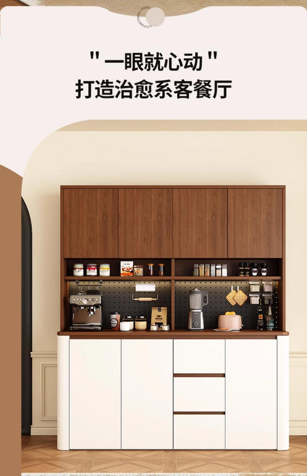 Tulio second-hand dining cabinet and wine cabinet storage rack multi-functional hole board against the wall integrated living room home storage kitchen integrated cabinet 80*40*200 walnut cream color high style