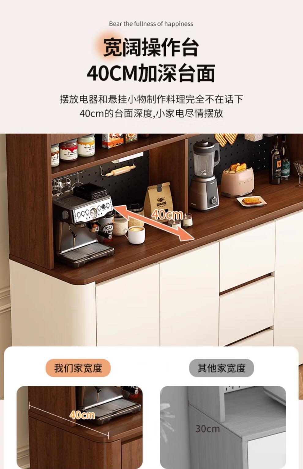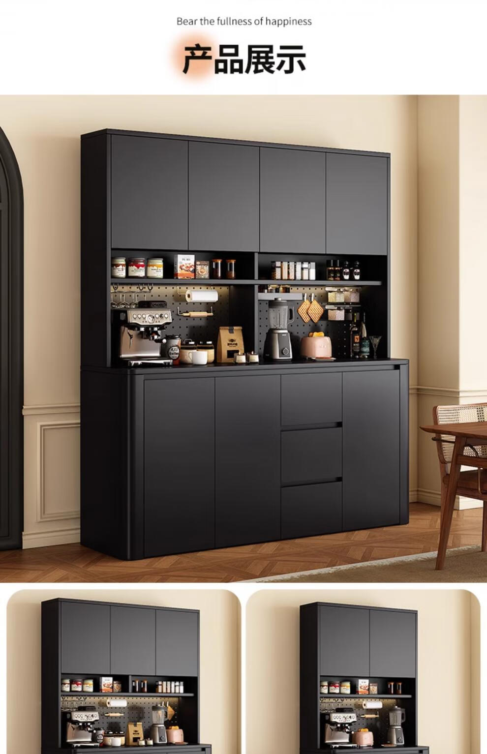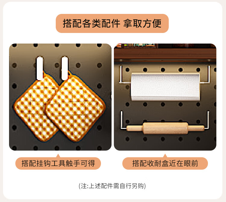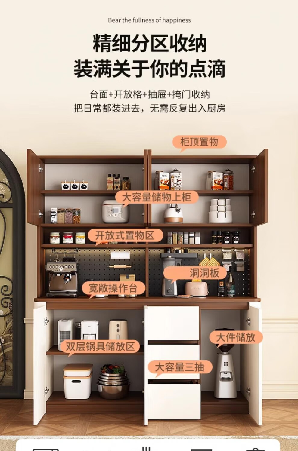Tulio second-hand dining cabinet and wine cabinet storage rack multi-functional hole board against the wall integrated living room home storage kitchen integrated cabinet 80*40*200 walnut cream color high style