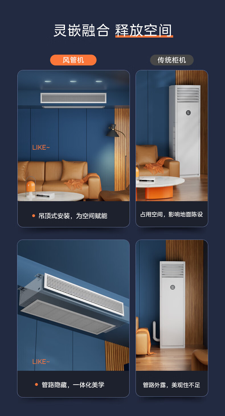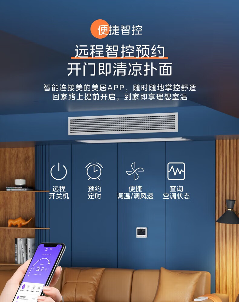 Midea cool air duct machine 1.5P 2 HP 3 HP variable frequency heating and cooling one-to-one living room central air conditioner self-cleaning DC frequency conversion tail cargo machine 2 HP variable frequency heating and cooling KFR-51T2W/BD-CF (1) does not include installation (excluding installation auxiliary materials)