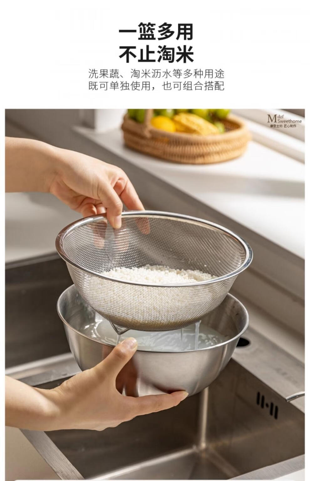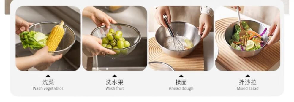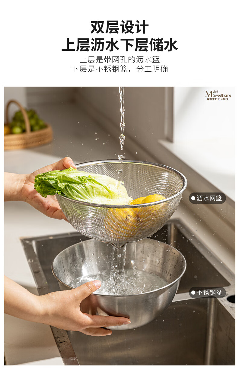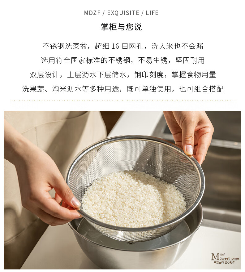 He Jiagong's vegetable sink, drain basket, stainless steel rice washing sieve, rice cleaning basin, kitchen fruit filter, rice cleaning artifact, drain basket + stainless steel basin (13cm), washable blue