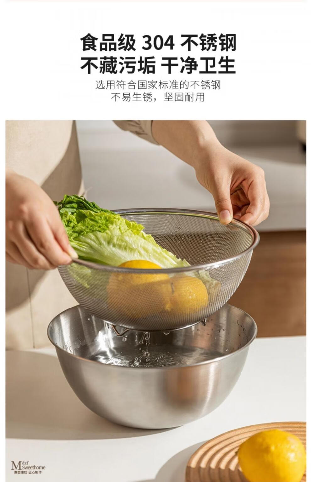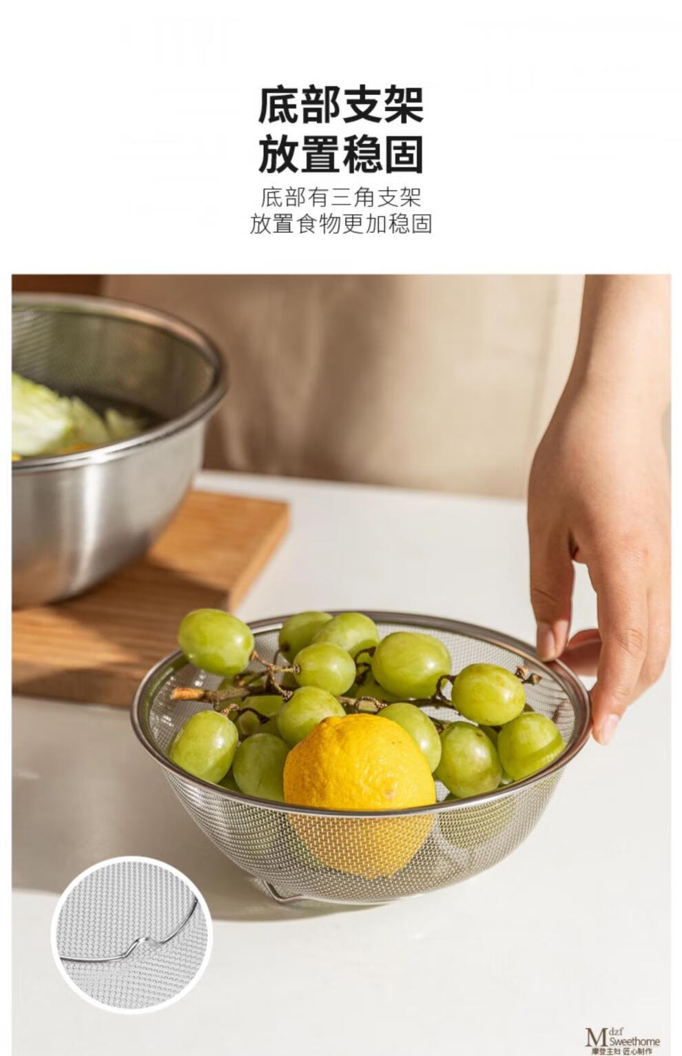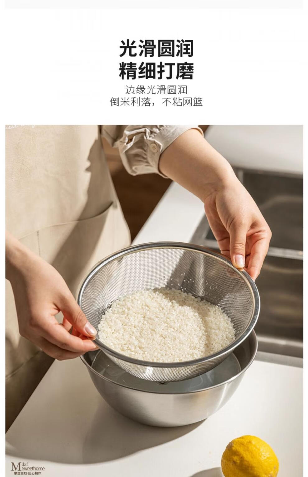 He Jiagong's vegetable sink, drain basket, stainless steel rice washing sieve, rice cleaning basin, kitchen fruit filter, rice cleaning artifact, drain basket + stainless steel basin (13cm), washable blue