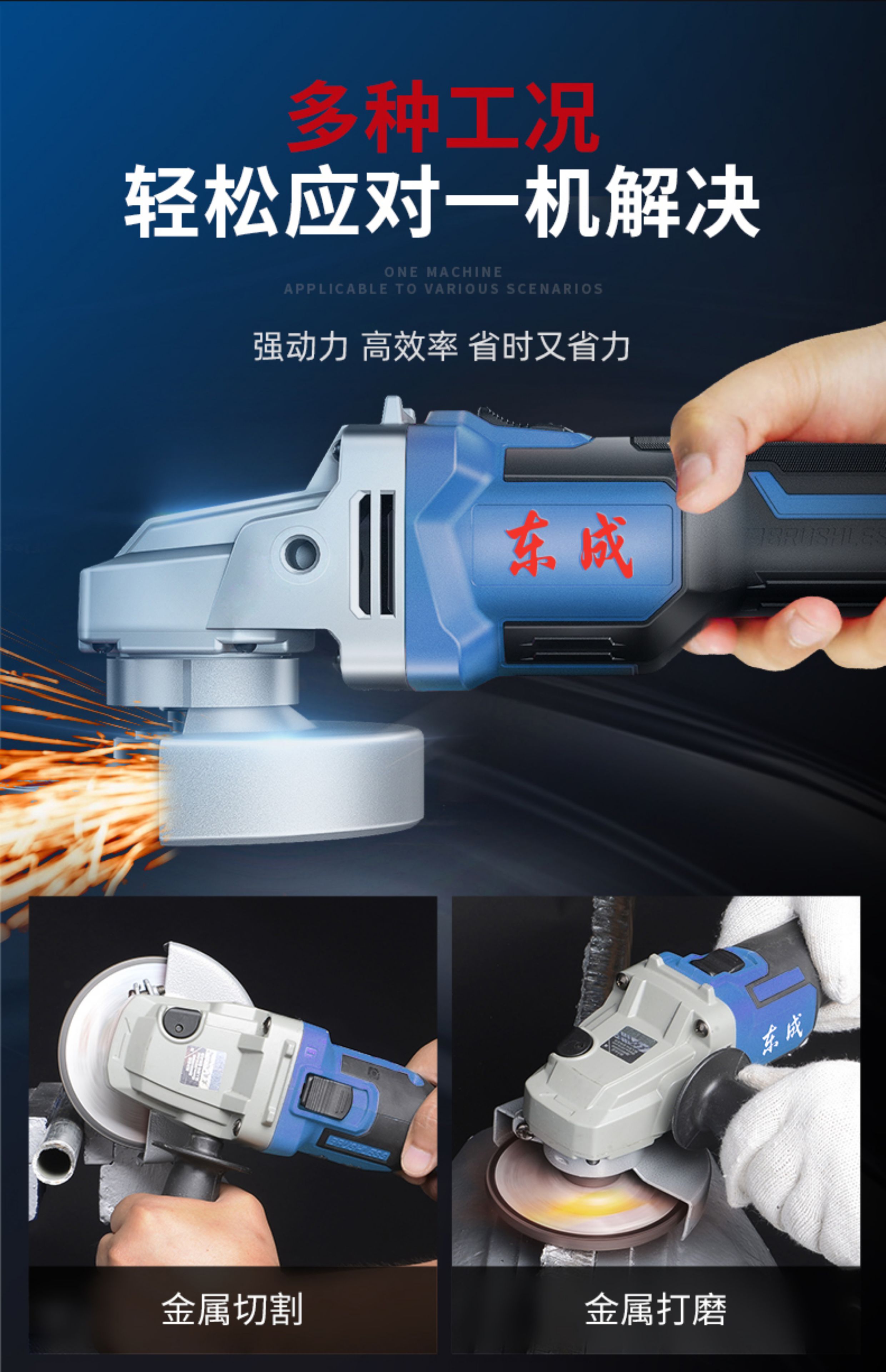 Dongcheng Brushless Lithium Electric Angle Grinder Rechargeable Electric Hand Grinder Cutting Polishing Wireless Polishing Dongcheng Angle Grinder 08-100 Dual Battery 6.0Ah Plastic Box Package