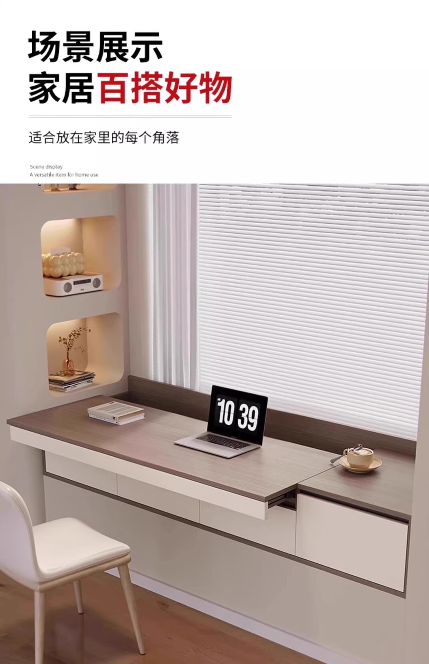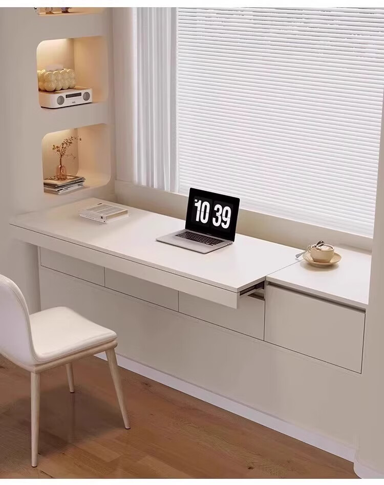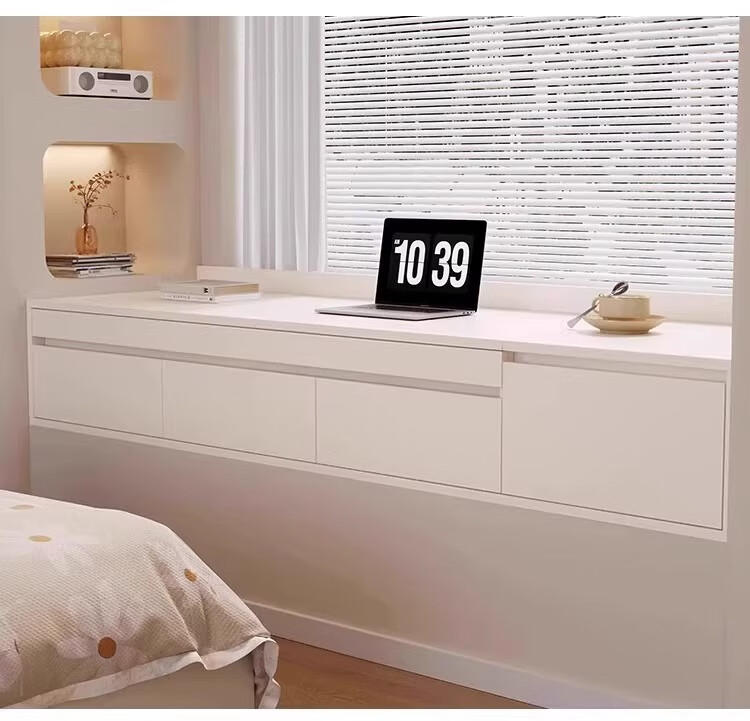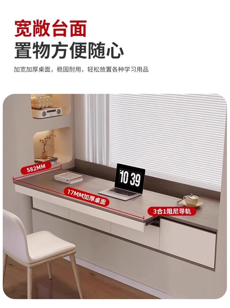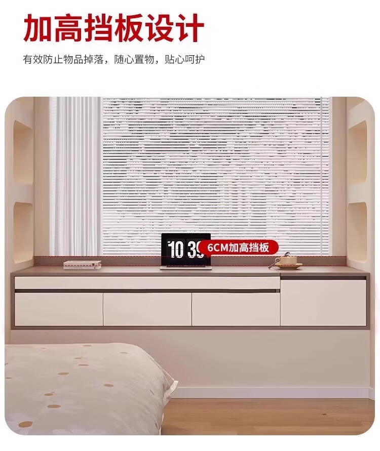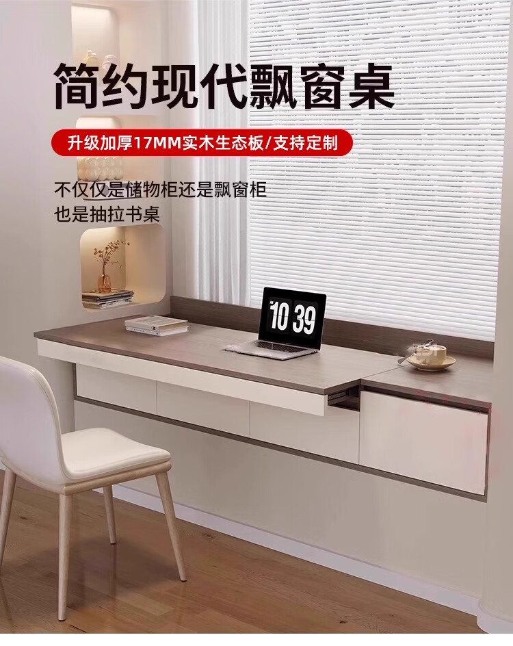 Mengphantes solid wood bay window desk cabinet retractable computer desk pull-out study desk window sill cabinet balcony drawer storage cabinet Chinese walnut + cream white desk model-A length 1800*depth 600*height 380mm ENF grade 17mm solid wood heavy-duty 53 load-bearing track