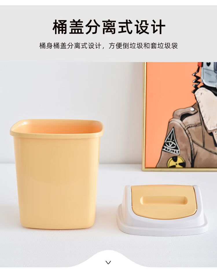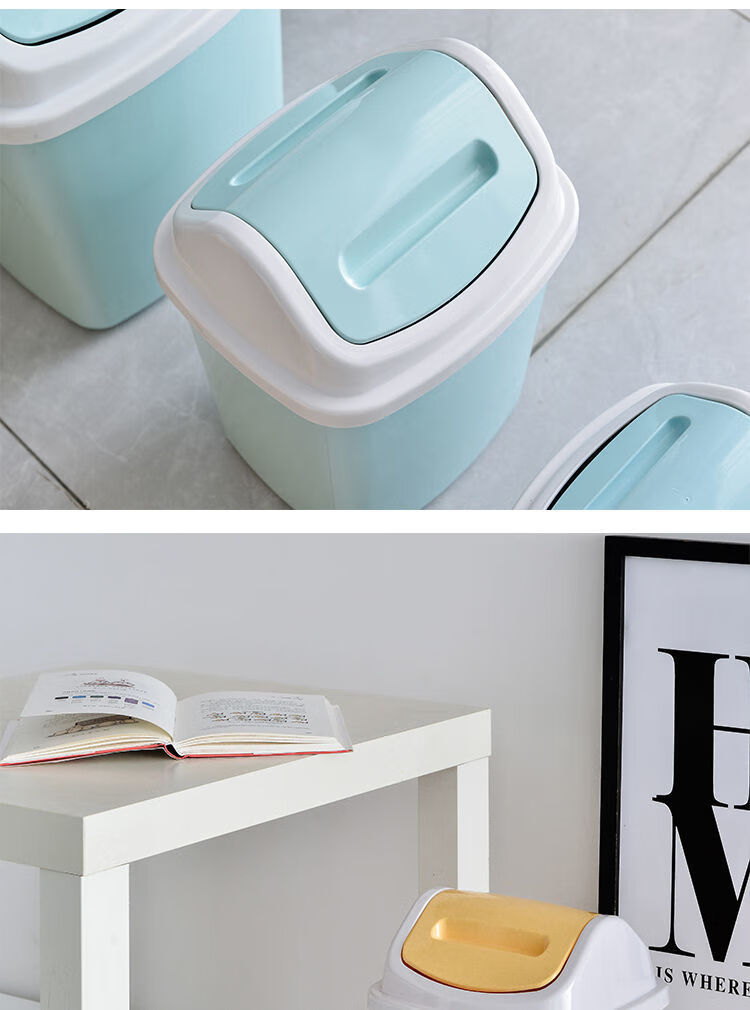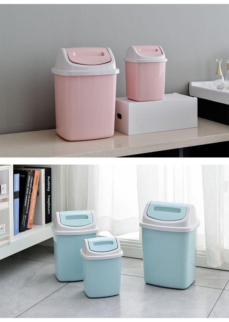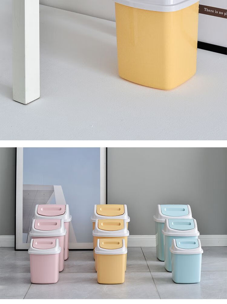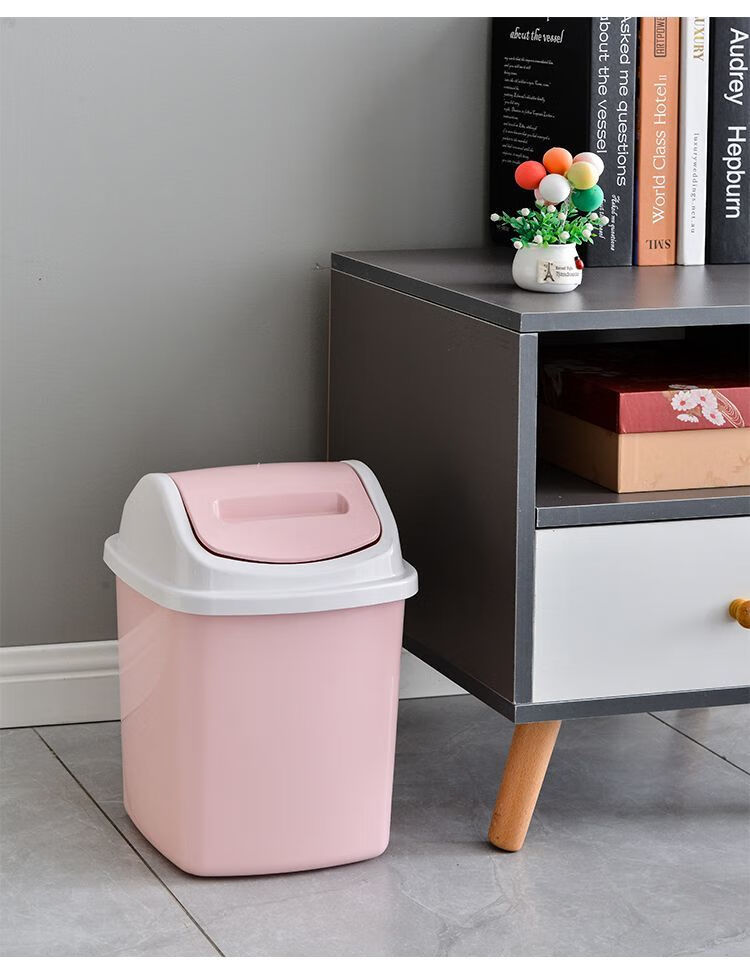 Mo Peng Rectangular Large Trash Can with Cover Bathroom Covered Narrow Style Toilet Flip Cover Crack Narrow Living Room Swing Cover Type Home Medium Nordic Powder (4.8L)