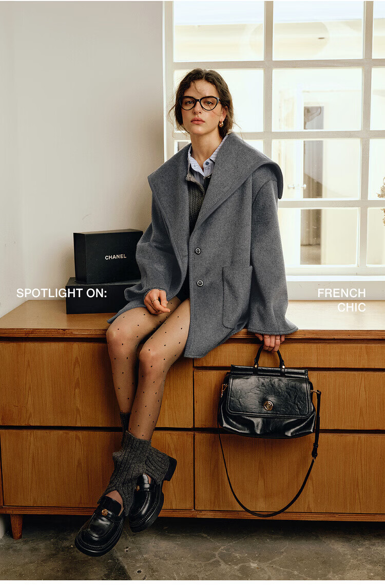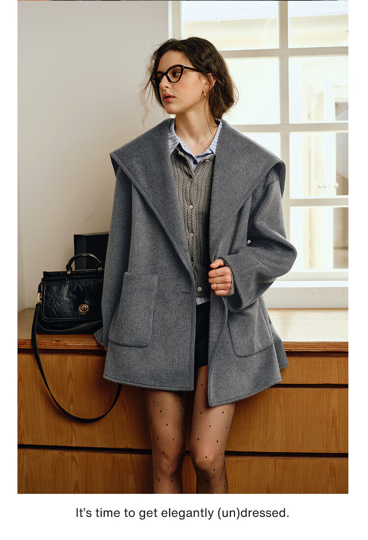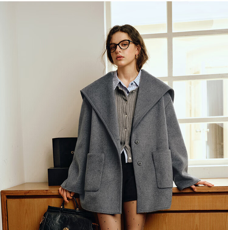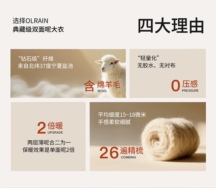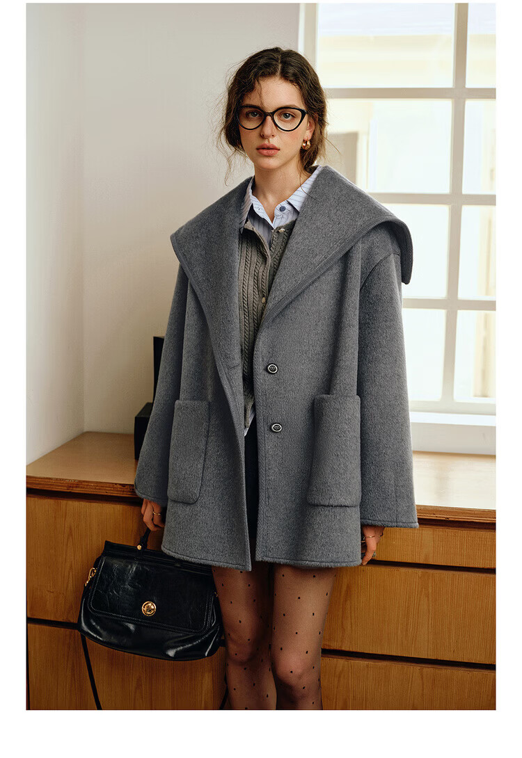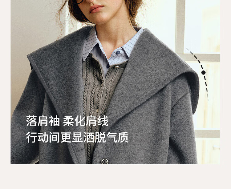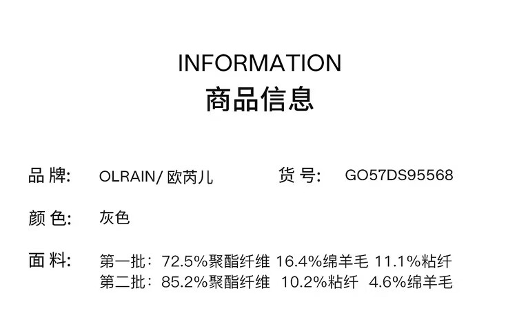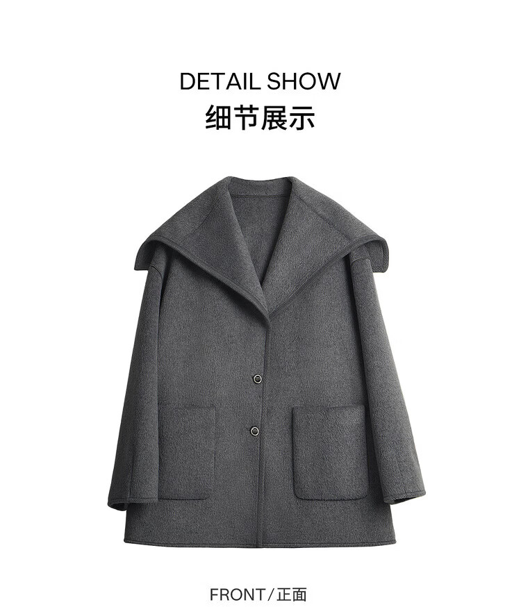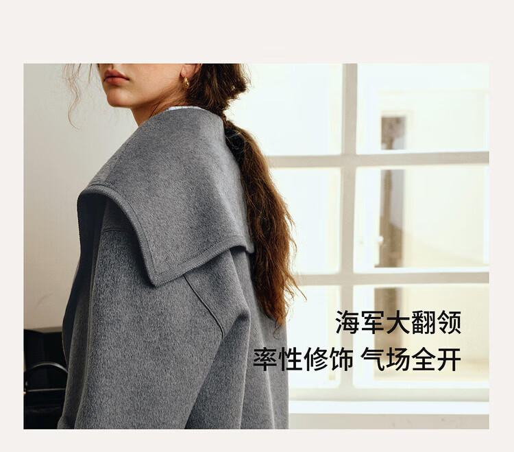 Olrain Ou Ruier temperament luxury warm woolen coat winter women's mid-length woolen double-sided woolen top warm clothes gray M