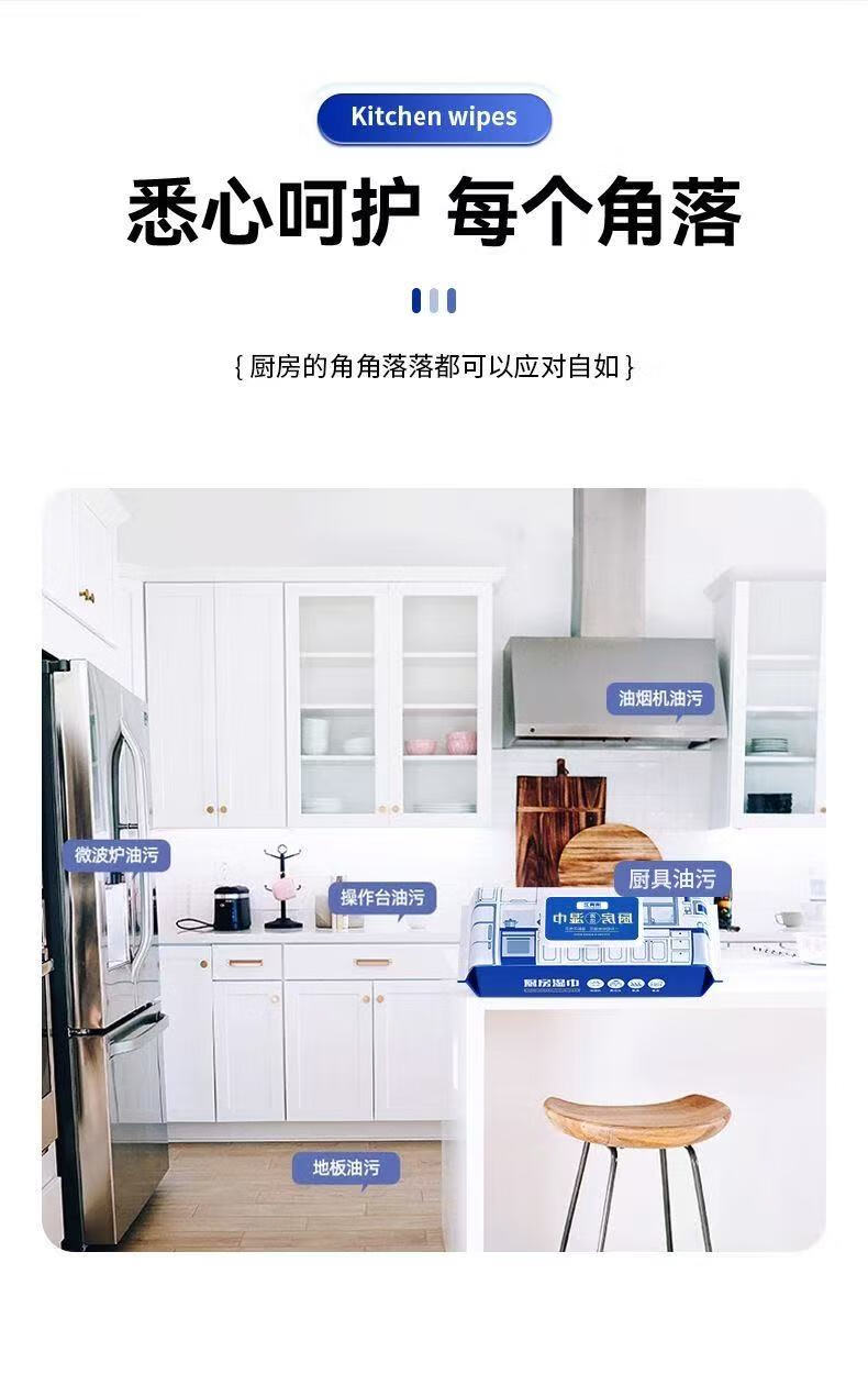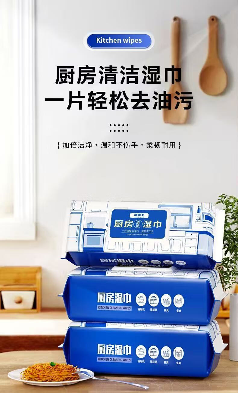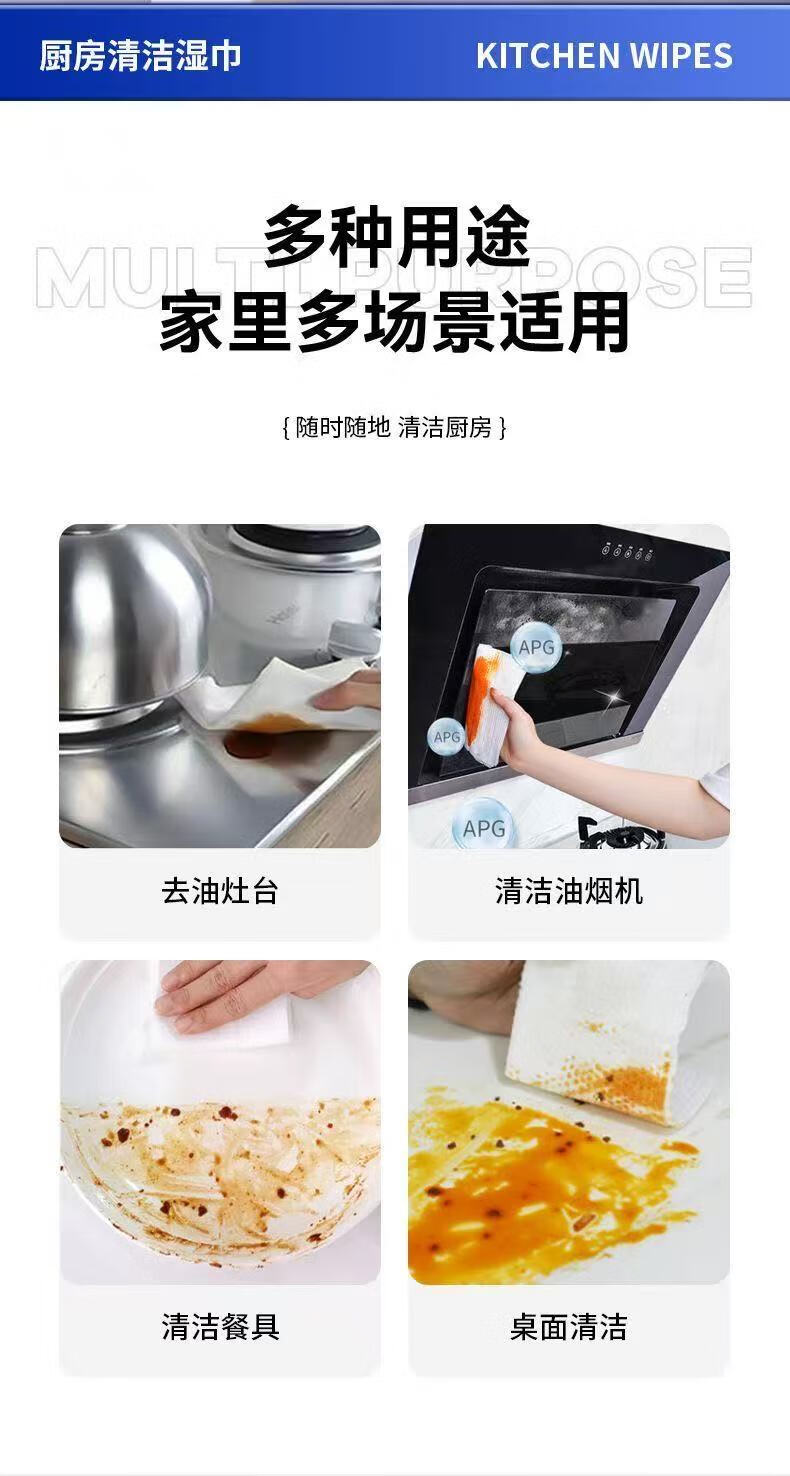 Cost-effective kitchen wipes to remove oil and decontamination range hood cleaning powerful degreasing wet wipes enlarged and thickened 1 layer 72 pumps * 10 packs