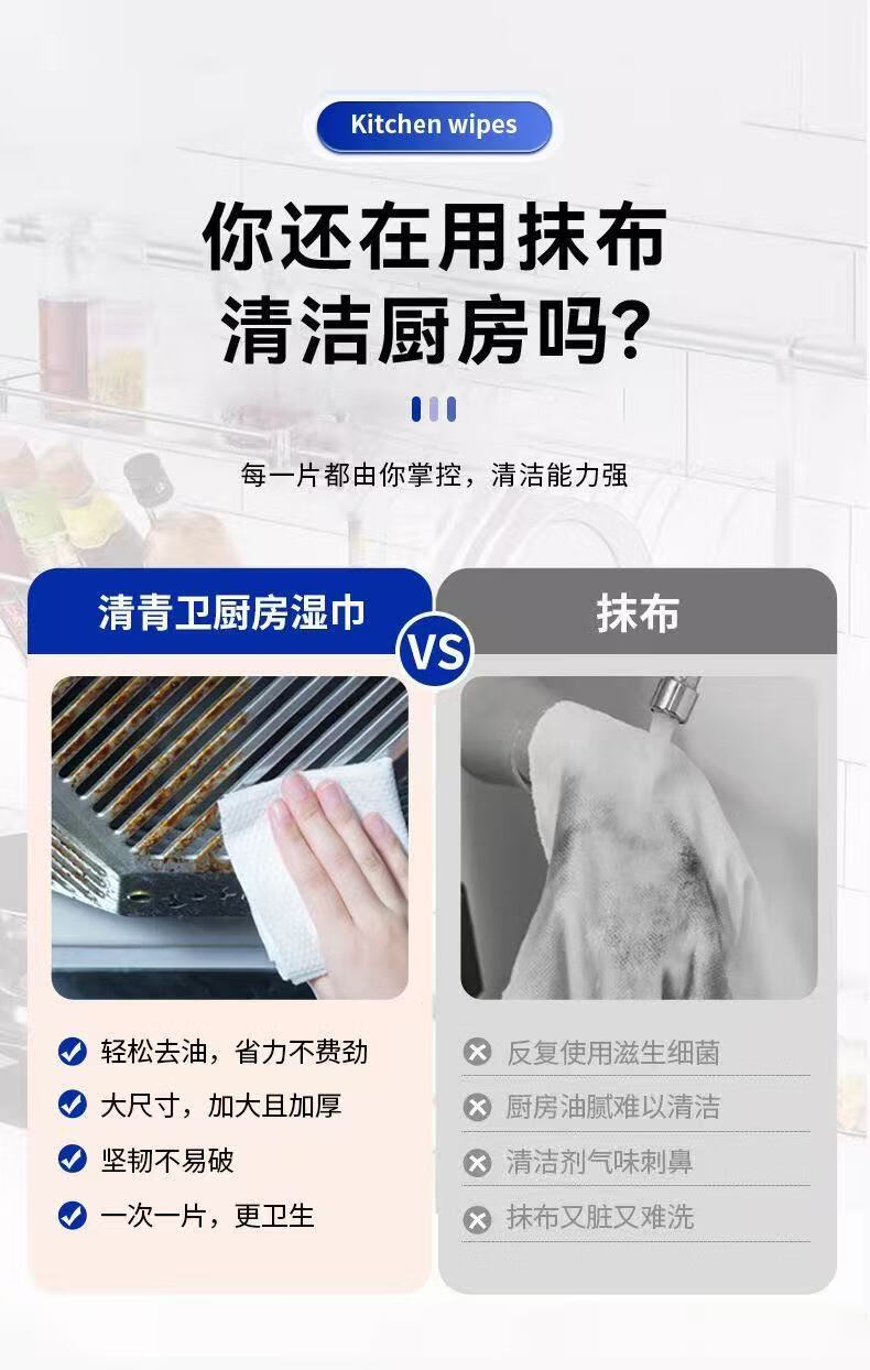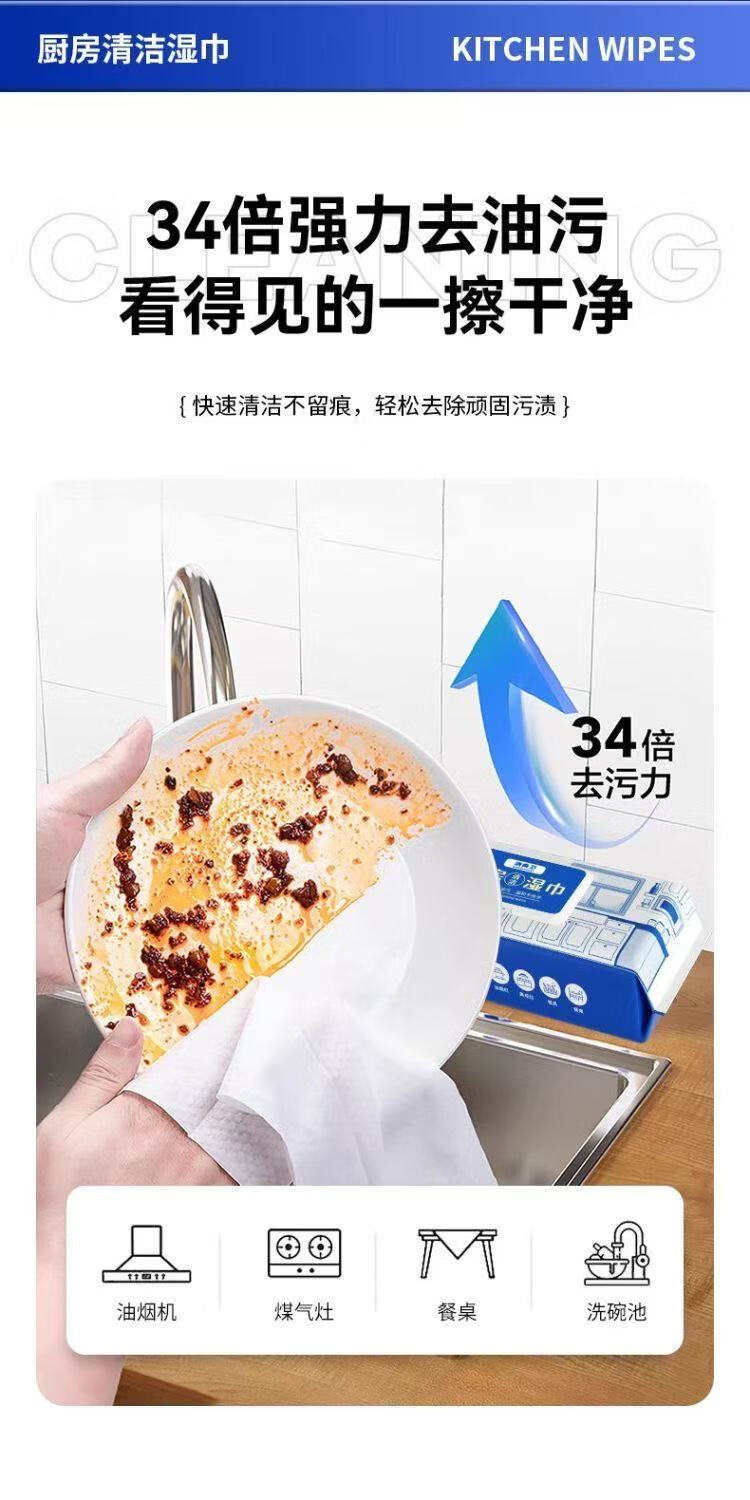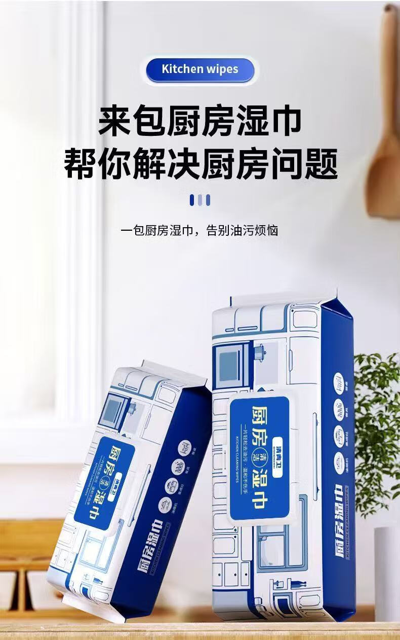 Cost-effective kitchen wipes to remove oil and decontamination range hood cleaning powerful degreasing wet wipes enlarged and thickened 1 layer 72 pumps * 10 packs