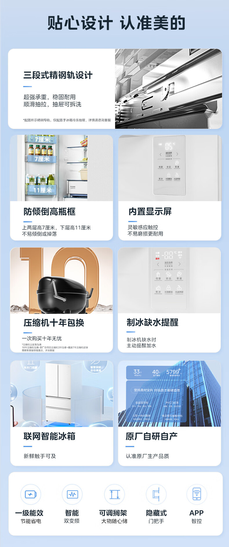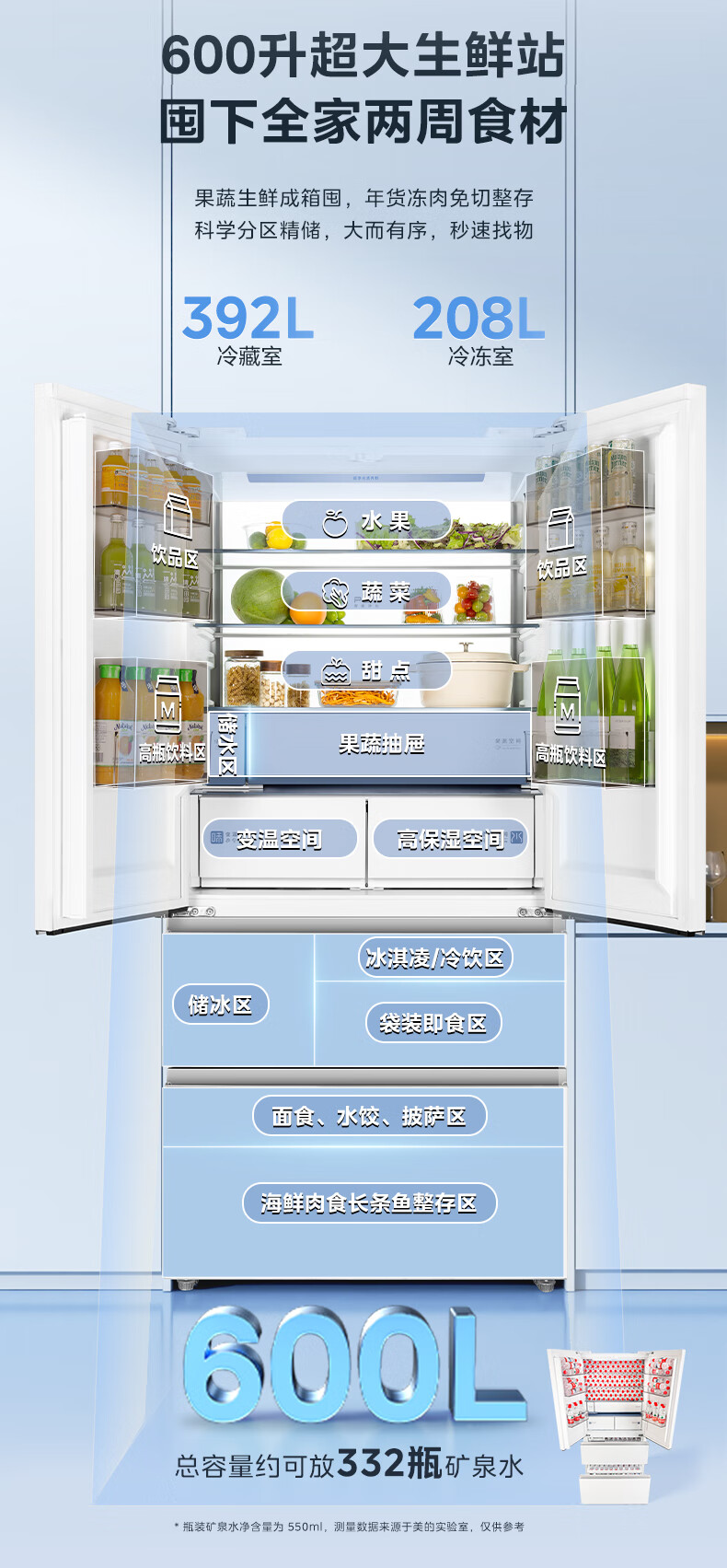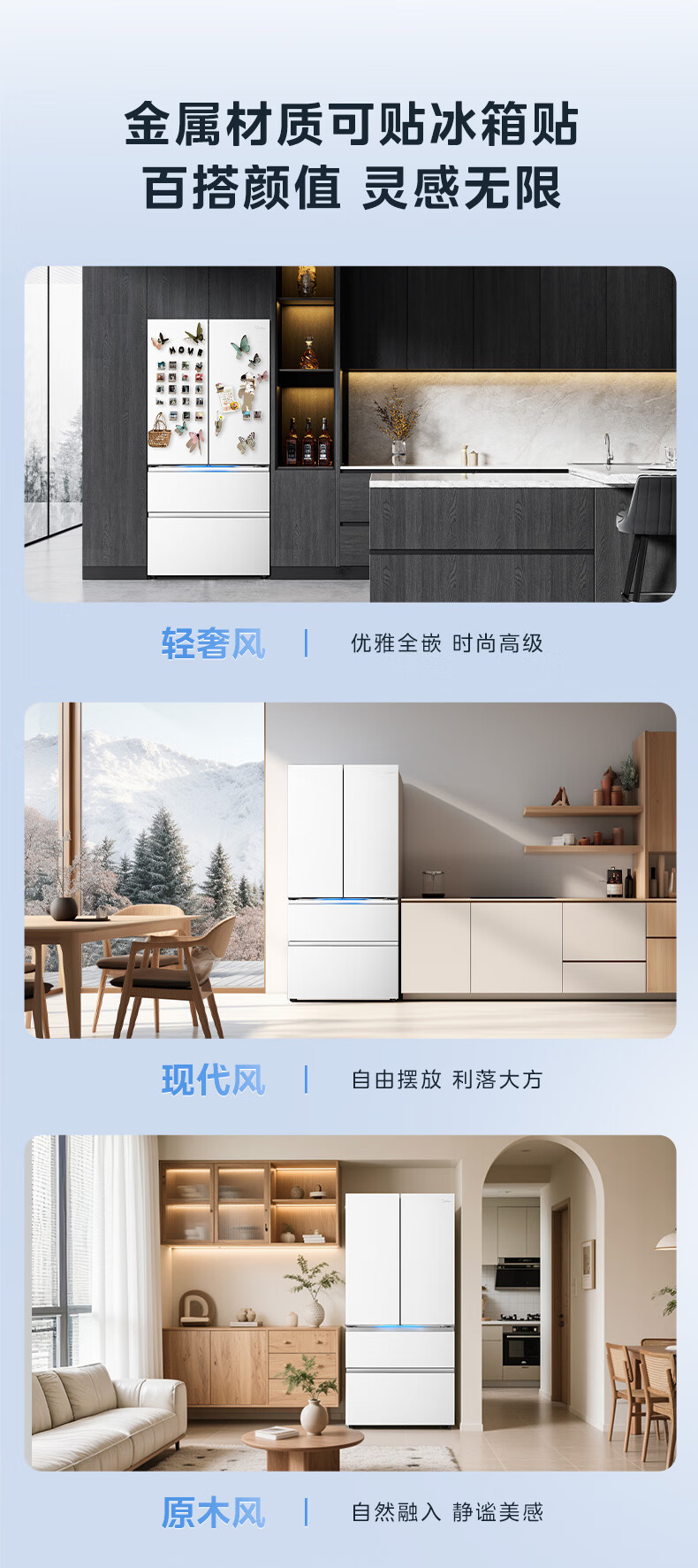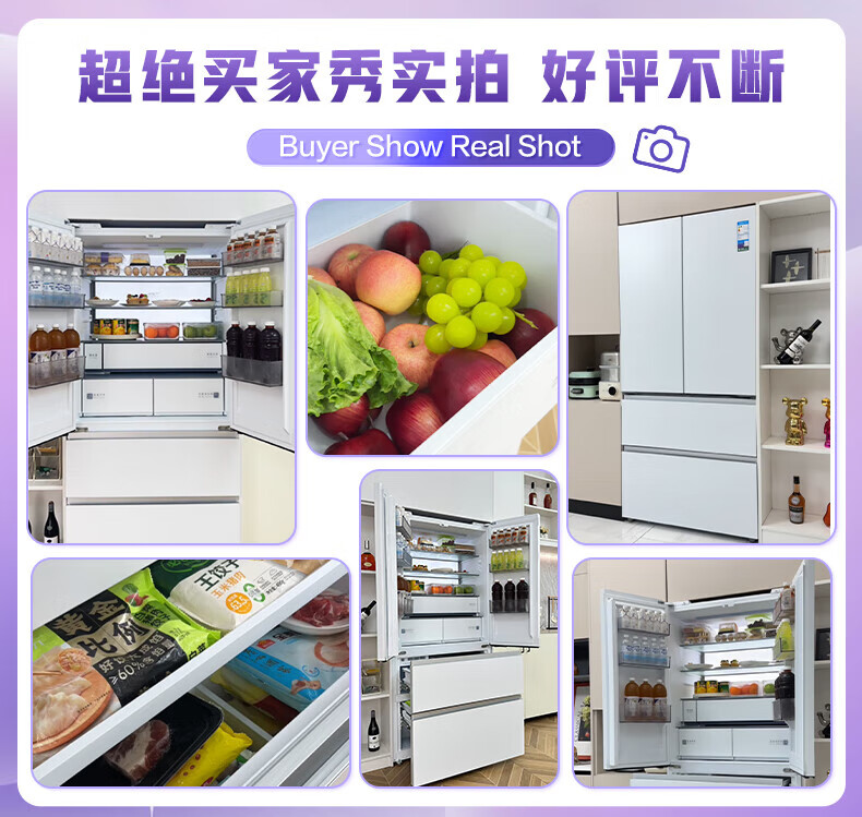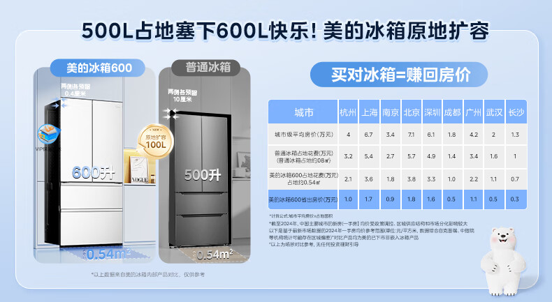 Midea Xiongdundun Pro600L French style multi-door large capacity ultra-thin zero-embedded dual system dual cycle frost-free freshness first level energy efficiency national subsidy (supports Hongmeng Zhilian) BCD-600WUFIPZM (E) Haibei White
