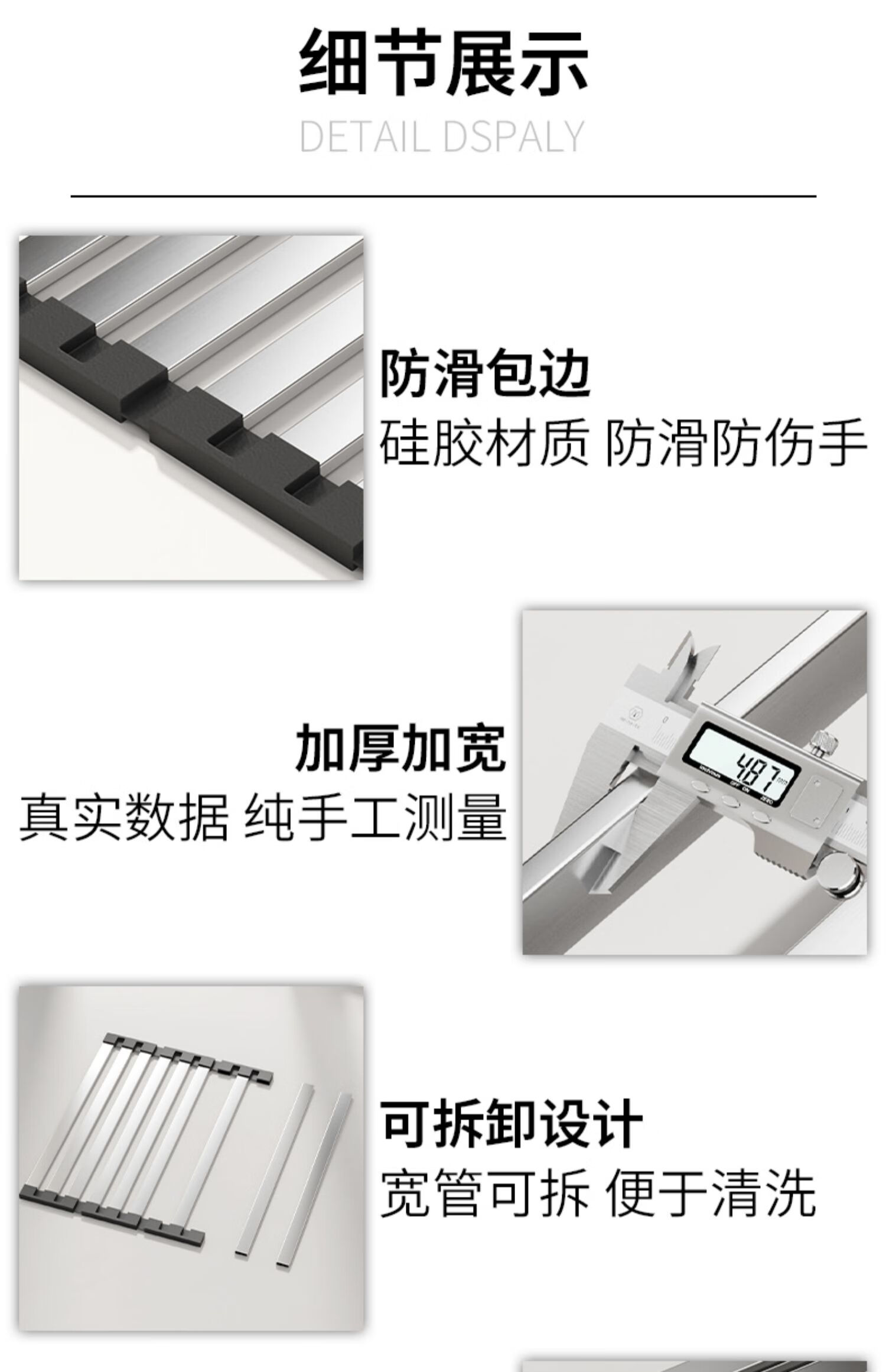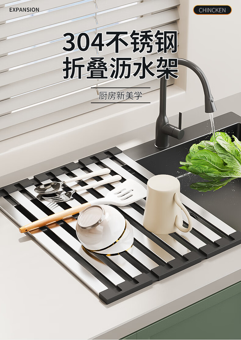 Chuidahuang kitchen sink drain curtain 304 stainless steel foldable storage drain rack pool roller curtain storage rack B4 304 stainless steel three-fold 50CM