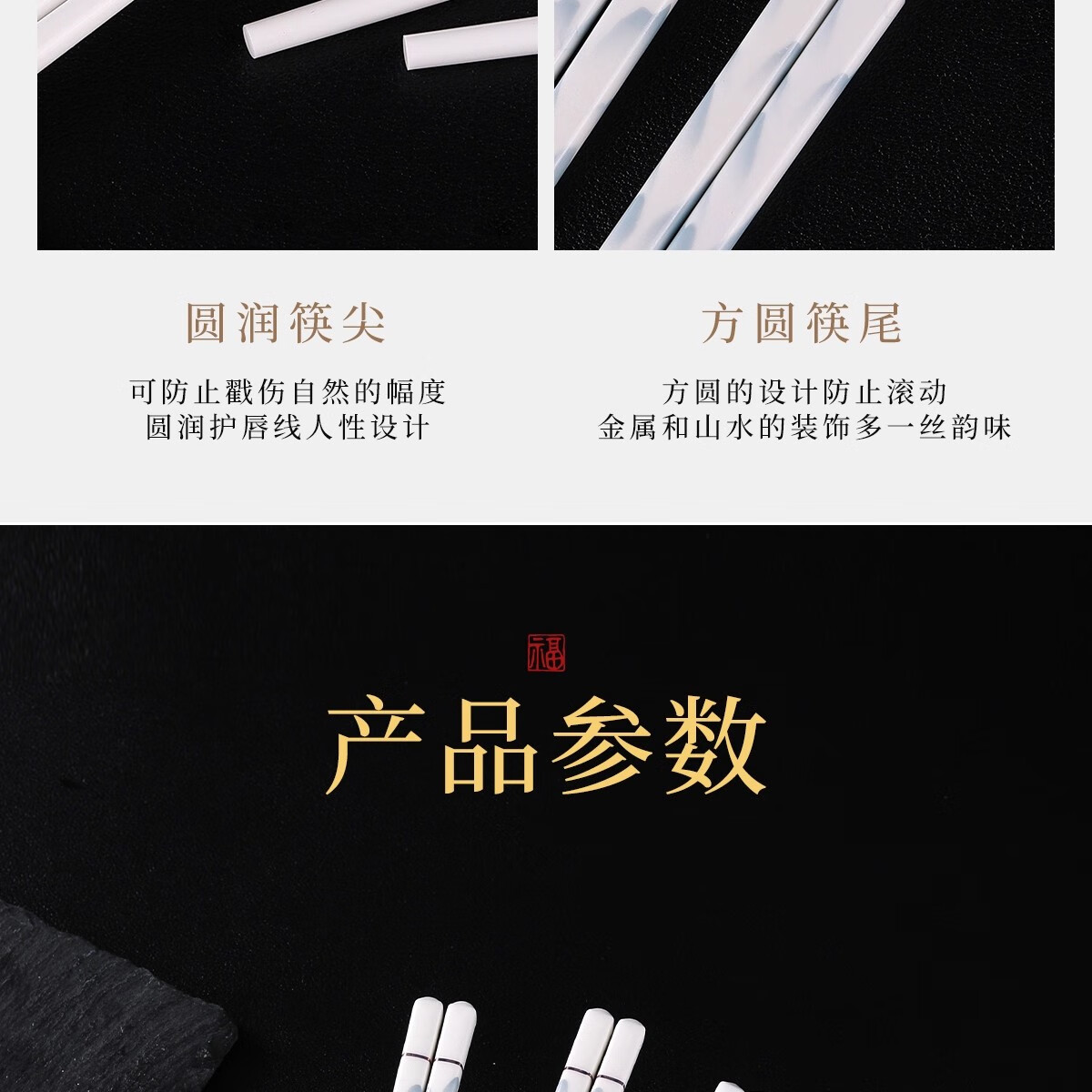 Ceramic chopsticks Newbies enjoy 0.01 Jingdezhen household mildew-proof chopsticks antibacterial high-grade 10 pairs received 17.8 5 pairs (photo quantity 2 - received 10 pairs) Qianlijiangshan