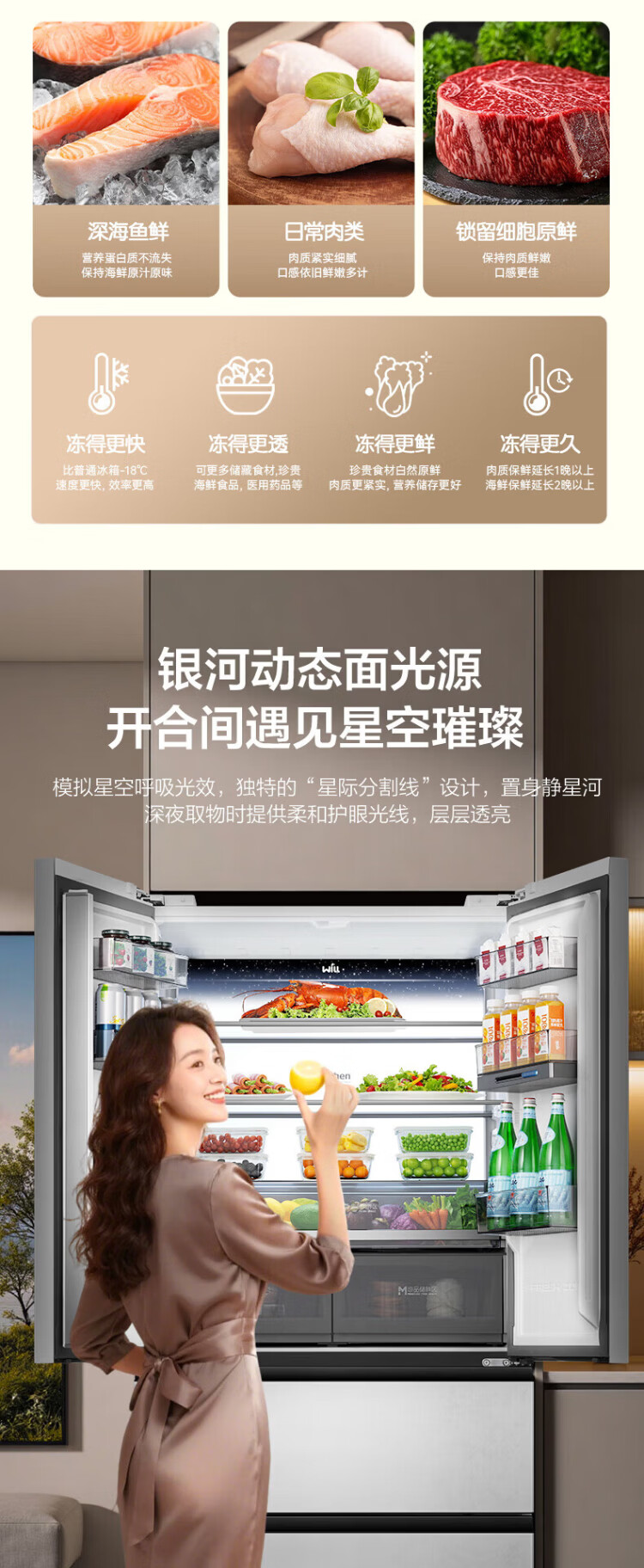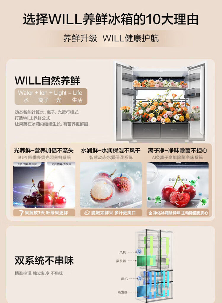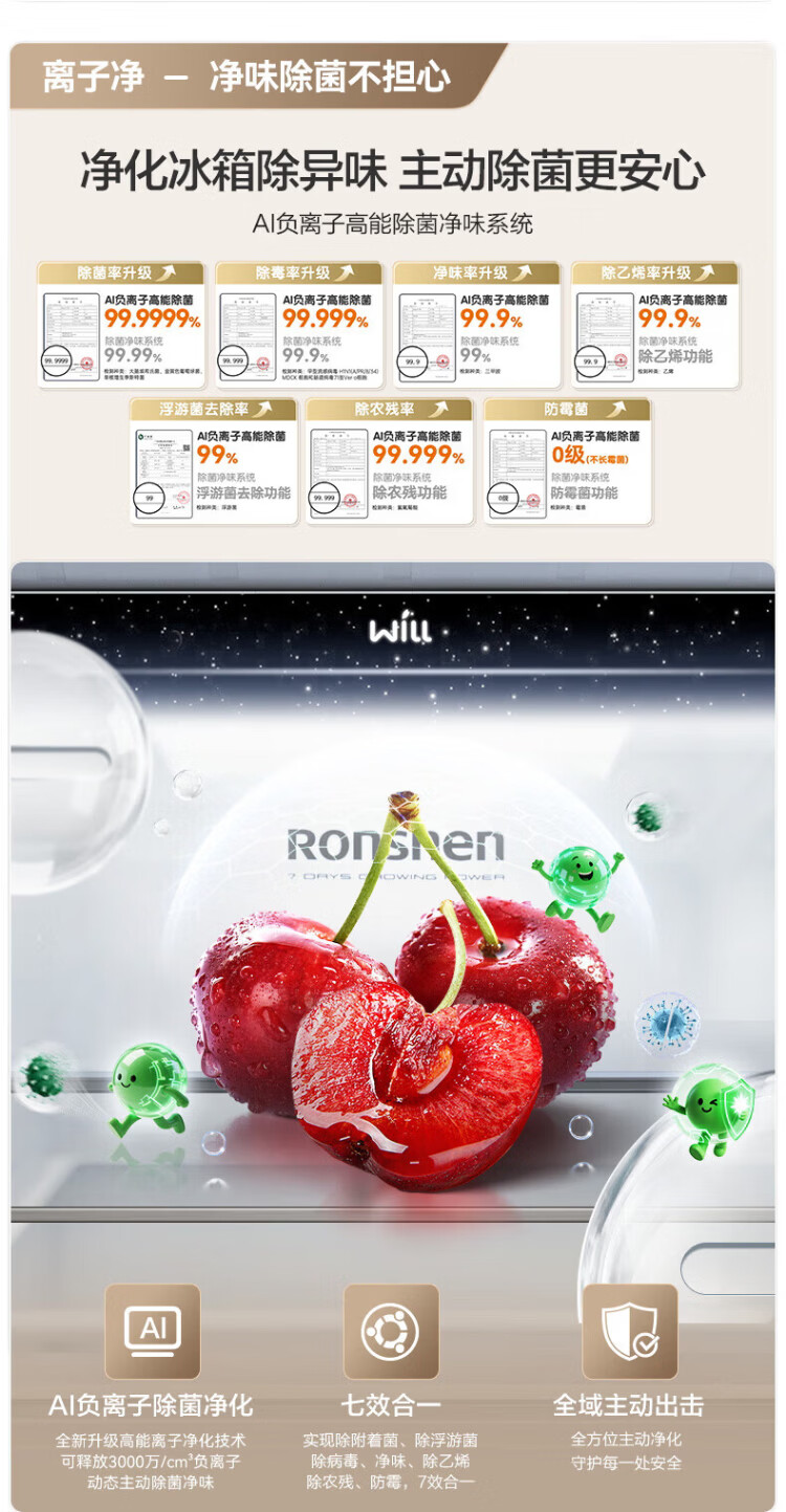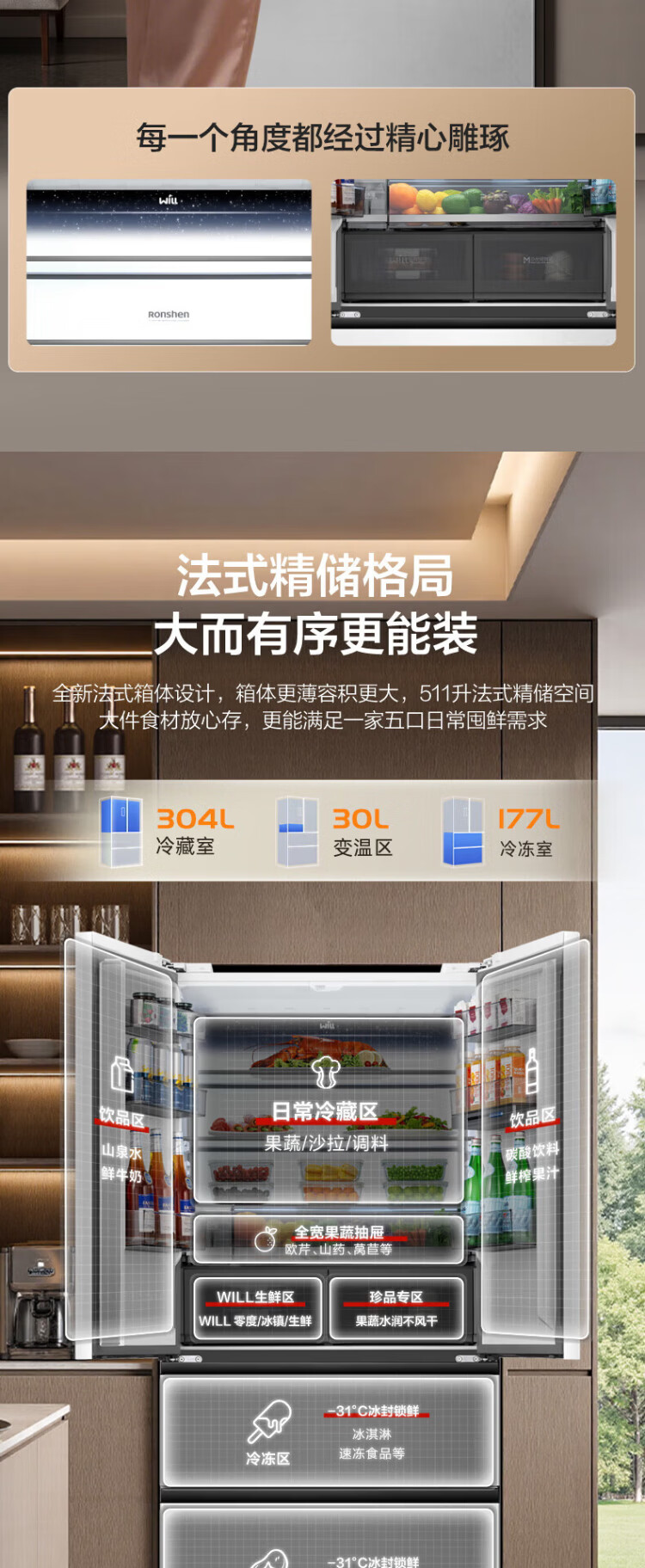 Rongsheng World Cup customized model 511WILL Fresh Dual System French multi-door four-door ultra-thin embedded refrigerator home automatic ice making first-class energy efficiency national subsidy BCD-511W60FZNAD