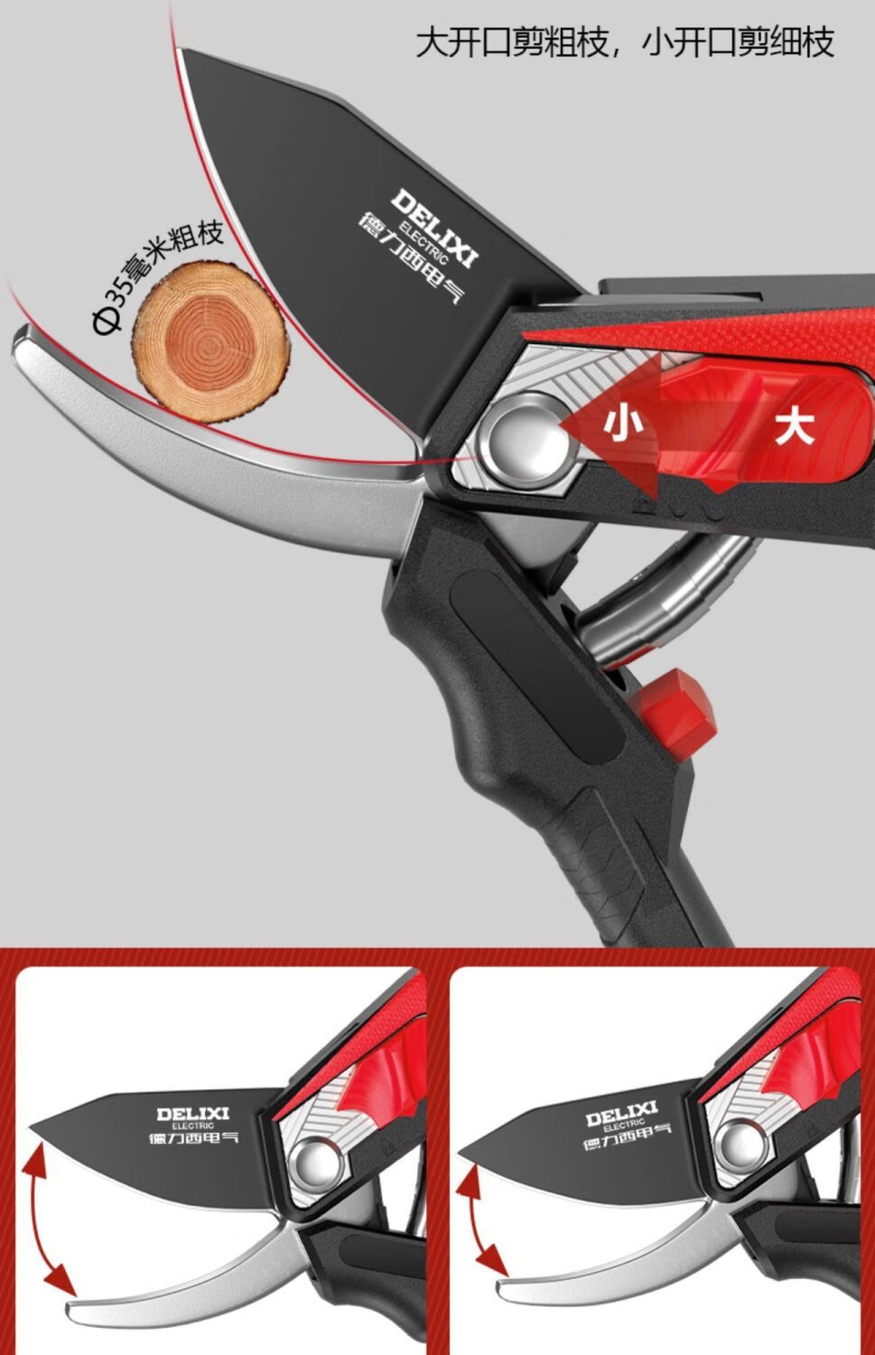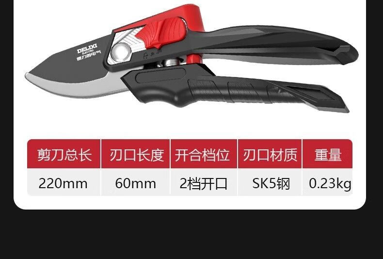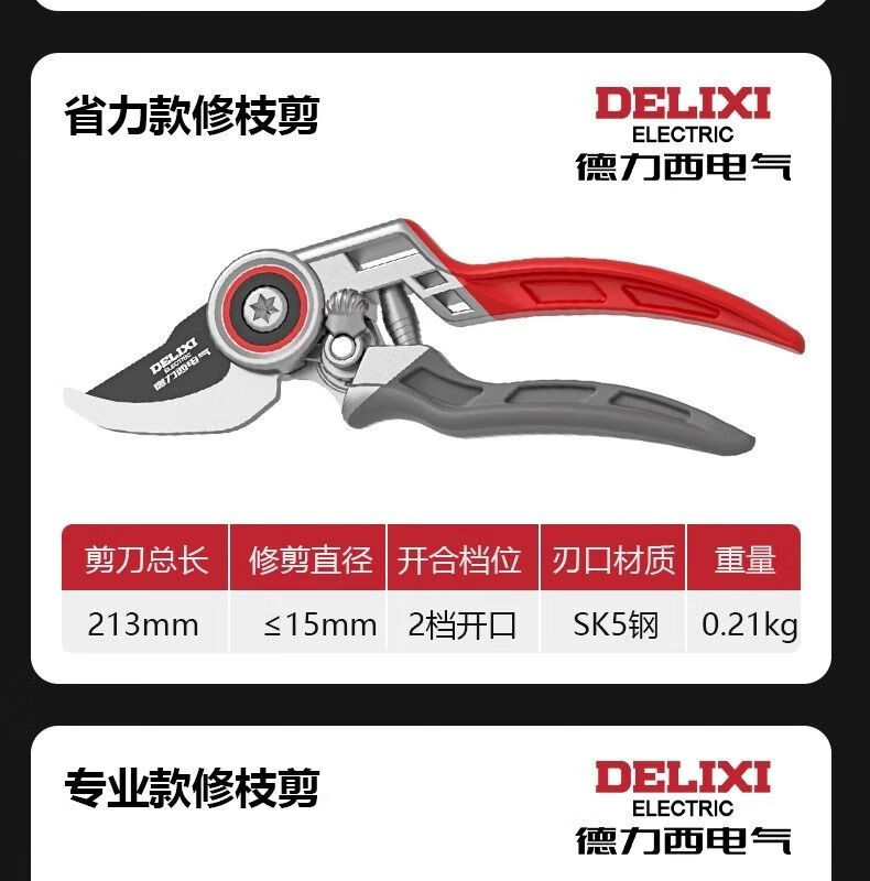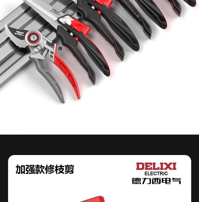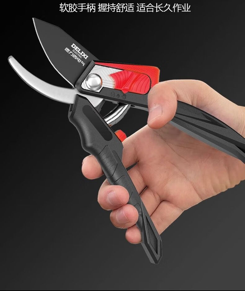 DELIXI ELECTRIC gardening scissors, pruning scissors, fruit tree flower scissors, garden thick branch flower grafting scissors, Red Wolf 8-inch + large folding saw + waist box