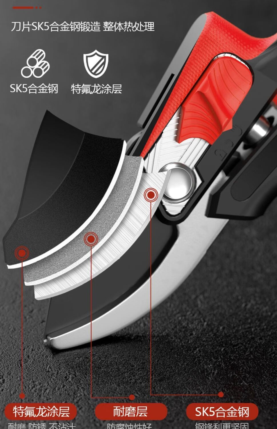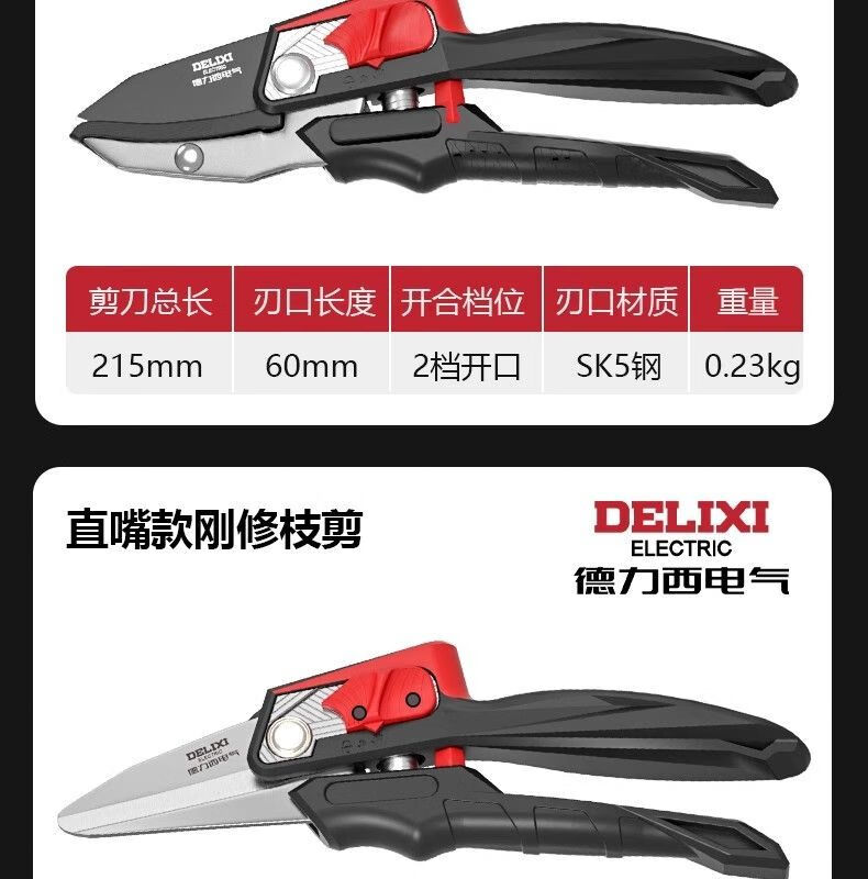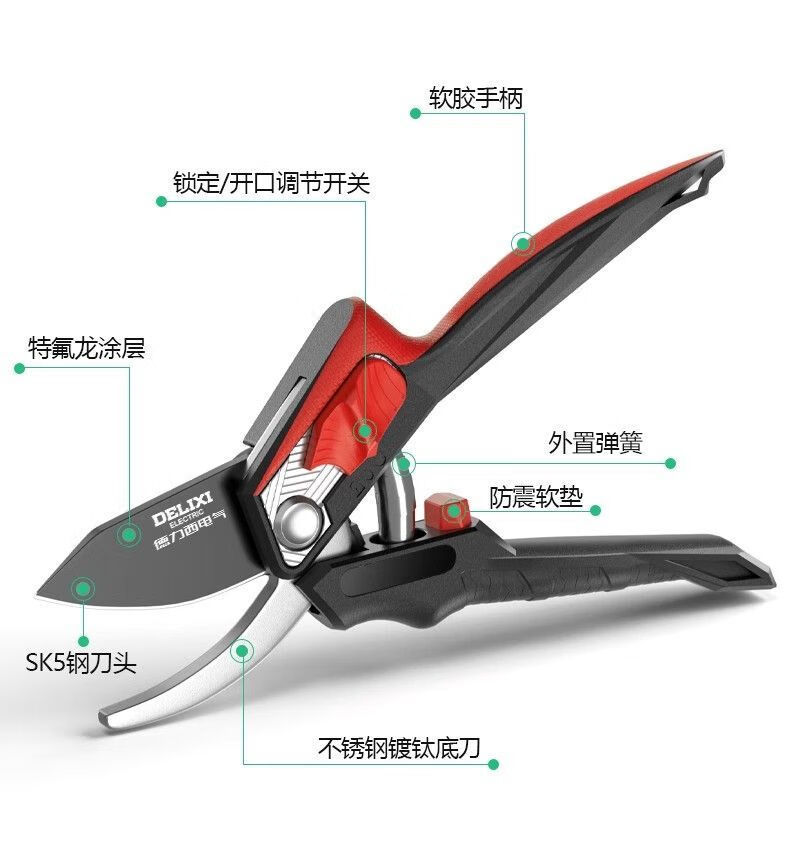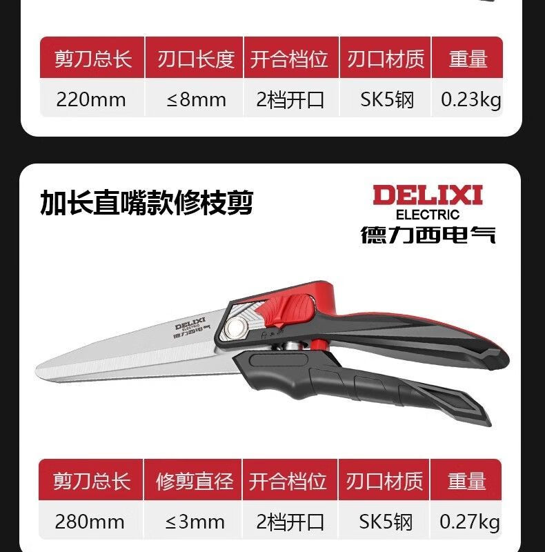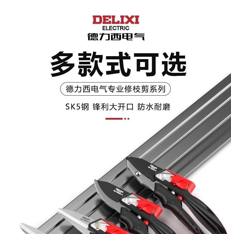 DELIXI ELECTRIC gardening scissors, pruning scissors, fruit tree flower scissors, garden thick branch flower grafting scissors, Red Wolf 8-inch + large folding saw + waist box