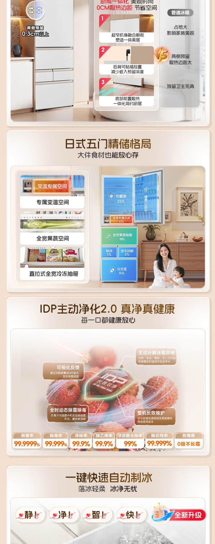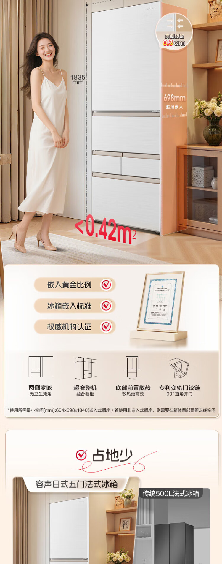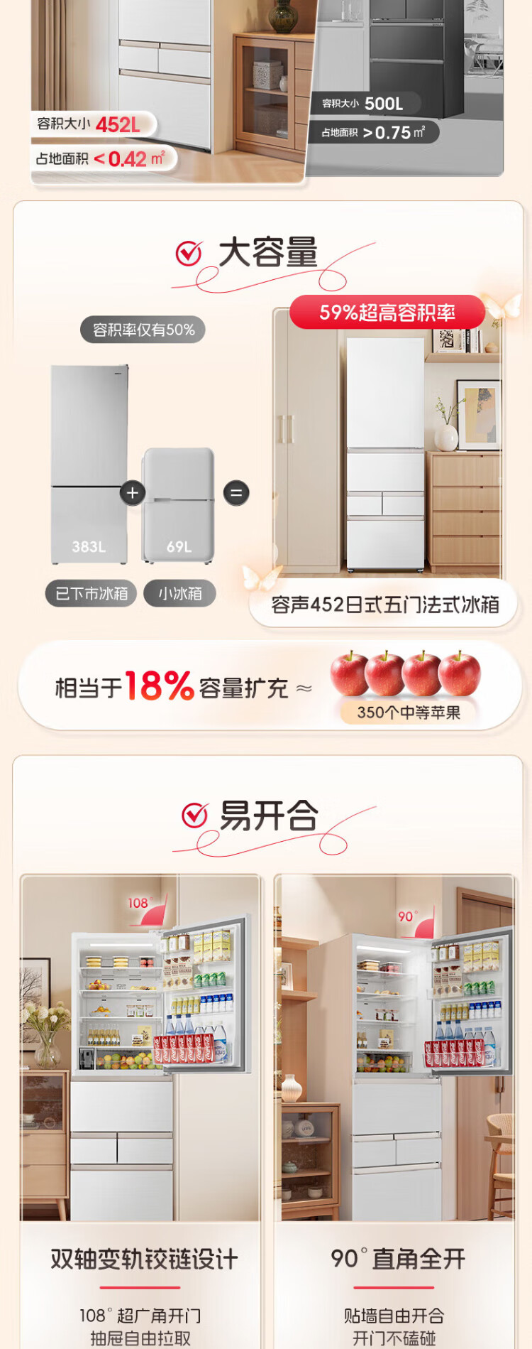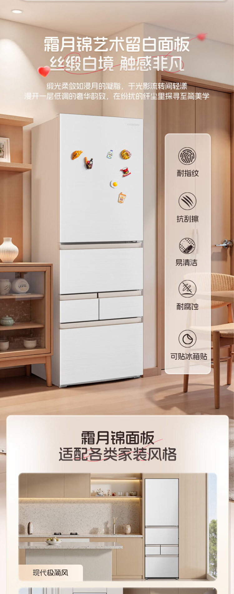 Rongsheng 452L small glutinous rice white five-door refrigerator IDP2.0 active sterilization embedded first-level energy efficiency household active sterilization and deodorization frequency conversion independent ice-making French refrigerator BCD-452N50MQNAD-DC34 Frost Moon White