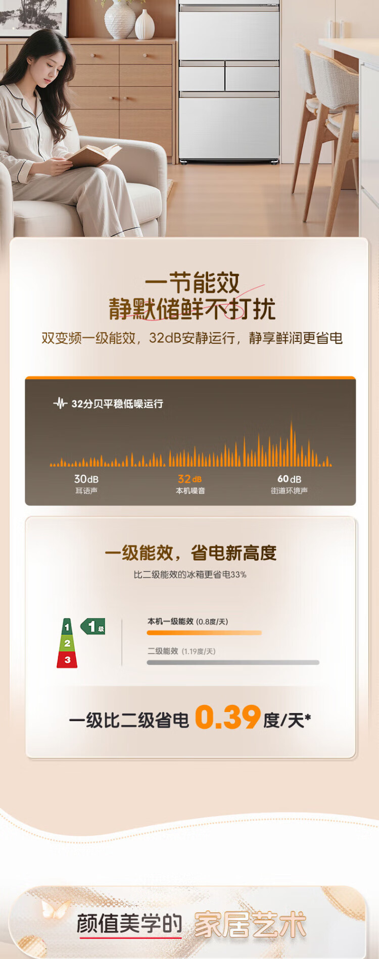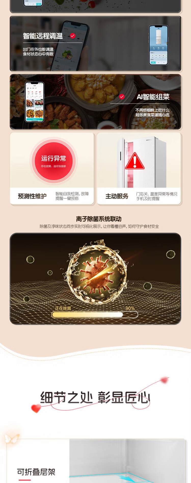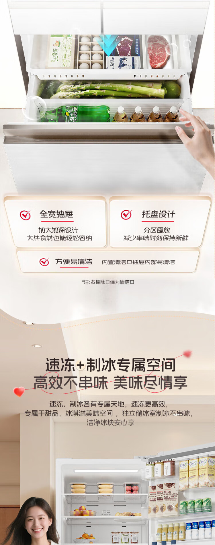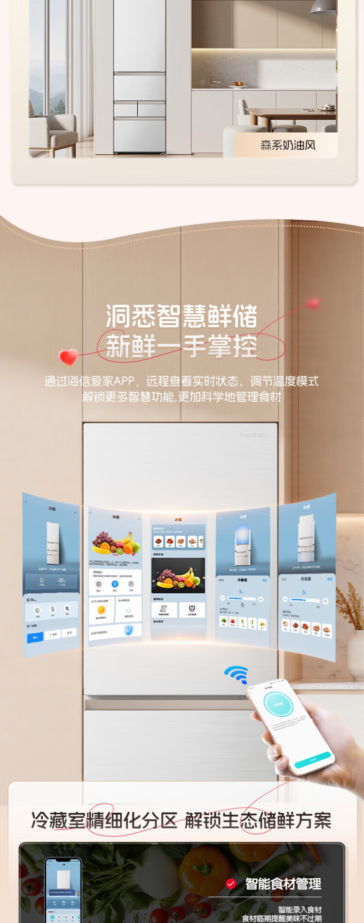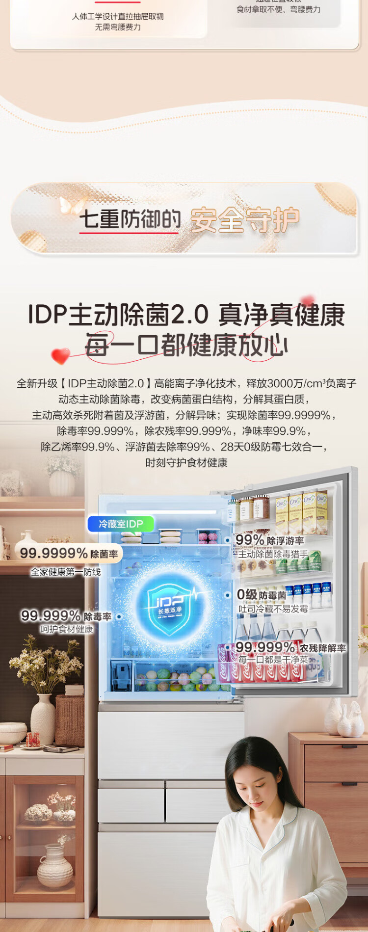 Rongsheng 452L small glutinous rice white five-door refrigerator IDP2.0 active sterilization embedded first-level energy efficiency household active sterilization and deodorization frequency conversion independent ice-making French refrigerator BCD-452N50MQNAD-DC34 Frost Moon White