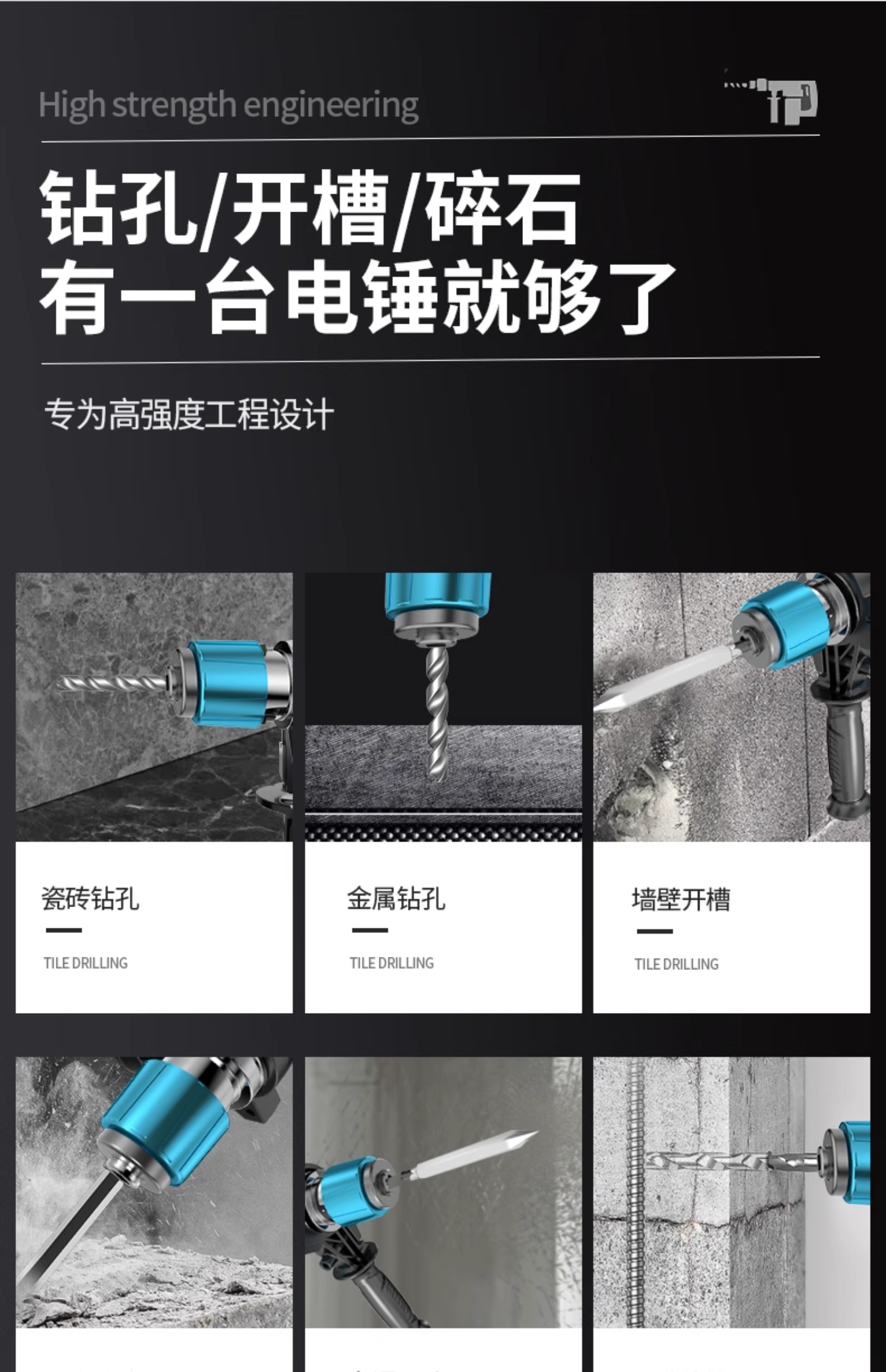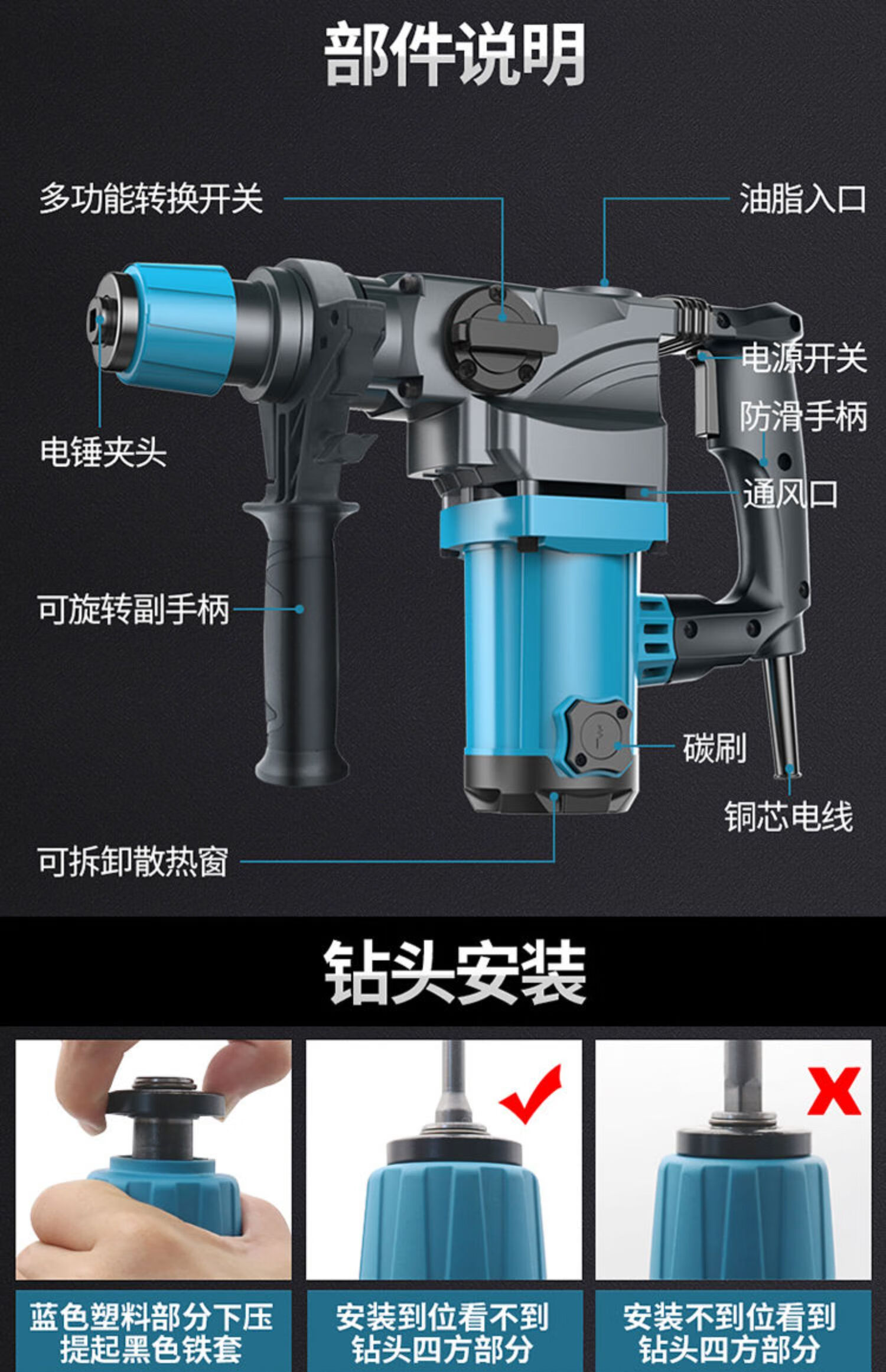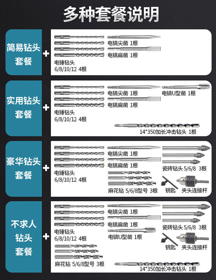 Electric hammer impact drill electric drill wall drilling electric pick multifunctional high-power industrial concrete power tool household practical package ten-piece set