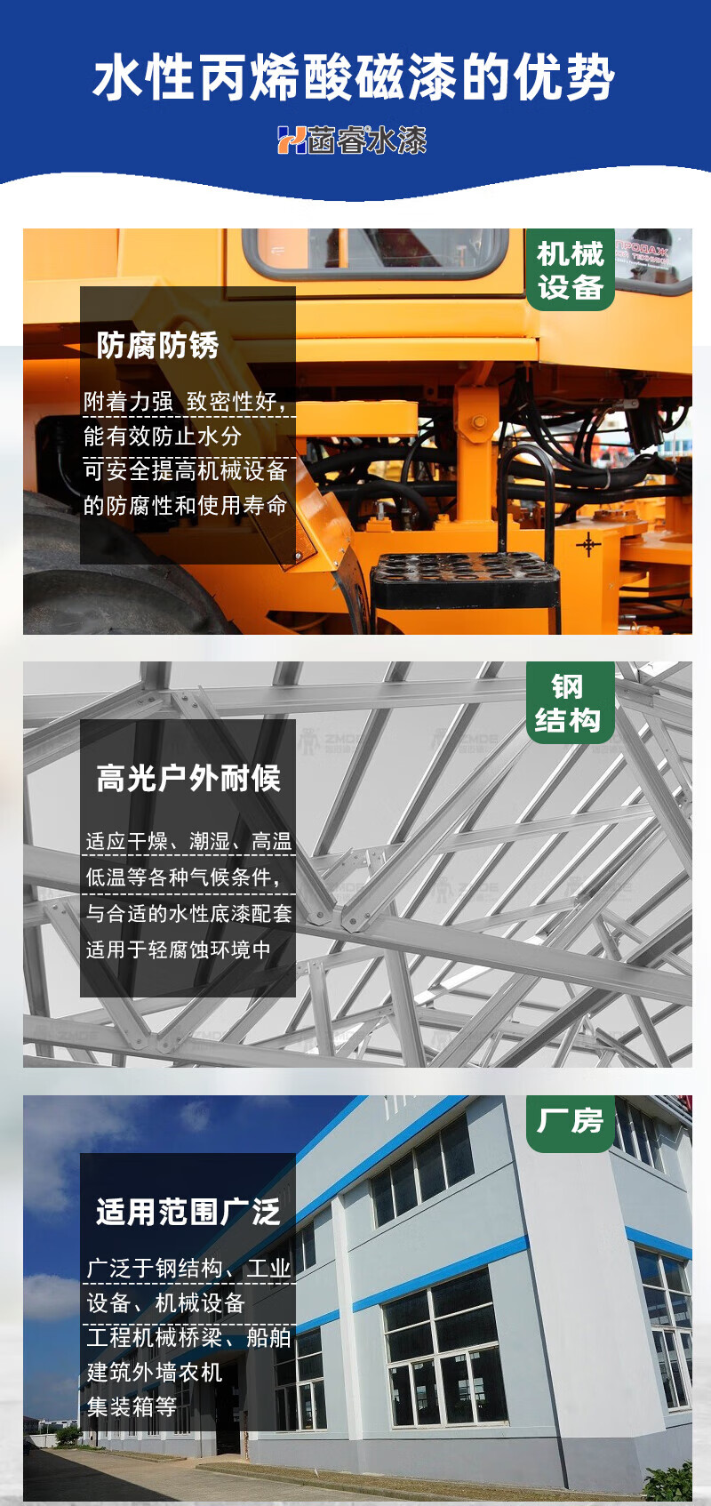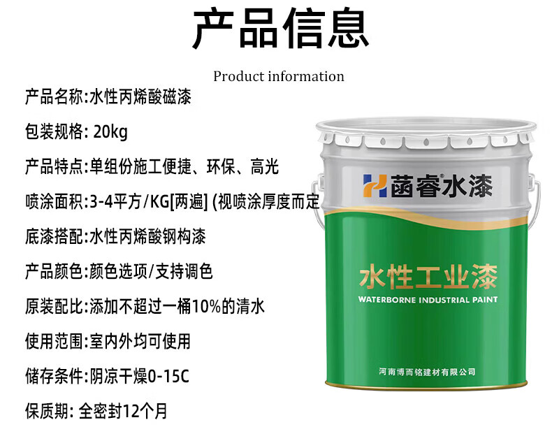 Seven-dimensional water-based acrylic enamel Hanrui water paint high-gloss red topcoat color steel tile machinery environmentally friendly industrial anti-corrosion coating water-based acrylic enamel medium gray 20kg