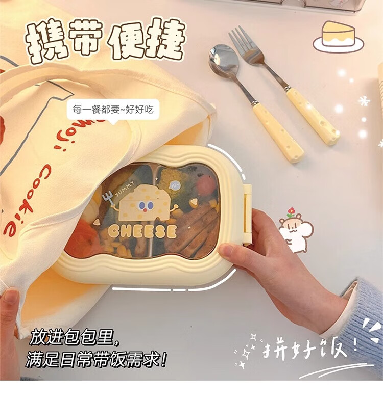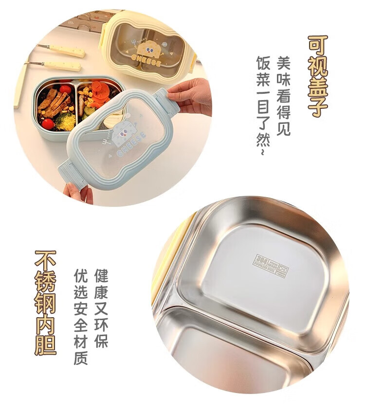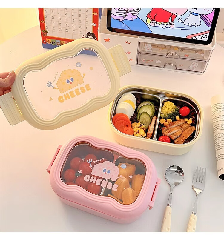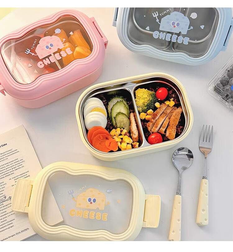 Other cheese compartment lunch box 304 stainless steel cute high-looking student office worker insulated lunch box fruit lunch box yellow cheese lunch box